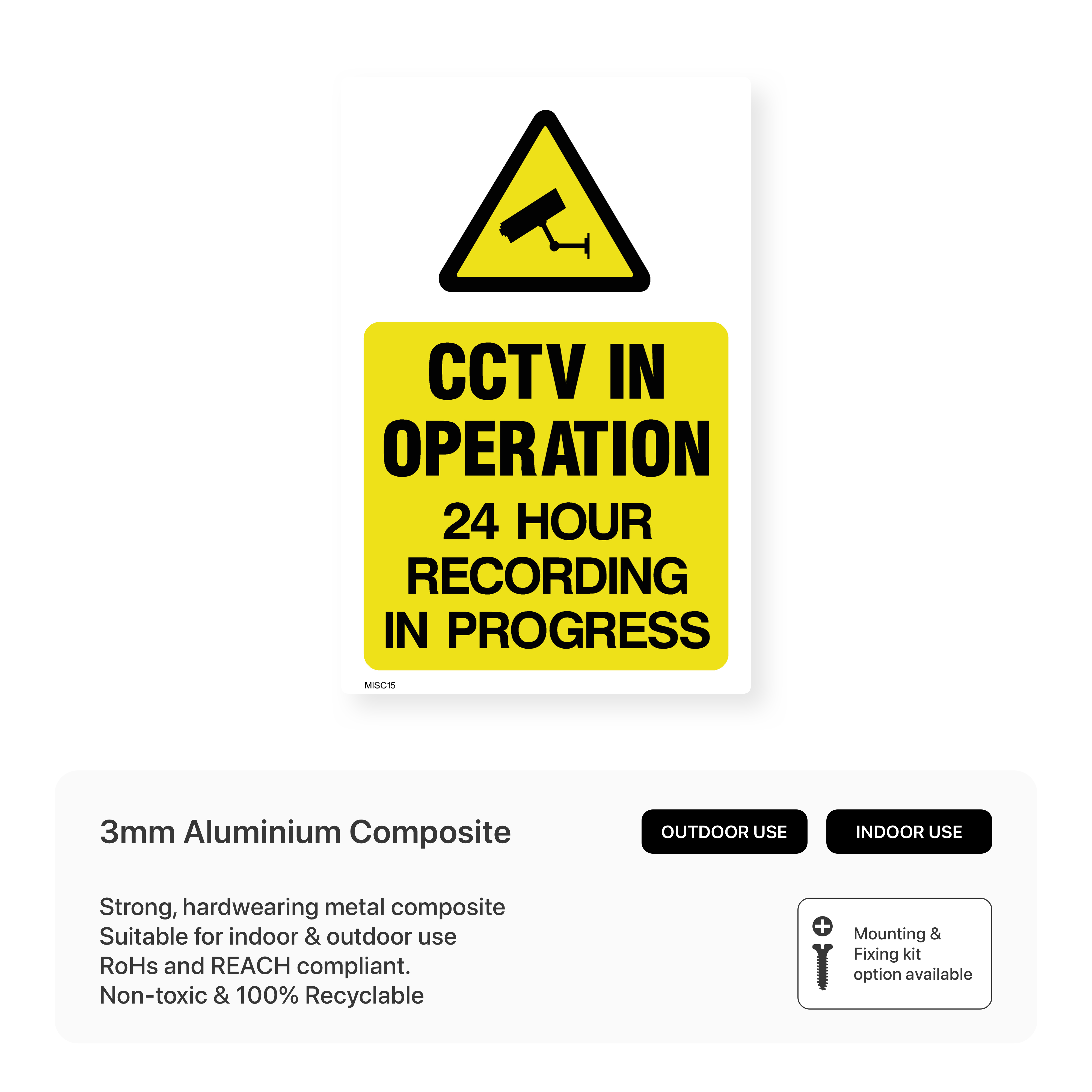 Deter crime and protect your property with our "CCTV in Operation 24-Hour Recording" signs. Clearly communicate that the area is under constant surveillance.