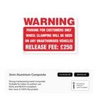 Reserve parking exclusively for your customers with our "Parking For Customers Only" signs. Deter unauthorized parking with a clear message and a £250 release fee for wheel clamping. Available in various sizes and materials to suit your needs.