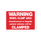 WARNING - WHEEL CLAMP AREA - Unauthorised or illegally parked vehicles will be CLAMPED