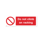 Prevent accidents and protect your storage systems with our "Do Not Climb on Racking" sign. This sign clearly communicates the dangers of climbing on racking and helps prevent injuries and damage to goods. Choose from various sizes and materials to suit your specific needs.
