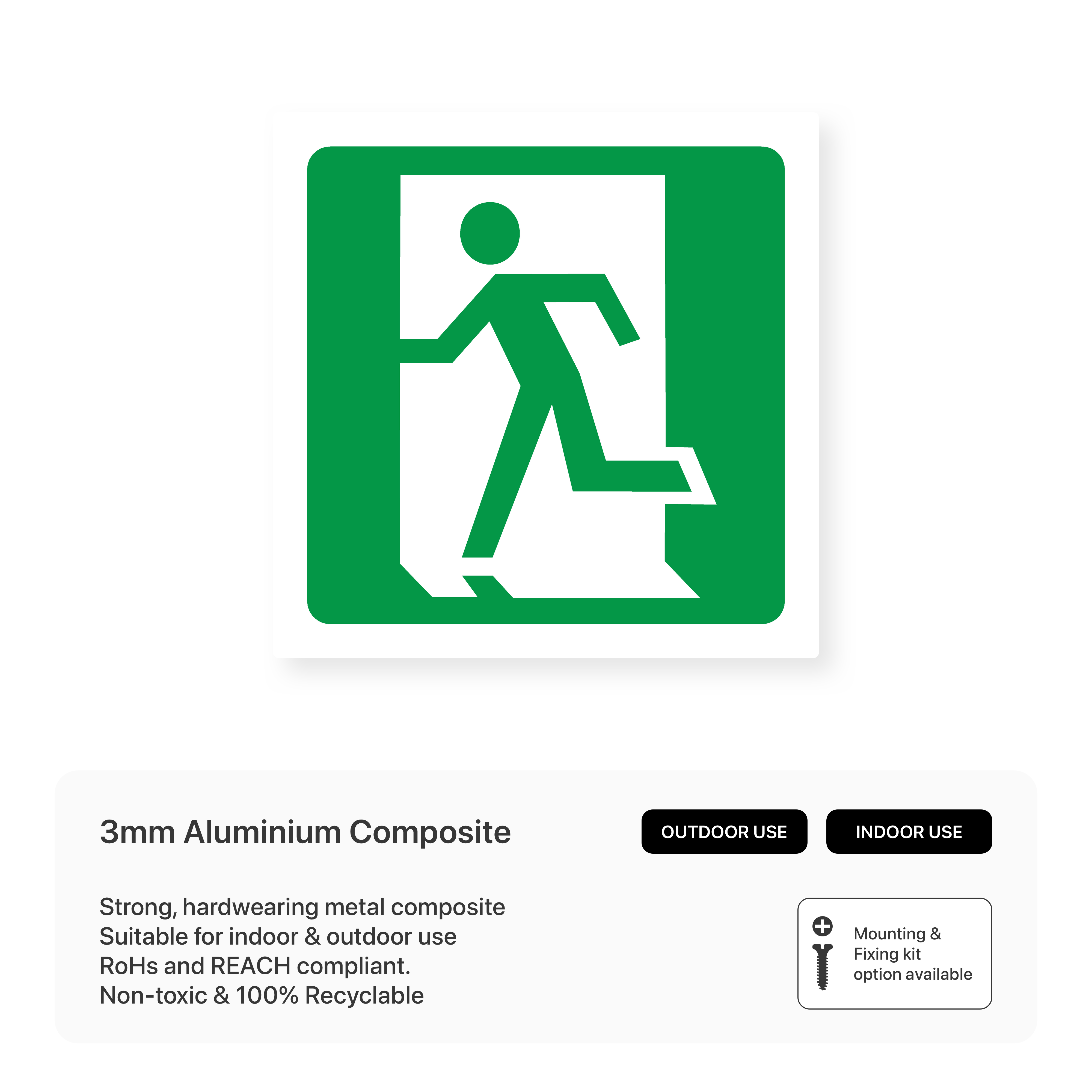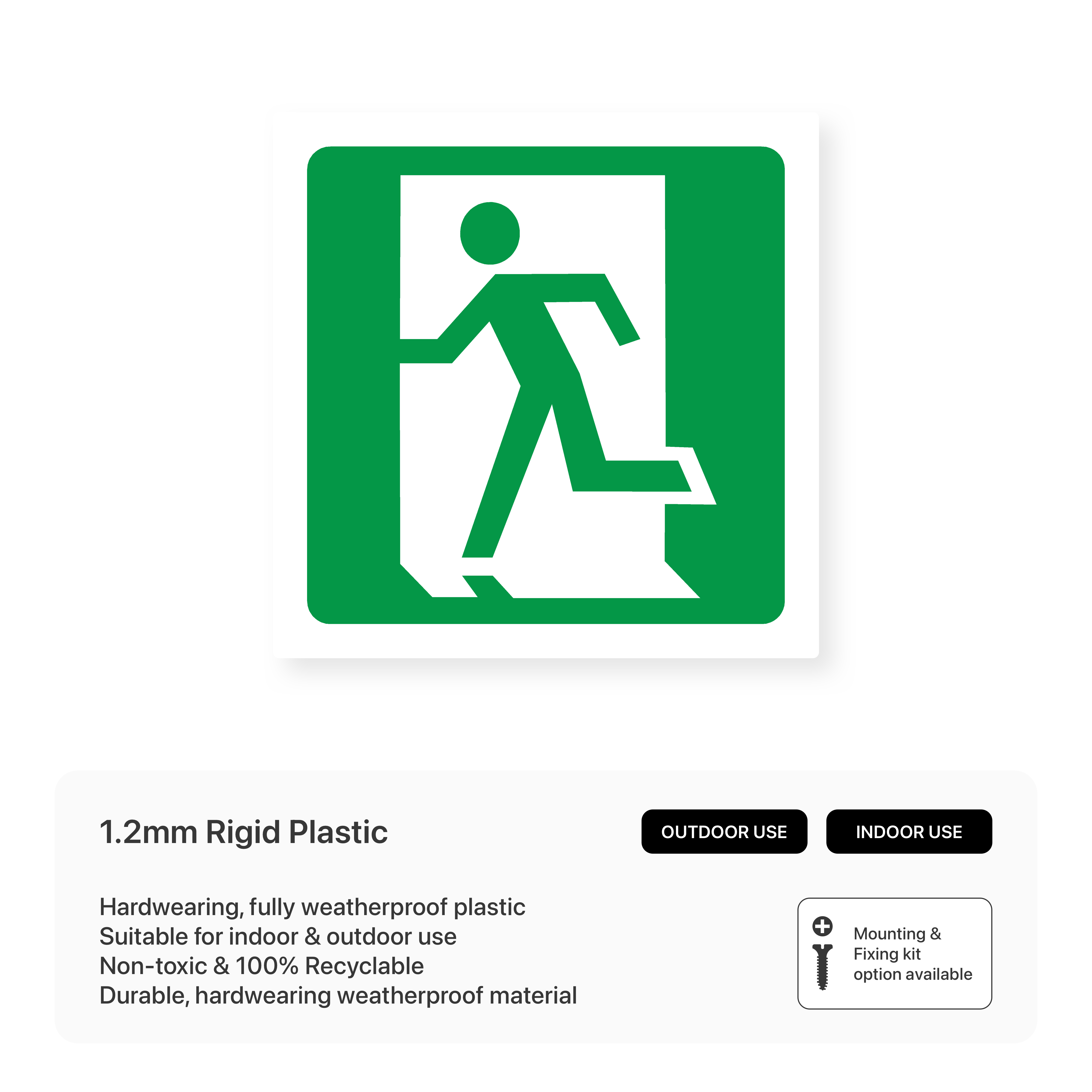 Clearly mark fire exits with our left-facing "Fire Exit Symbol" signs. Guide people to safety in case of emergency. Available in various sizes and materials.