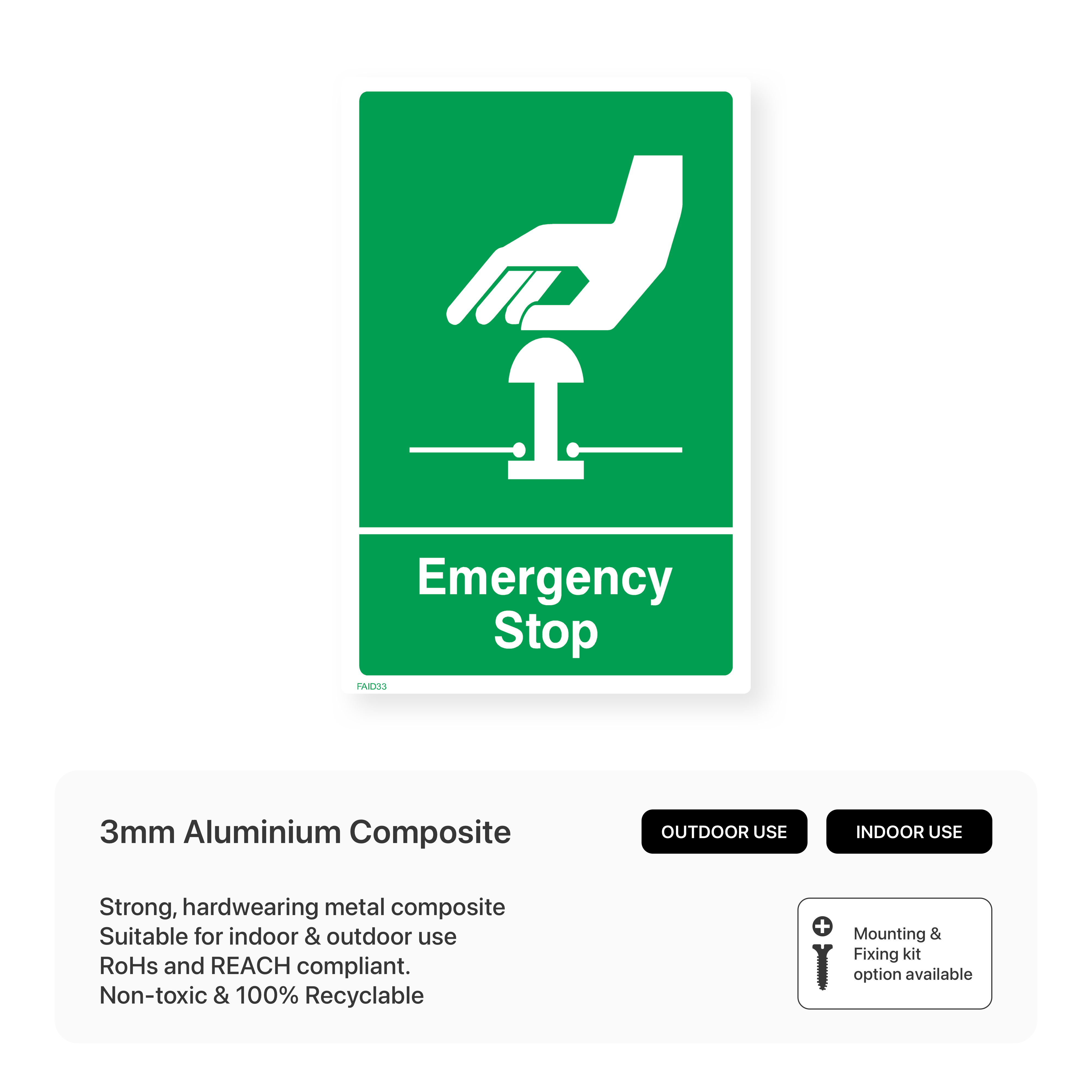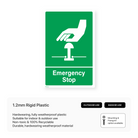 Clearly mark the location of emergency stop buttons or levers with our "Emergency Stop - Green" sign. This sign allows for quick response and the prevention of accidents in case of emergencies.
