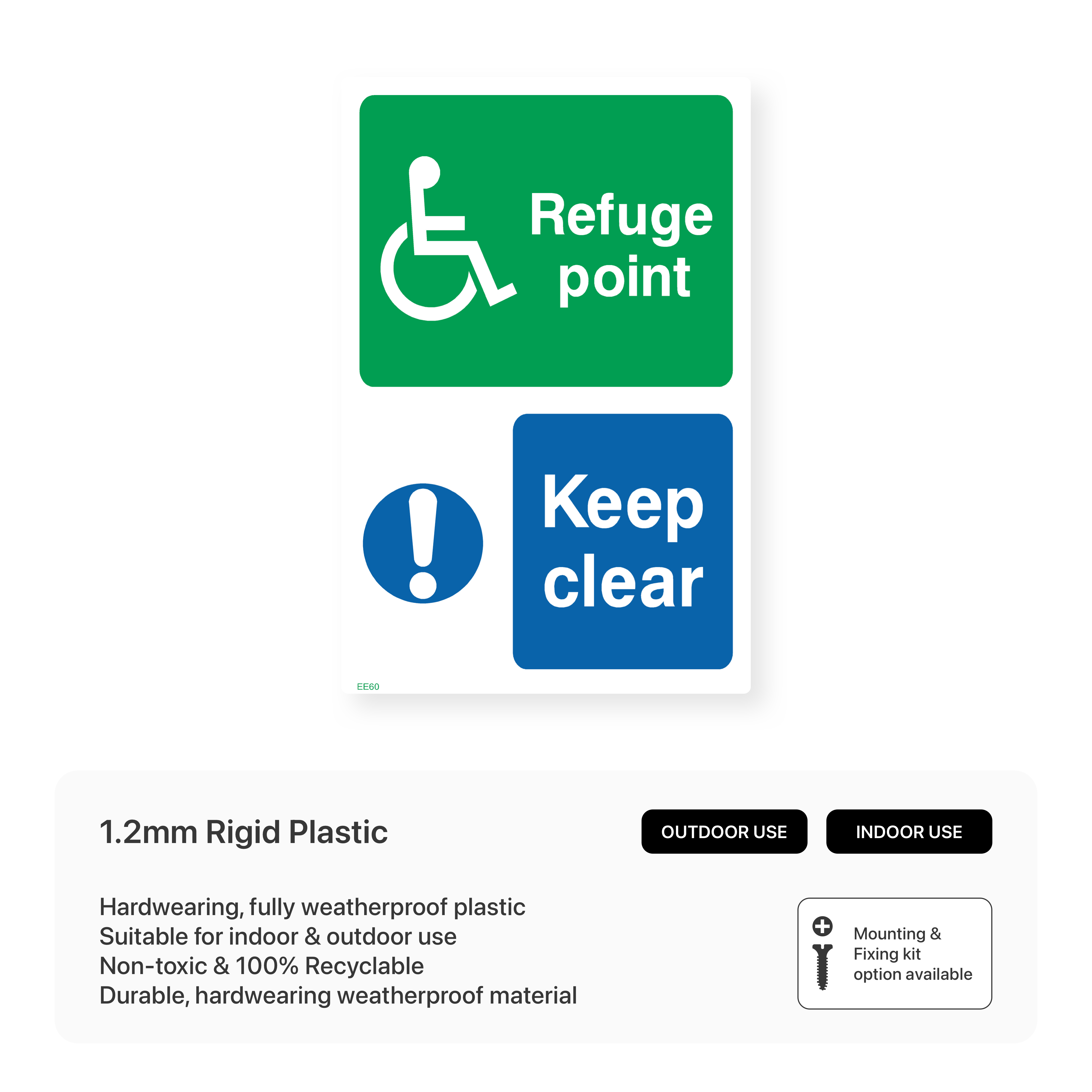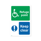 Ensure clear access to refuge points with our "Refuge Point - Keep Clear" sign. This sign reminds individuals to keep refuge areas unobstructed, ensuring that they remain accessible and safe for those seeking shelter during emergencies.