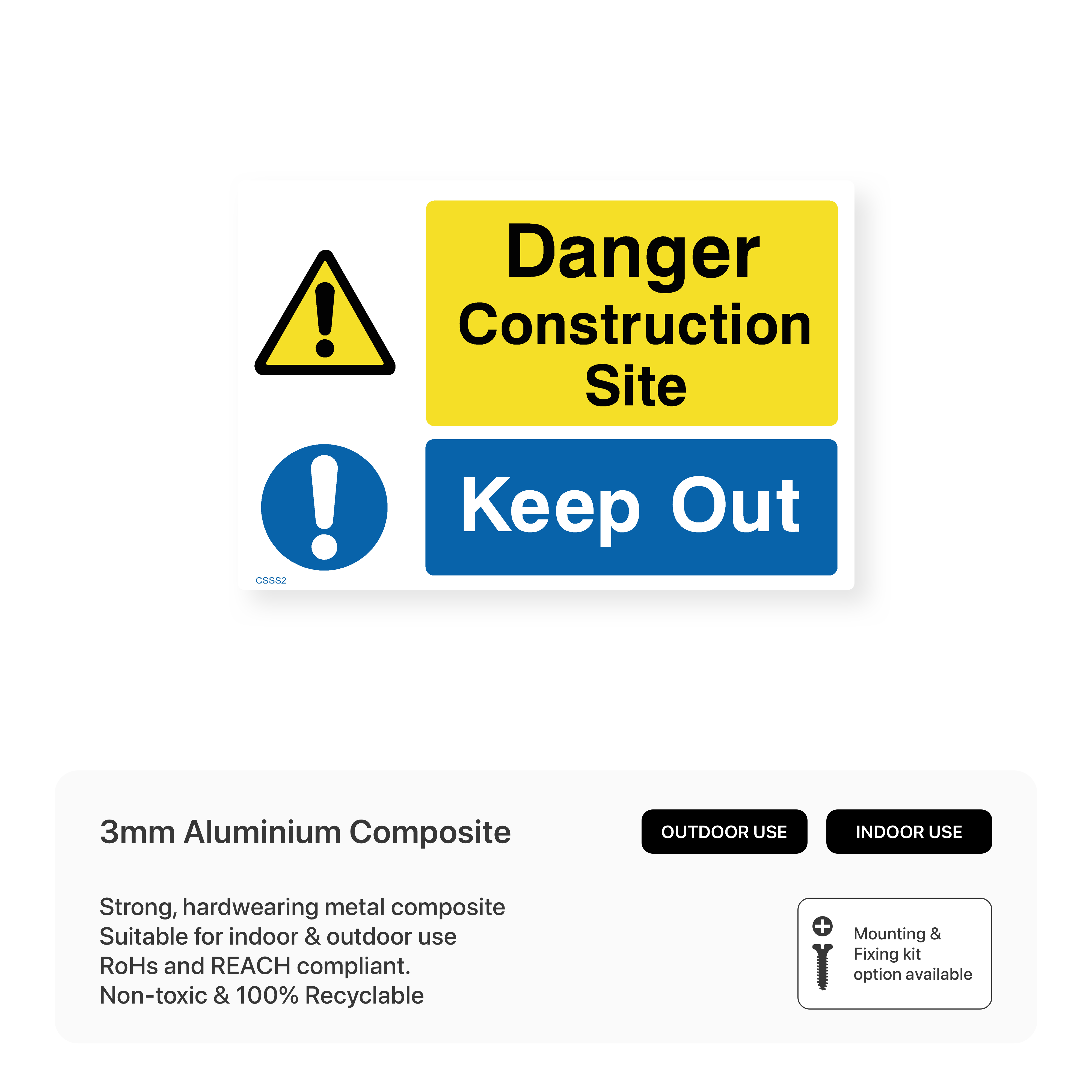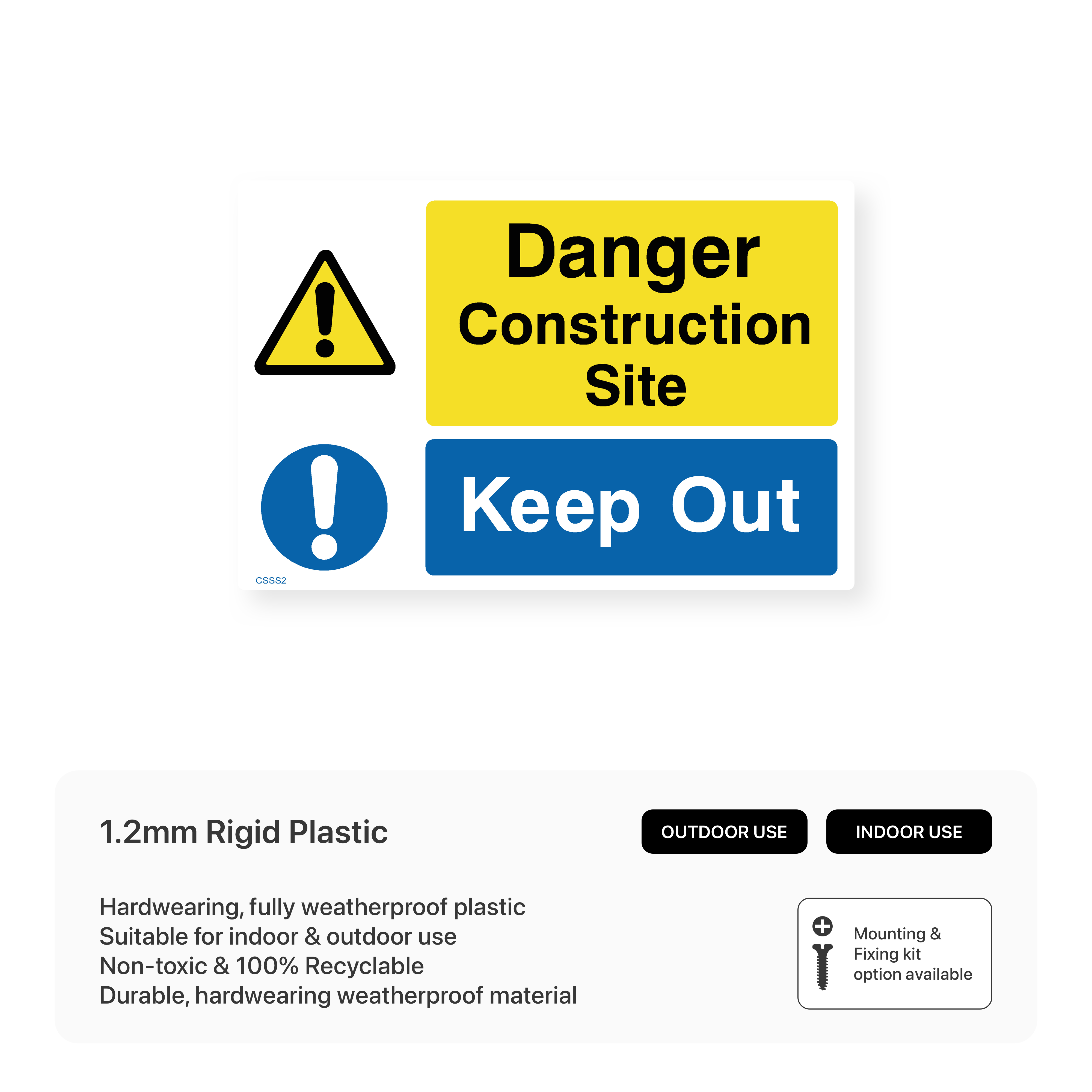 Enhance safety and security on your construction site with our "Danger - Construction site - Keep out" sign. This bold and highly visible sign effectively deters unauthorised entry, preventing accidents and protecting your property.