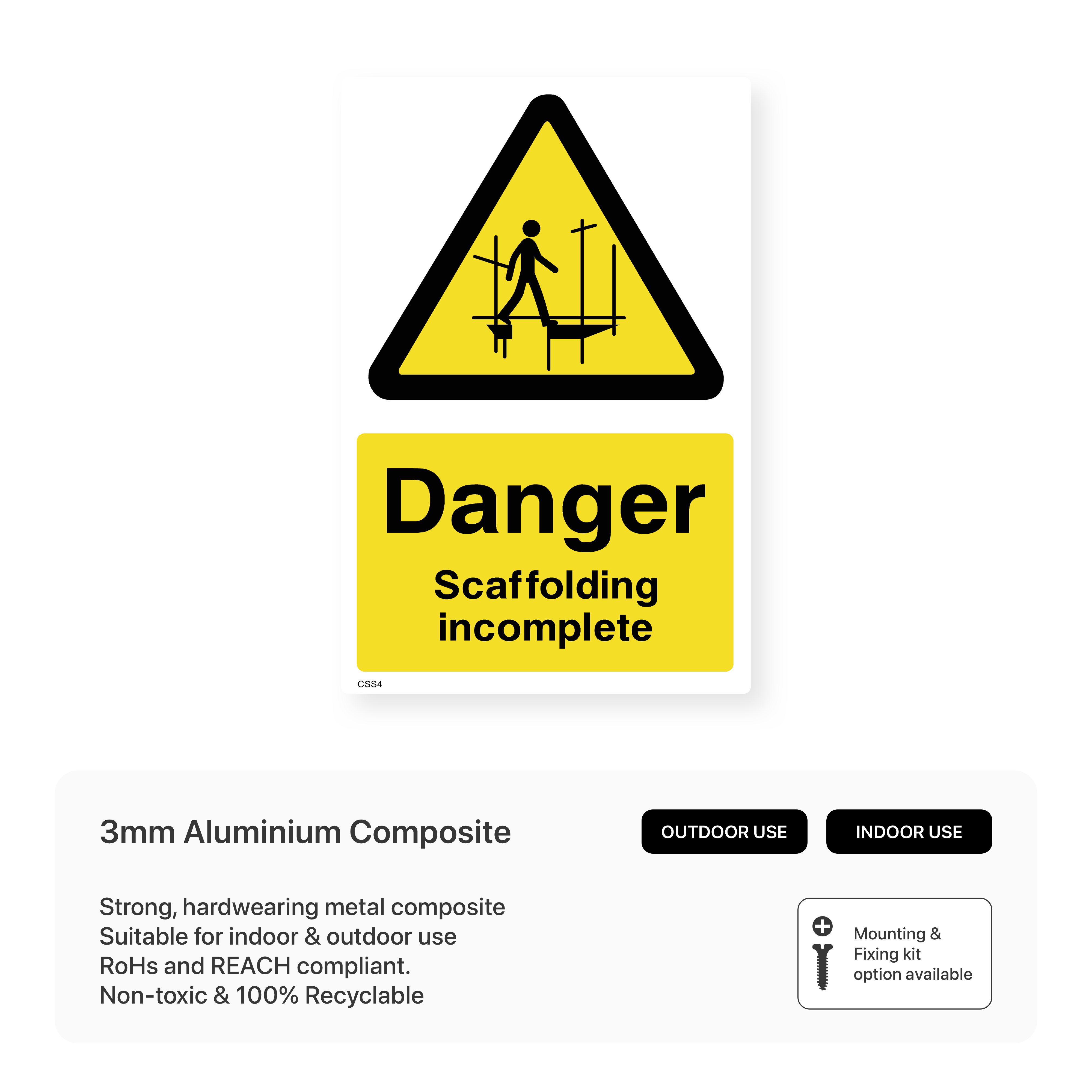 Prevent accidents and injuries with our "Danger Scaffolding Incomplete" sign. Clearly mark unfinished or unsafe scaffolding structures to ensure workers avoid using them until they are fully assembled and inspected.