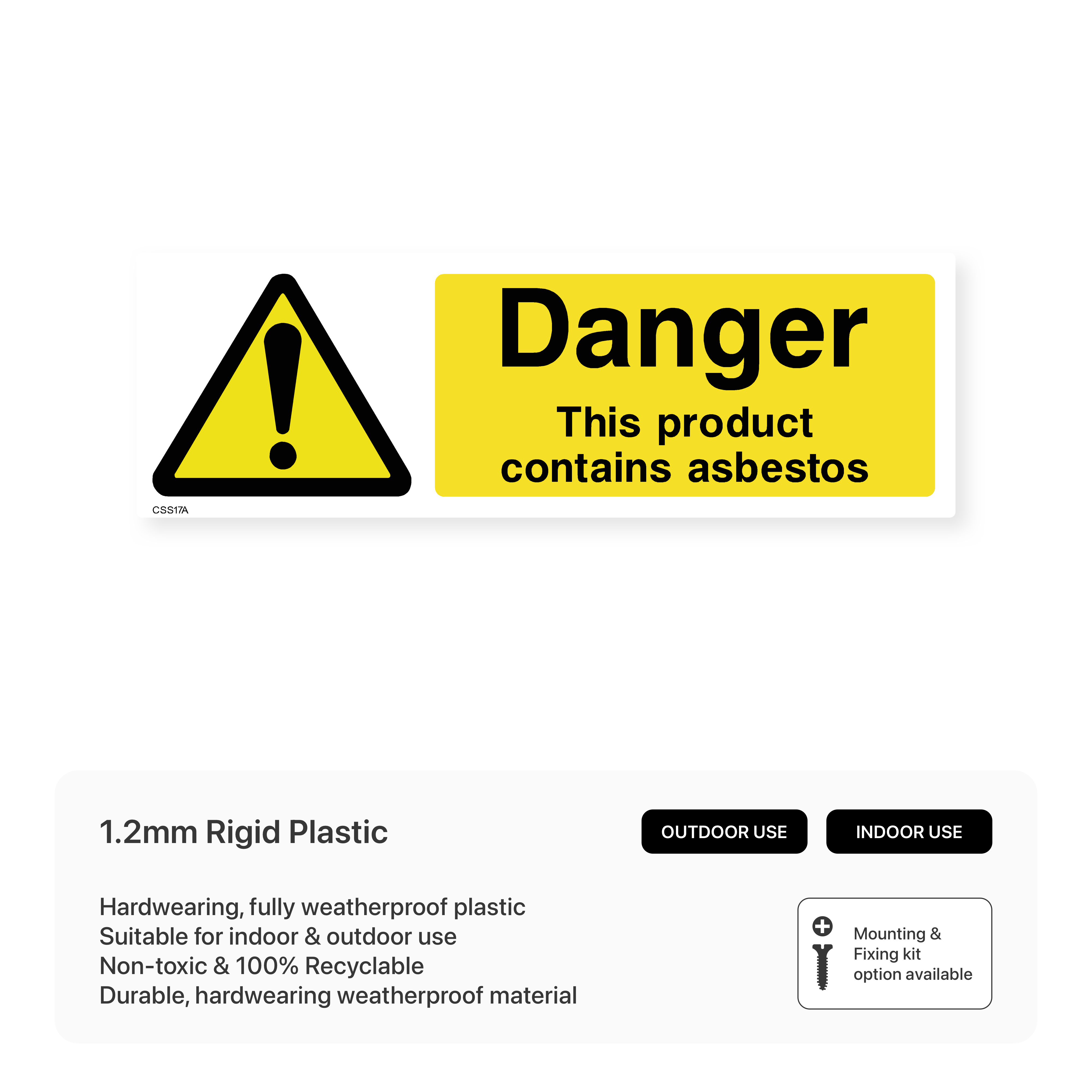 Clearly label products containing asbestos with our "Danger- This product contains asbestos" sign. Ensure proper handling and disposal of these materials to protect workers and the environment from potential health risks.