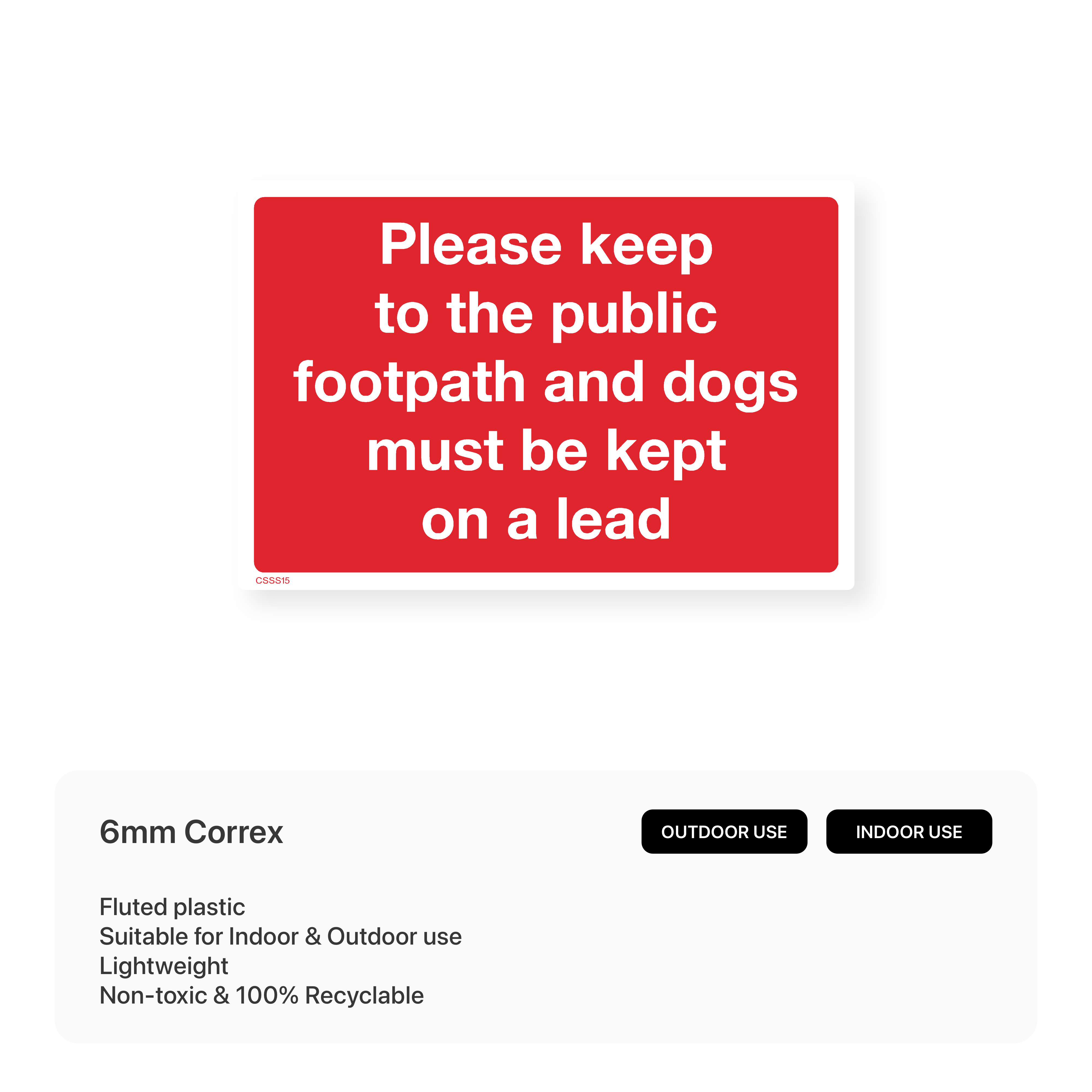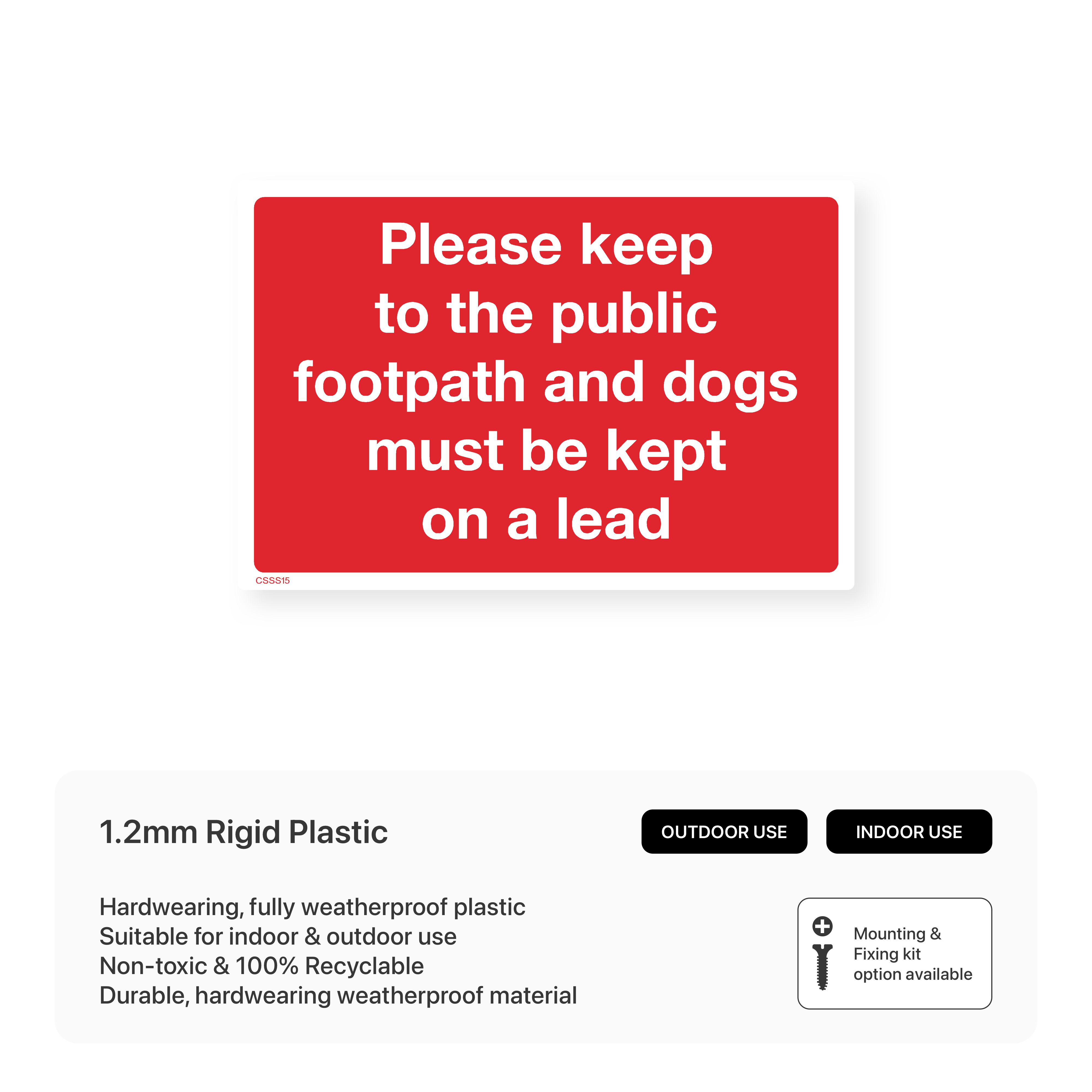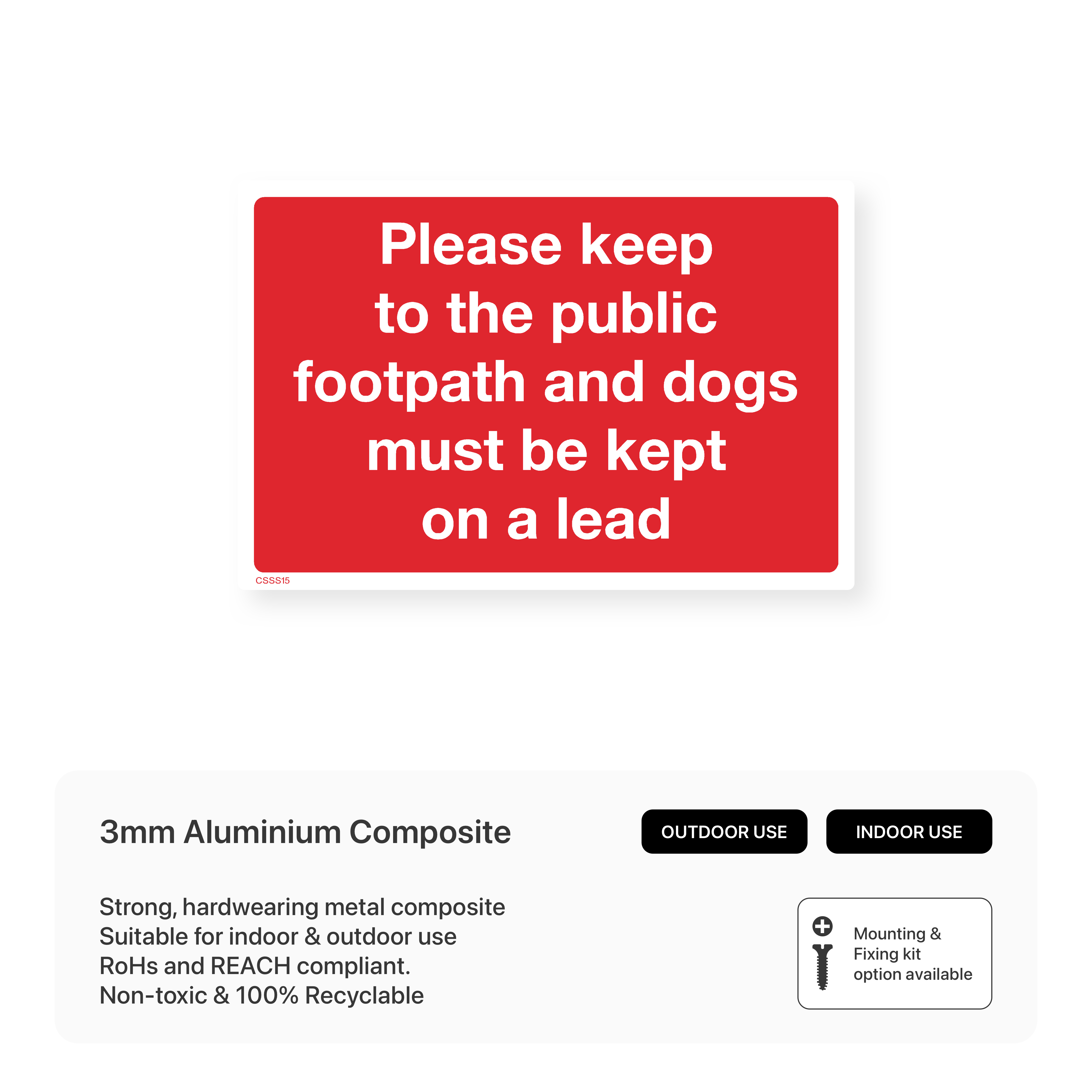 Protect sensitive areas and ensure the safety of all users with our "Please keep to the public footpath and dogs must be kept on a lead" sign. This sign promotes responsible use of trails and walkways, preserving the natural environment and preventing conflicts between pedestrians and dogs.
