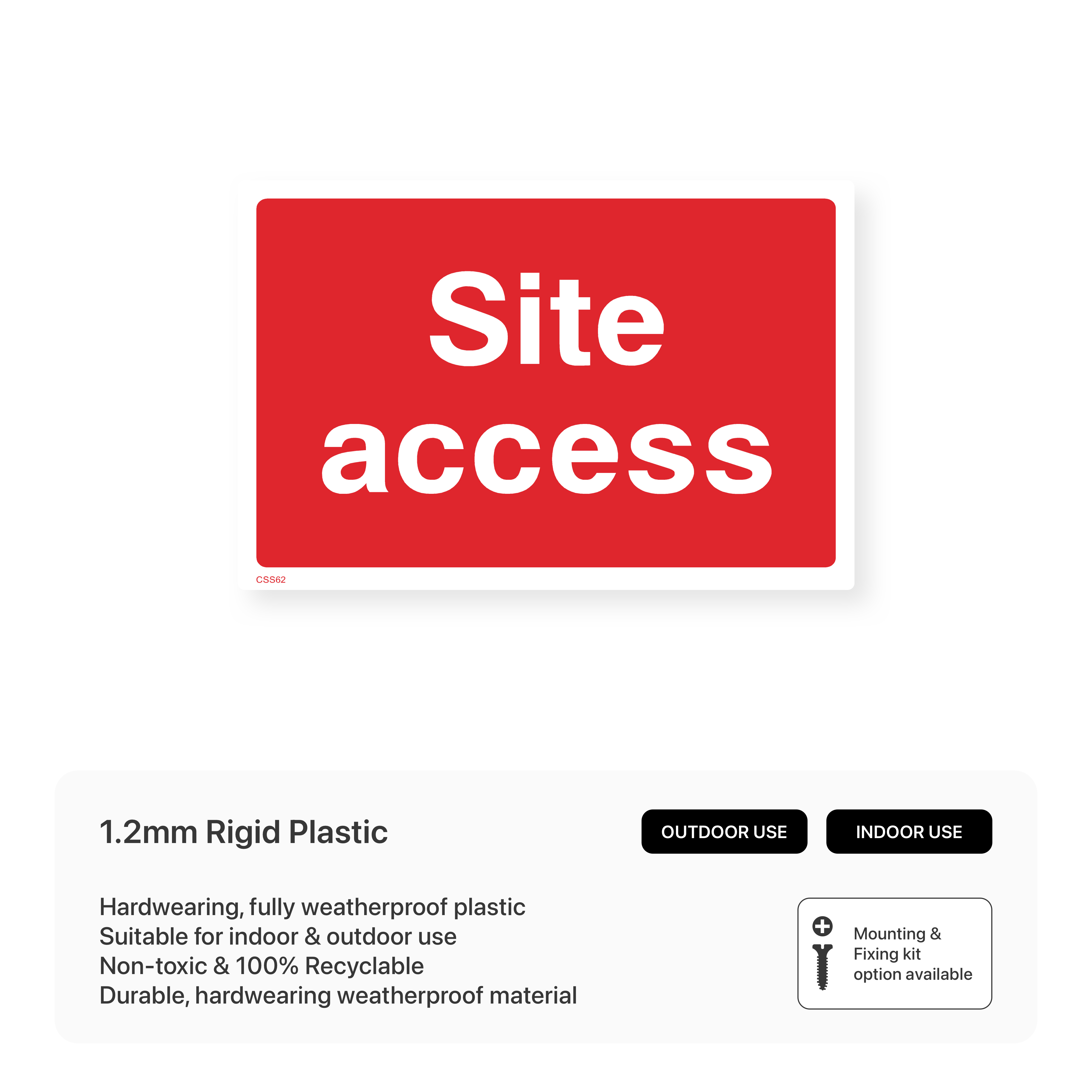 Clearly mark access points to your construction site with our "Site Access" sign. This sign helps direct authorised personnel, deliveries, and vehicles to the correct entry points, ensuring smooth operations and security.