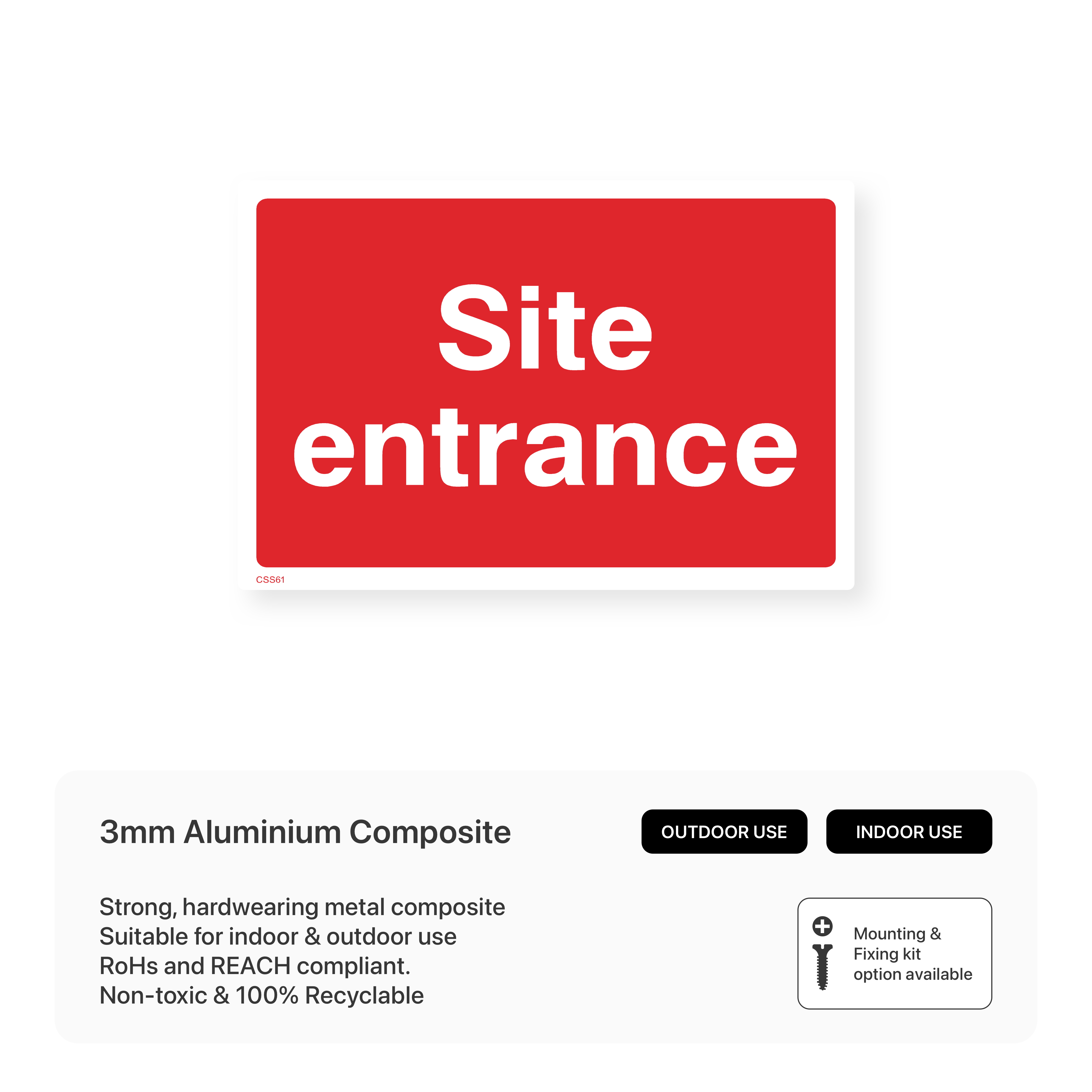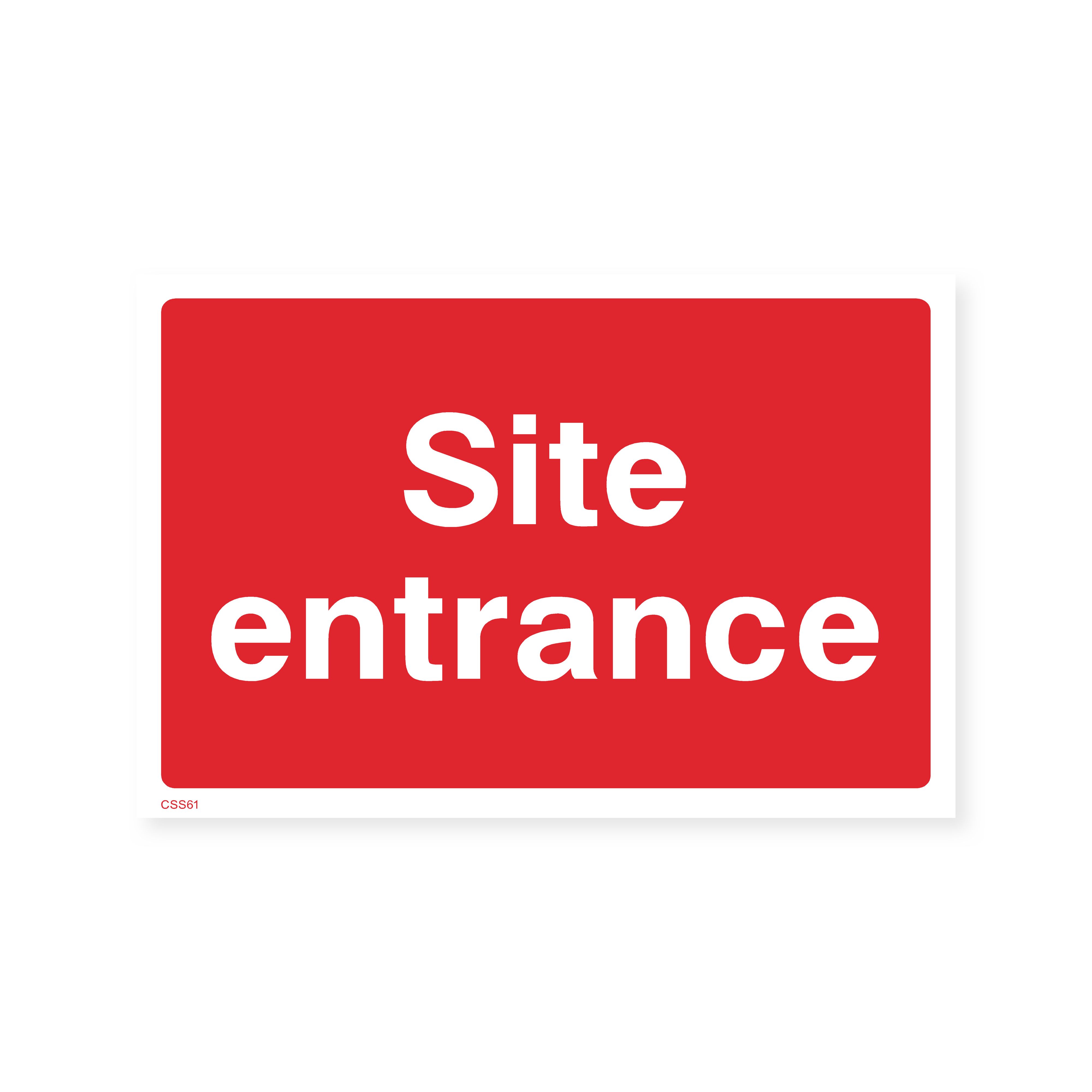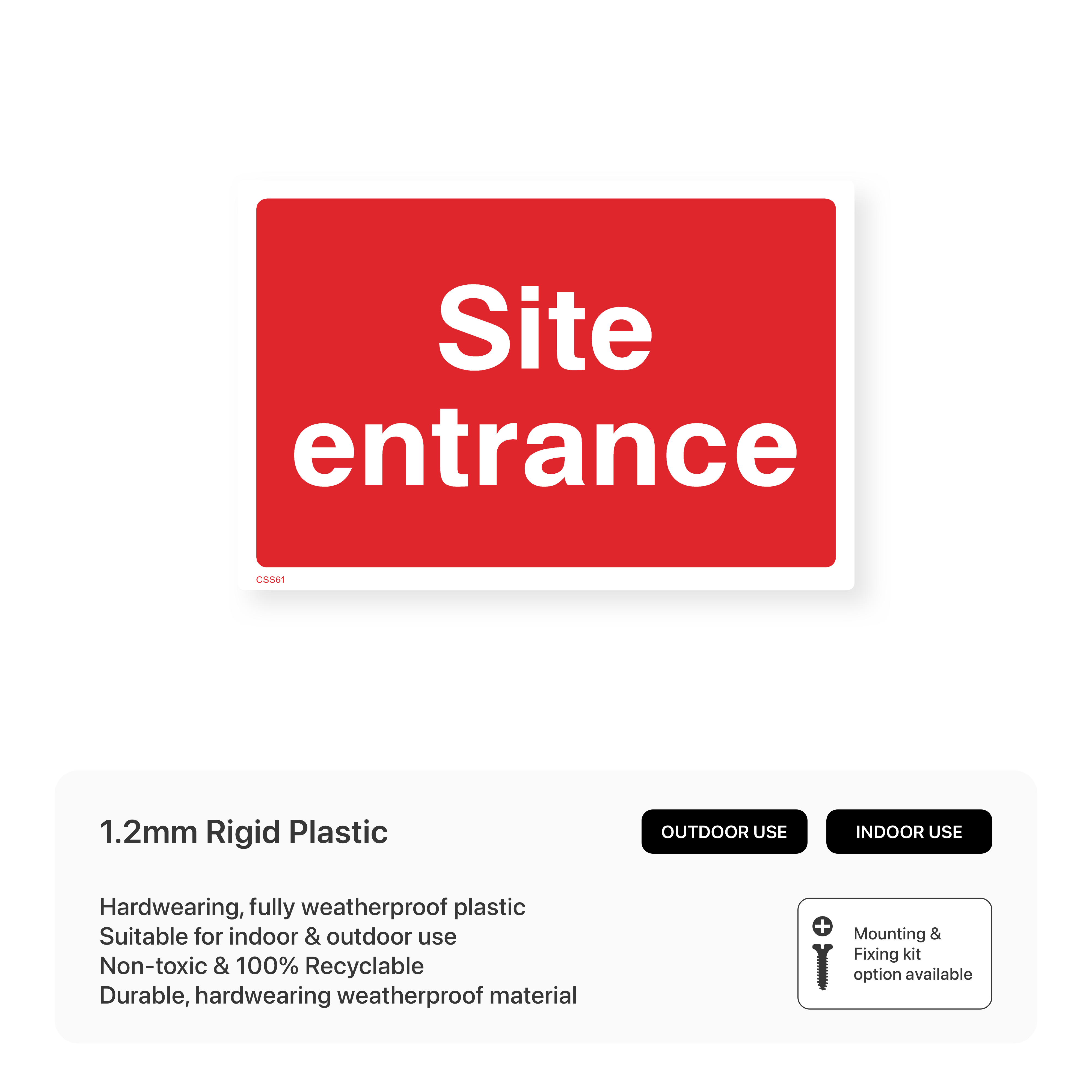 Clearly mark the entrance to your construction site with our "Site Entrance" sign. This sign helps visitors, delivery drivers, and workers easily locate the main access point, promoting efficiency and safety.