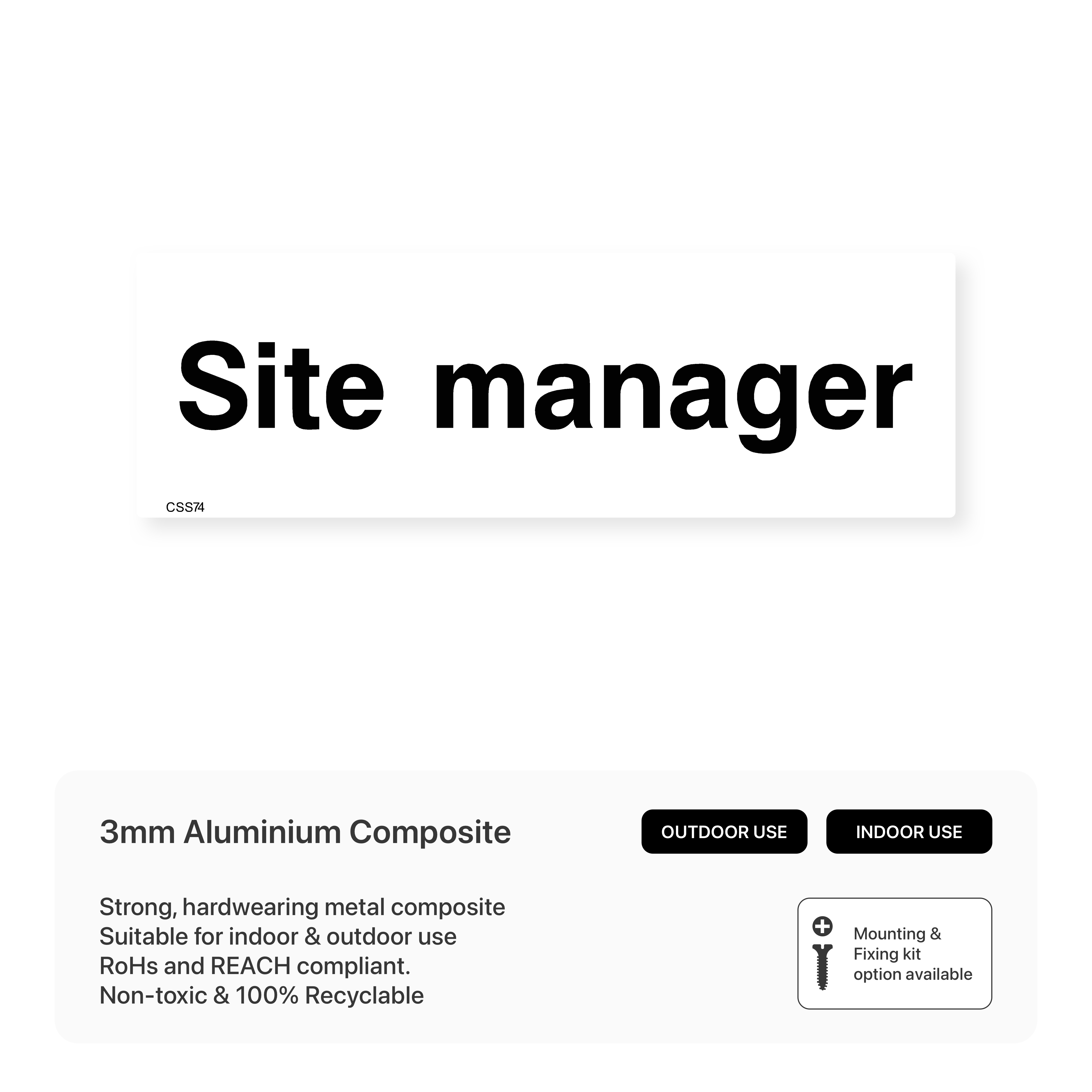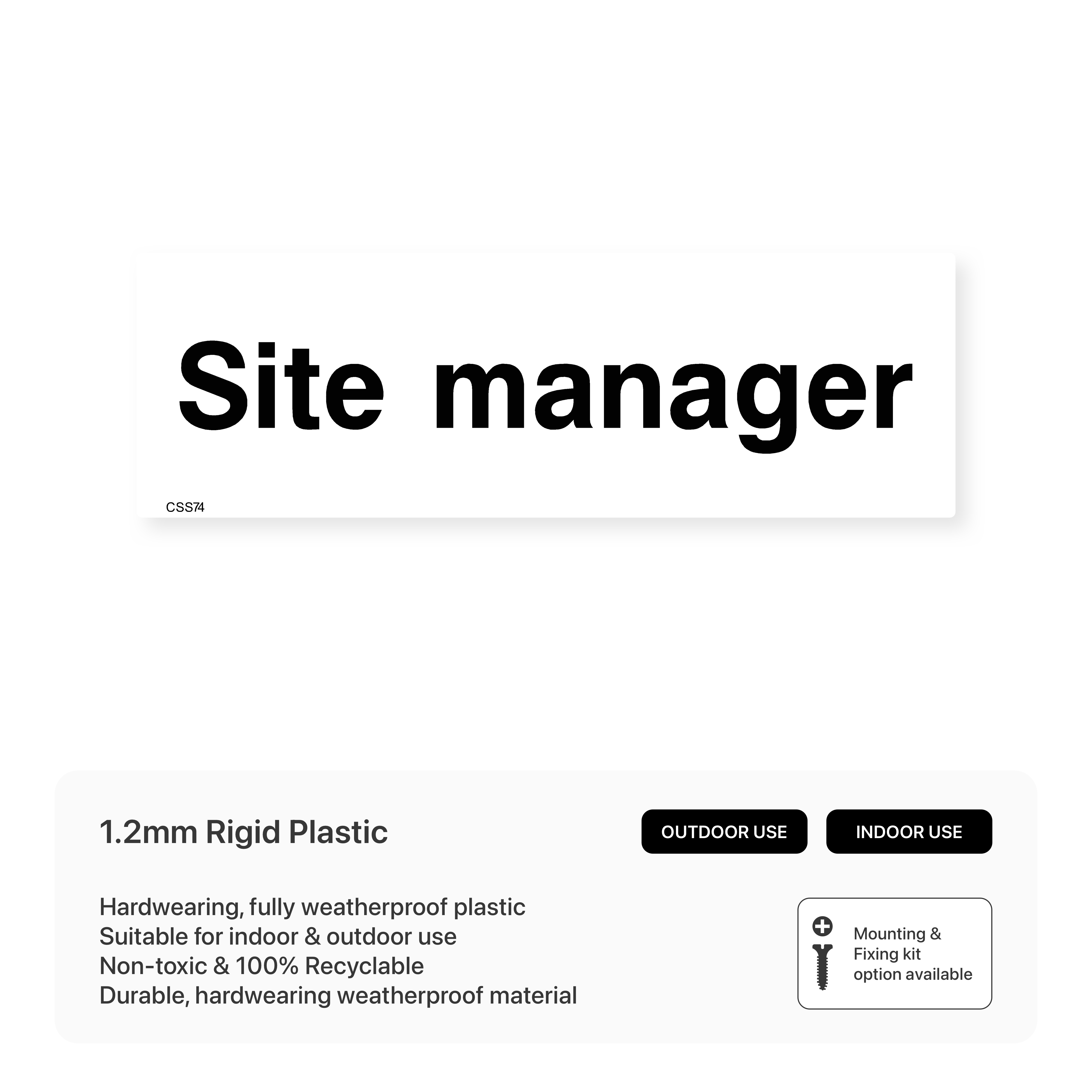 Clearly identify the site manager's location with our "Site Manager" sign. This sign helps workers, contractors, and visitors easily locate the designated site manager for inquiries, approvals, and site-related issues.