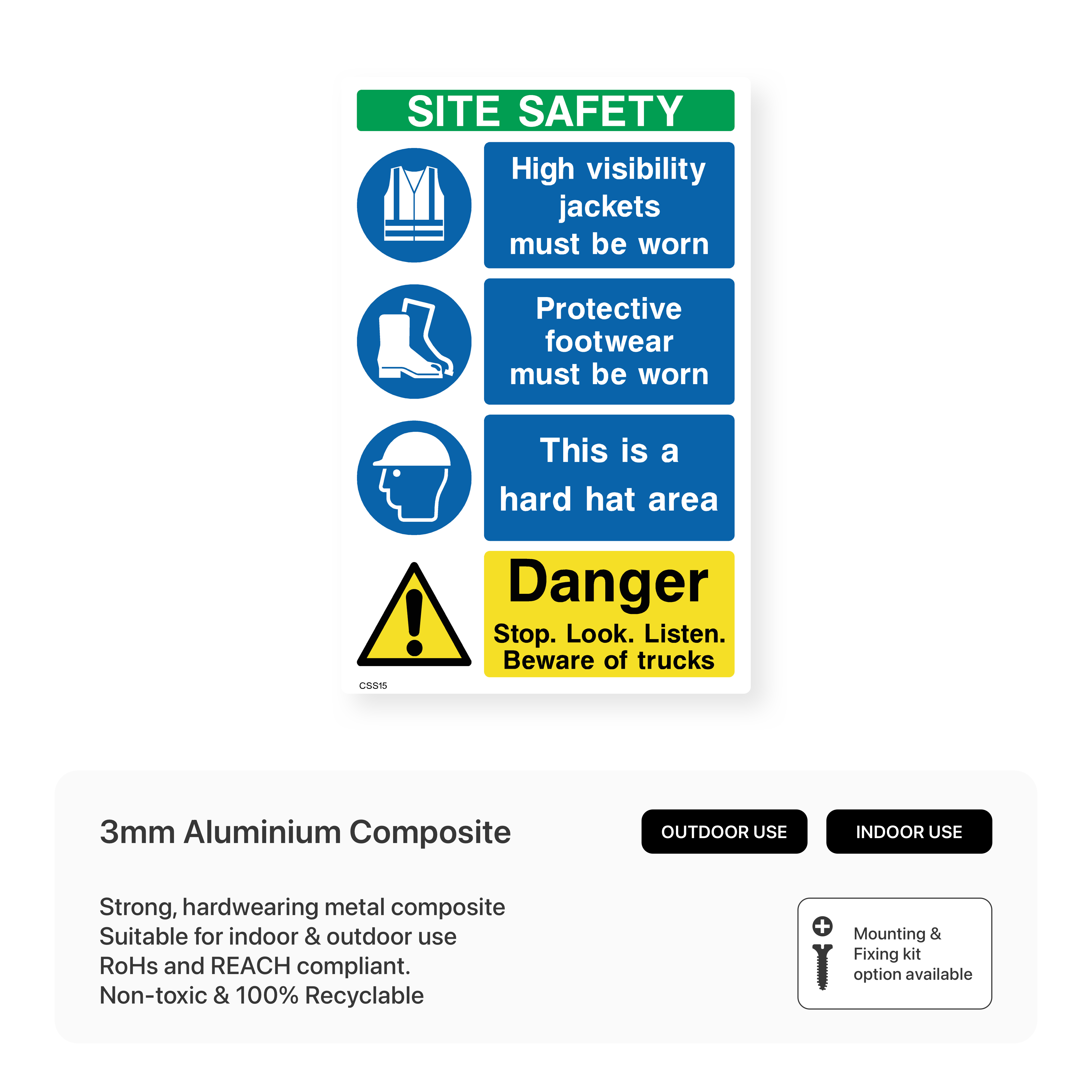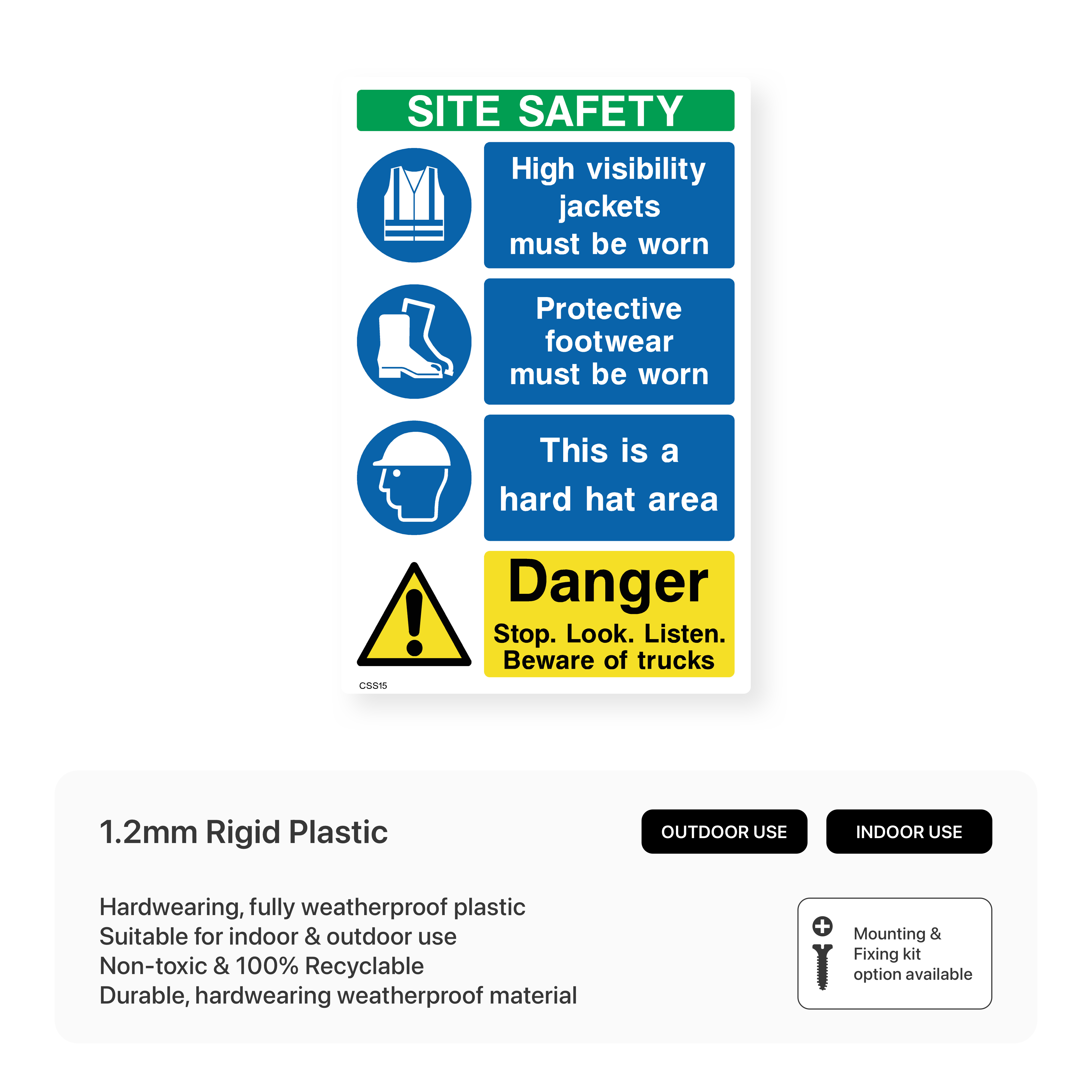 Promote worker visibility and safety with our "Site safety - High Visibility Jackets" sign. Remind workers to wear high-visibility clothing in designated areas to reduce the risk of accidents and ensure their safety on the construction site.