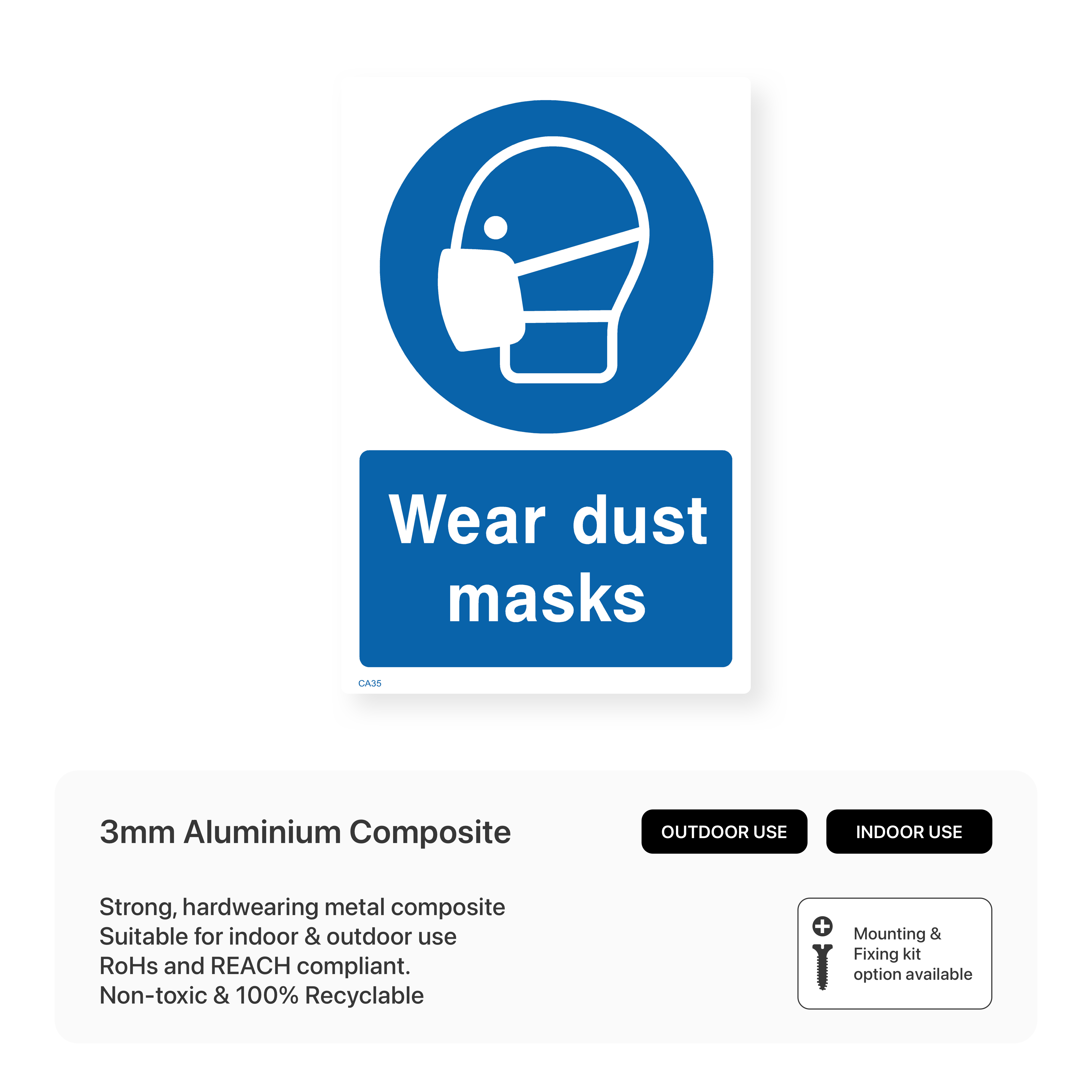 Remind individuals to wear dust masks in areas with high dust levels. Available in various sizes and materials, these signs promote respiratory health and safety in dusty environments.