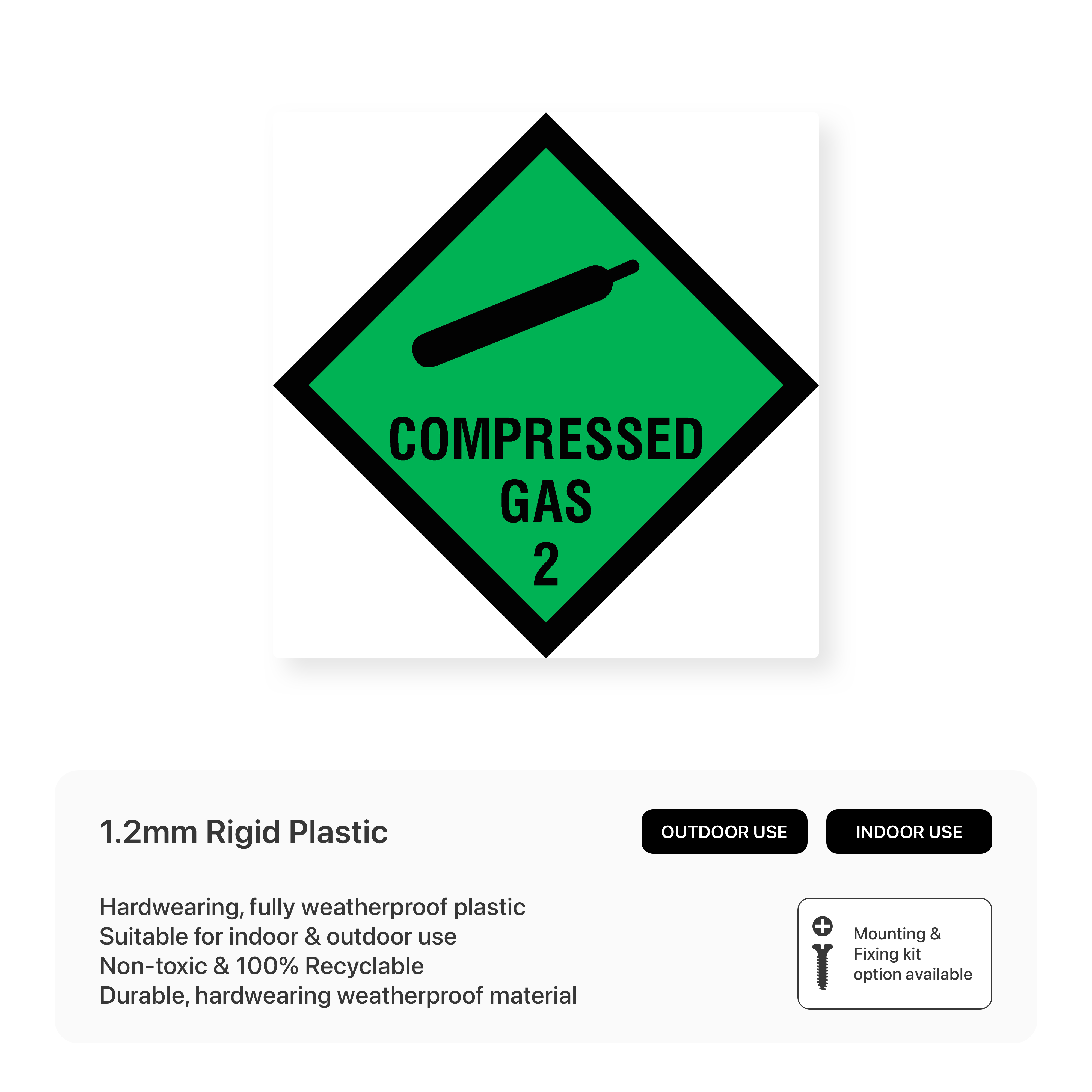 Ensure safe handling and storage of compressed gases with our "Compressed Gas 2 - Hazchem" sign. This sign clearly communicates the specific hazards associated with compressed gases, promoting safety and preventing accidents.