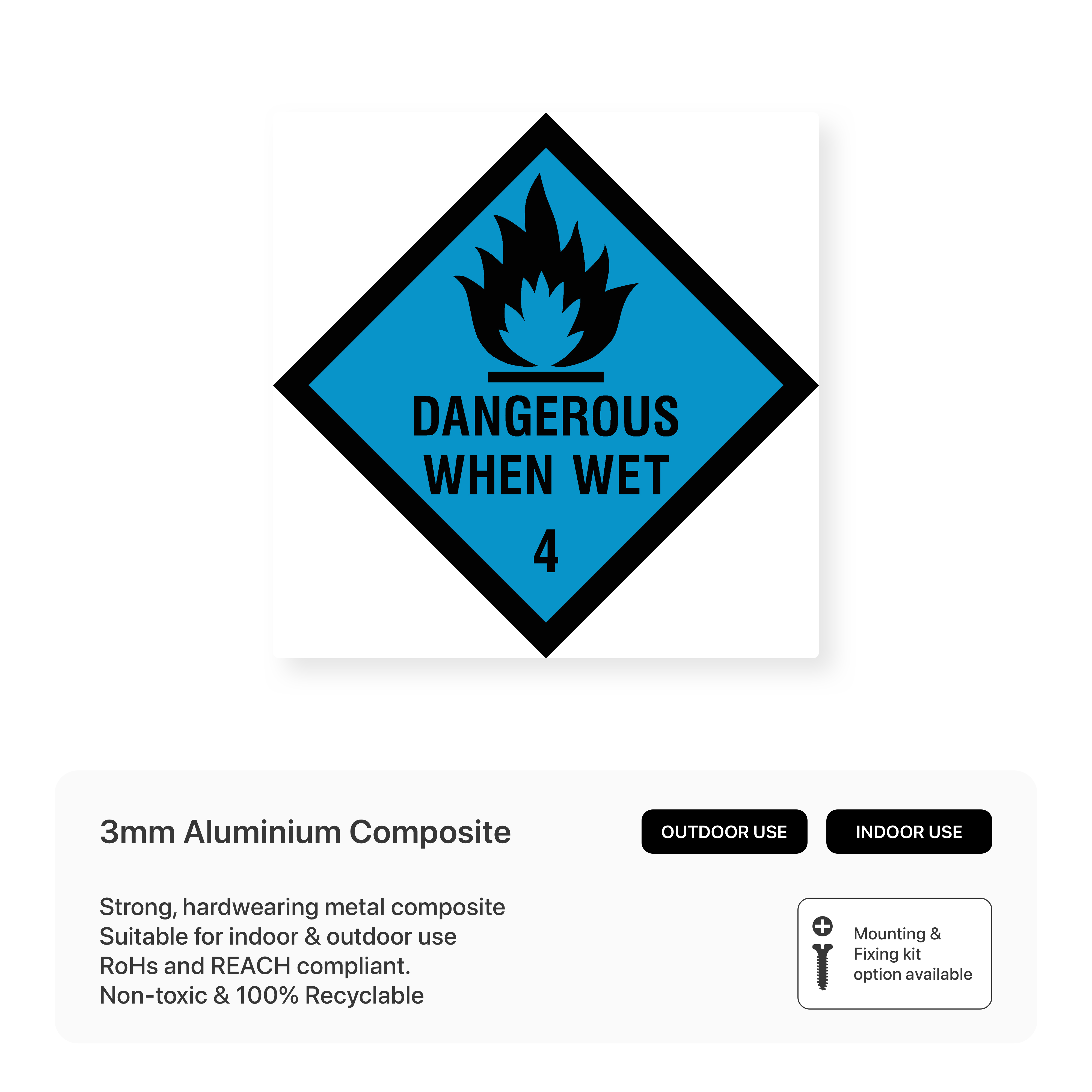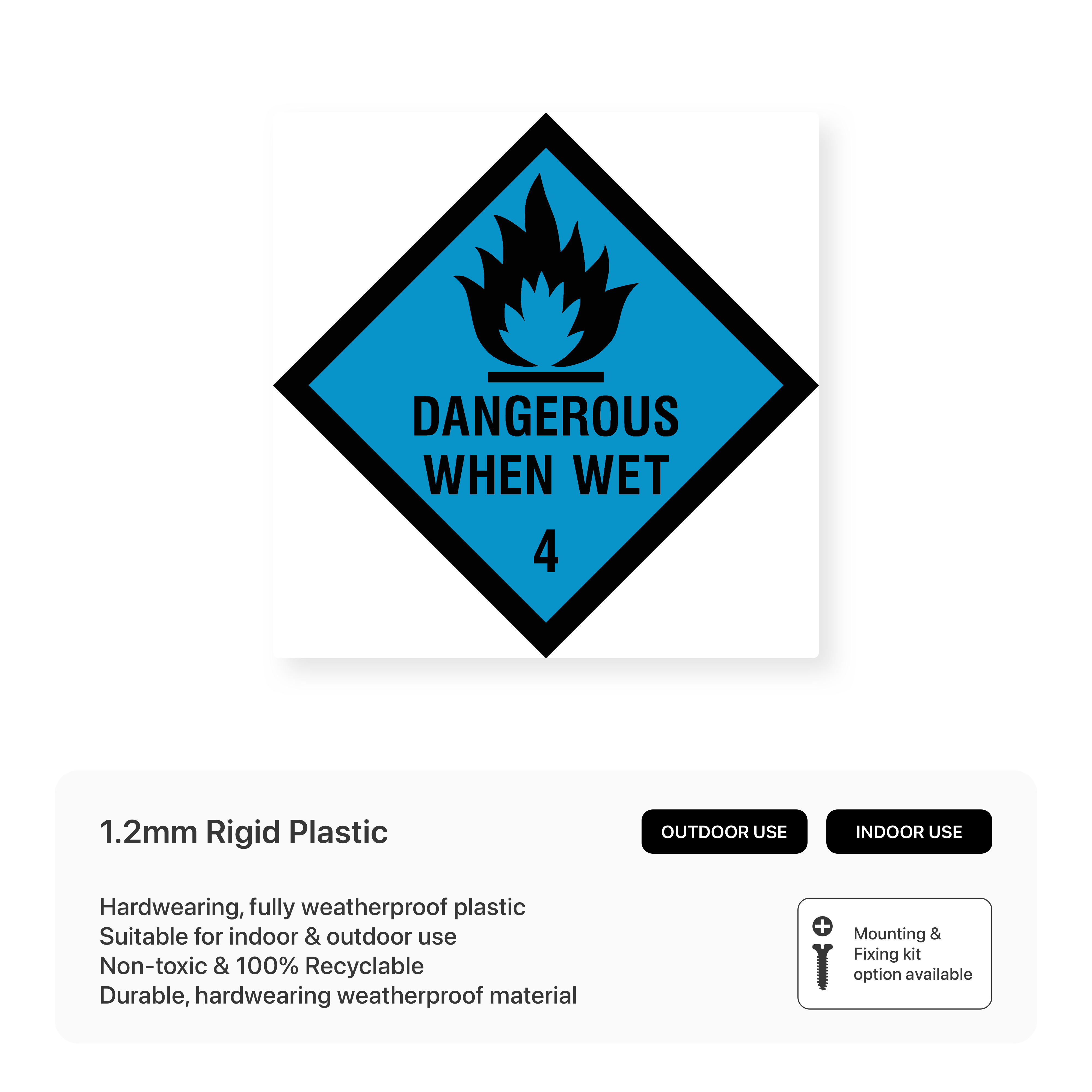Warn of substances that become dangerous when wet with our "Dangerous when wet 4 - Hazchem" sign. This sign clearly communicates the specific hazards associated with these substances, promoting safe handling, storage, and use to prevent accidents and injuries.