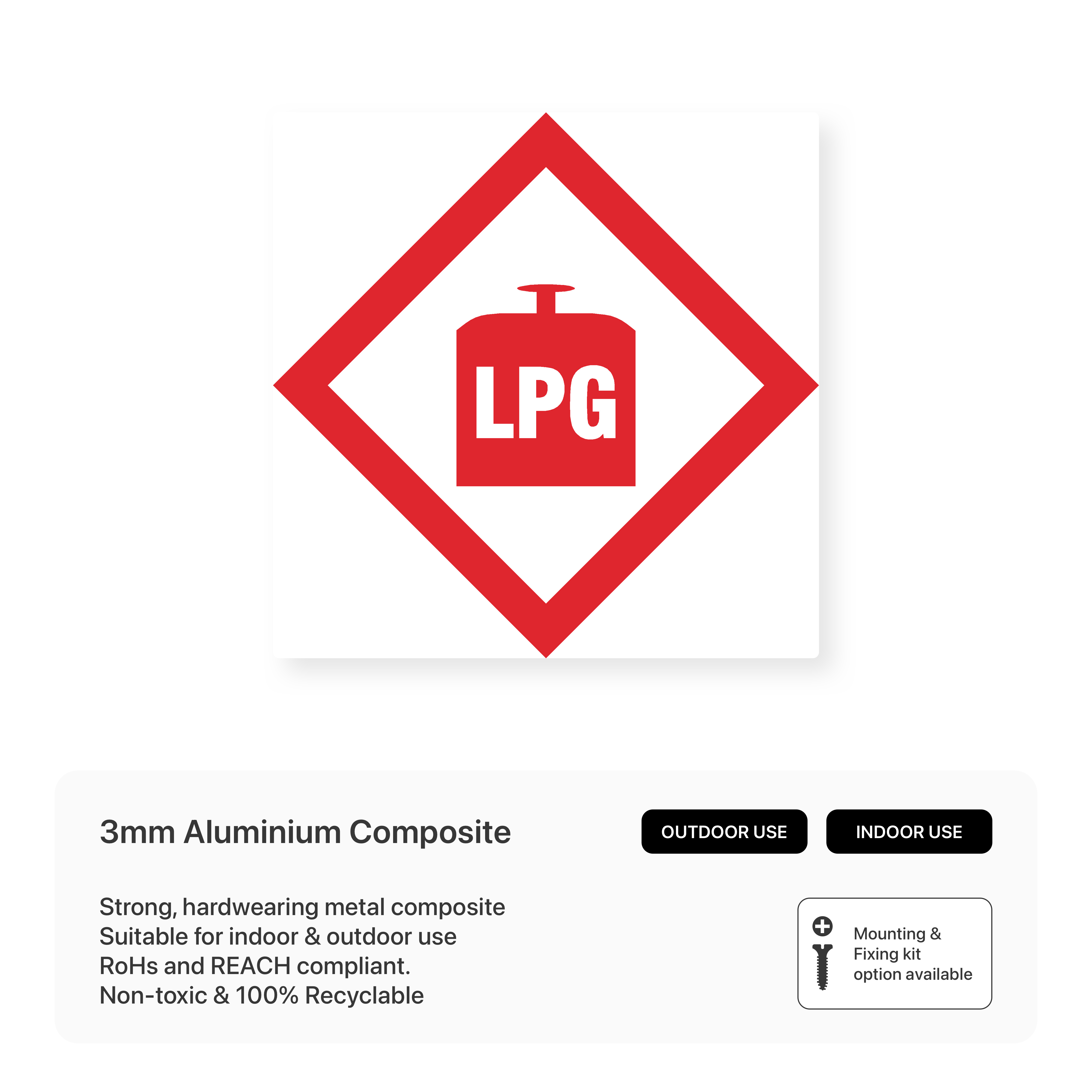 Ensure safe handling and storage of liquefied petroleum gas (LPG) with our "LPG Hazard Diamond" sign. This sign clearly communicates the specific hazards associated with LPG, promoting safety and preventing accidents.