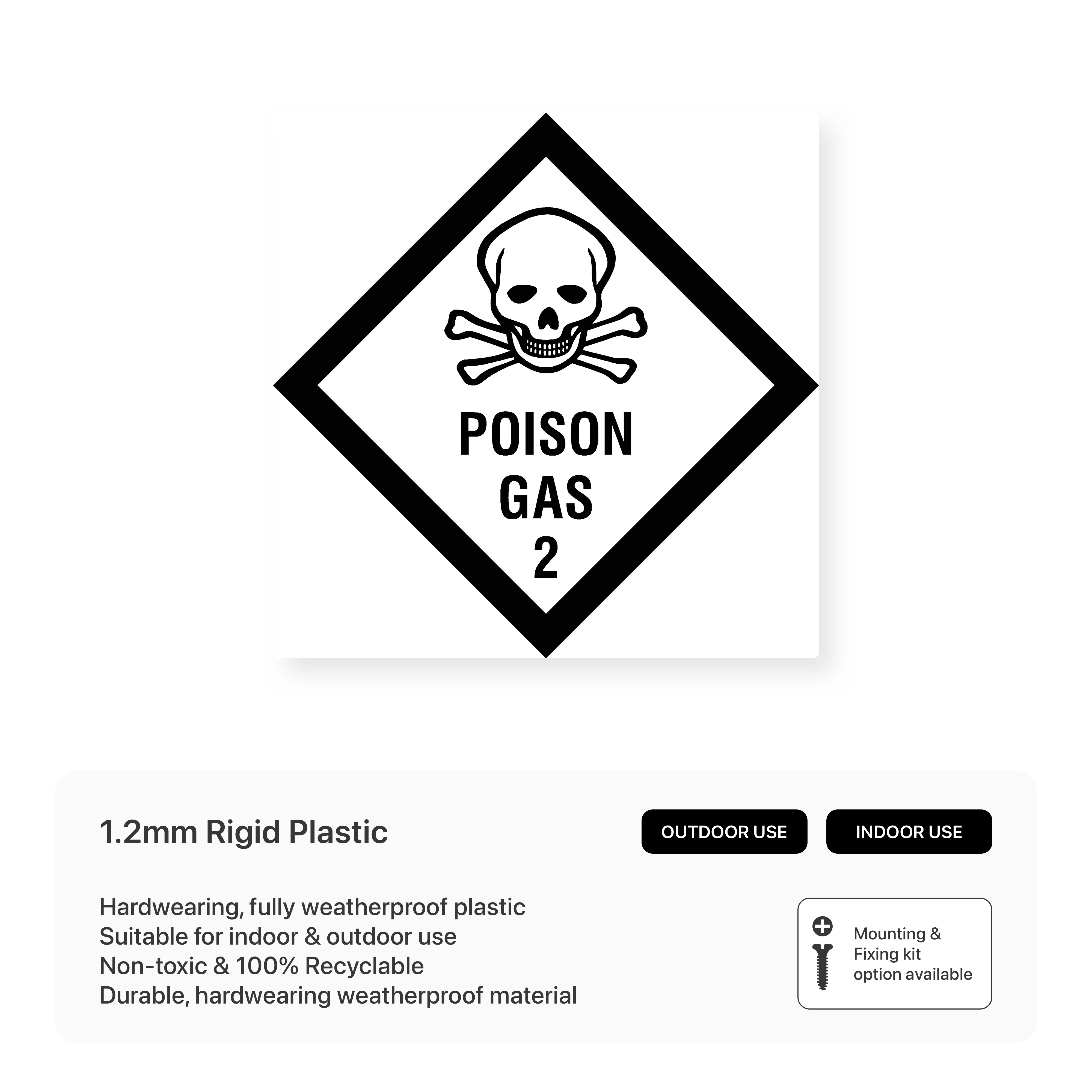 Alert workers and emergency responders to the presence of poison gas with our "Poison Gas 2 - Hazchem" sign. This sign clearly communicates the specific hazards associated with poison gas, prompting immediate evacuation and appropriate safety measures.