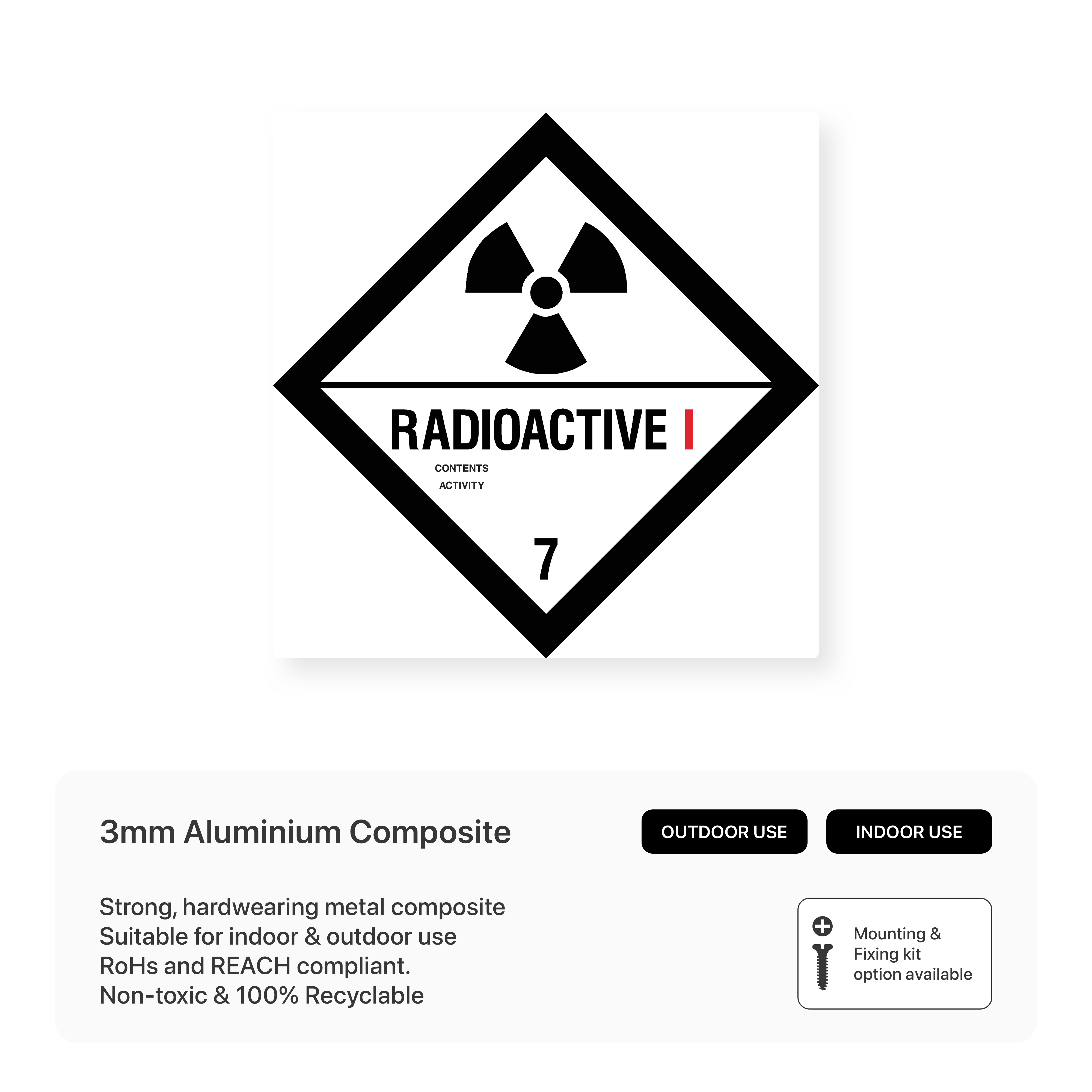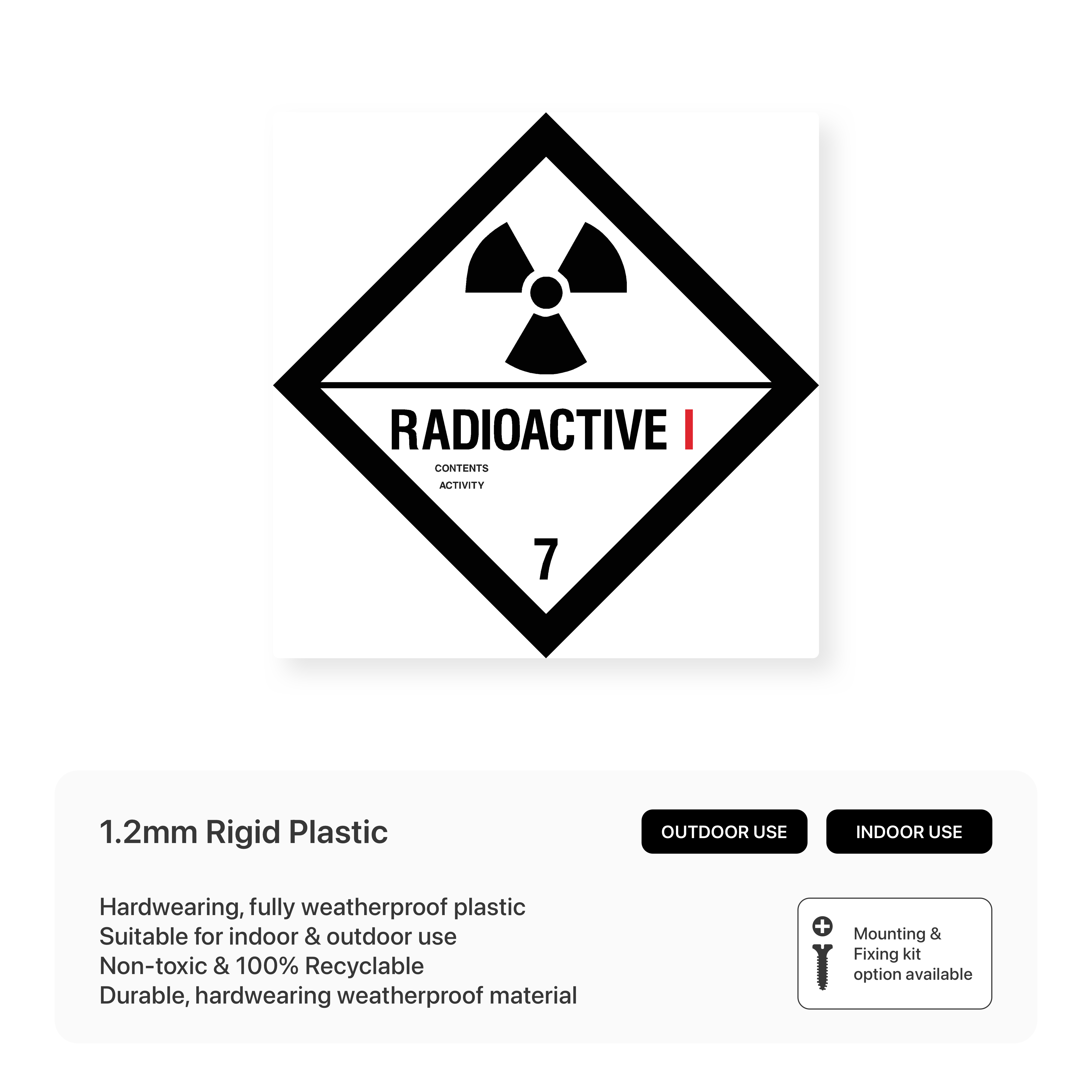 Warn of radioactive hazards with our "Radioactive I 7 - Hazchem" sign. This sign clearly communicates the specific hazards associated with radioactive materials, ensuring proper handling, storage, and disposal to protect people and the environment.