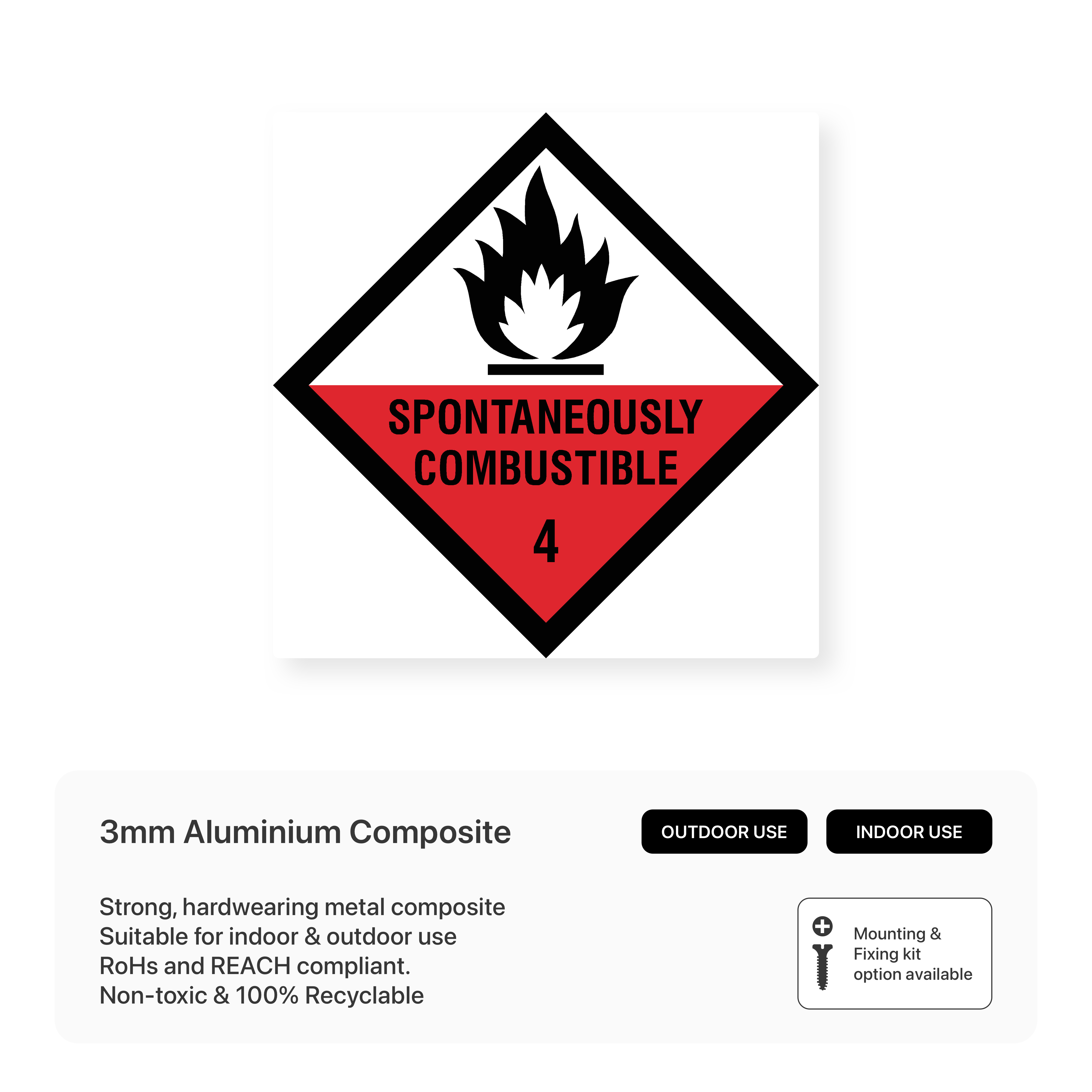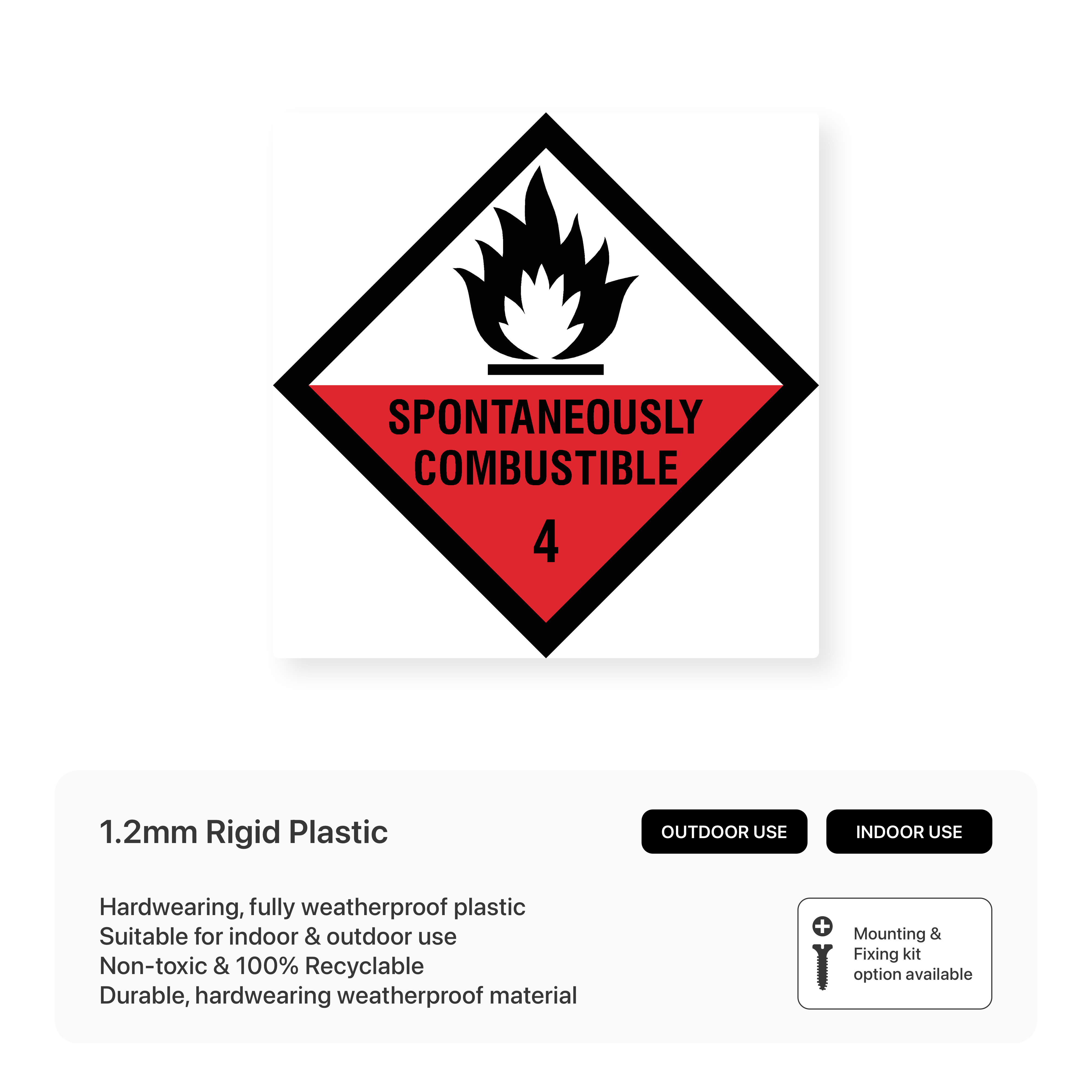 Warn of spontaneously combustible substances with our "Spontaneously Combustible 4 - Hazchem" sign. This sign clearly communicates the specific hazards associated with these substances, which can ignite without an external ignition source, promoting safe handling and storage.