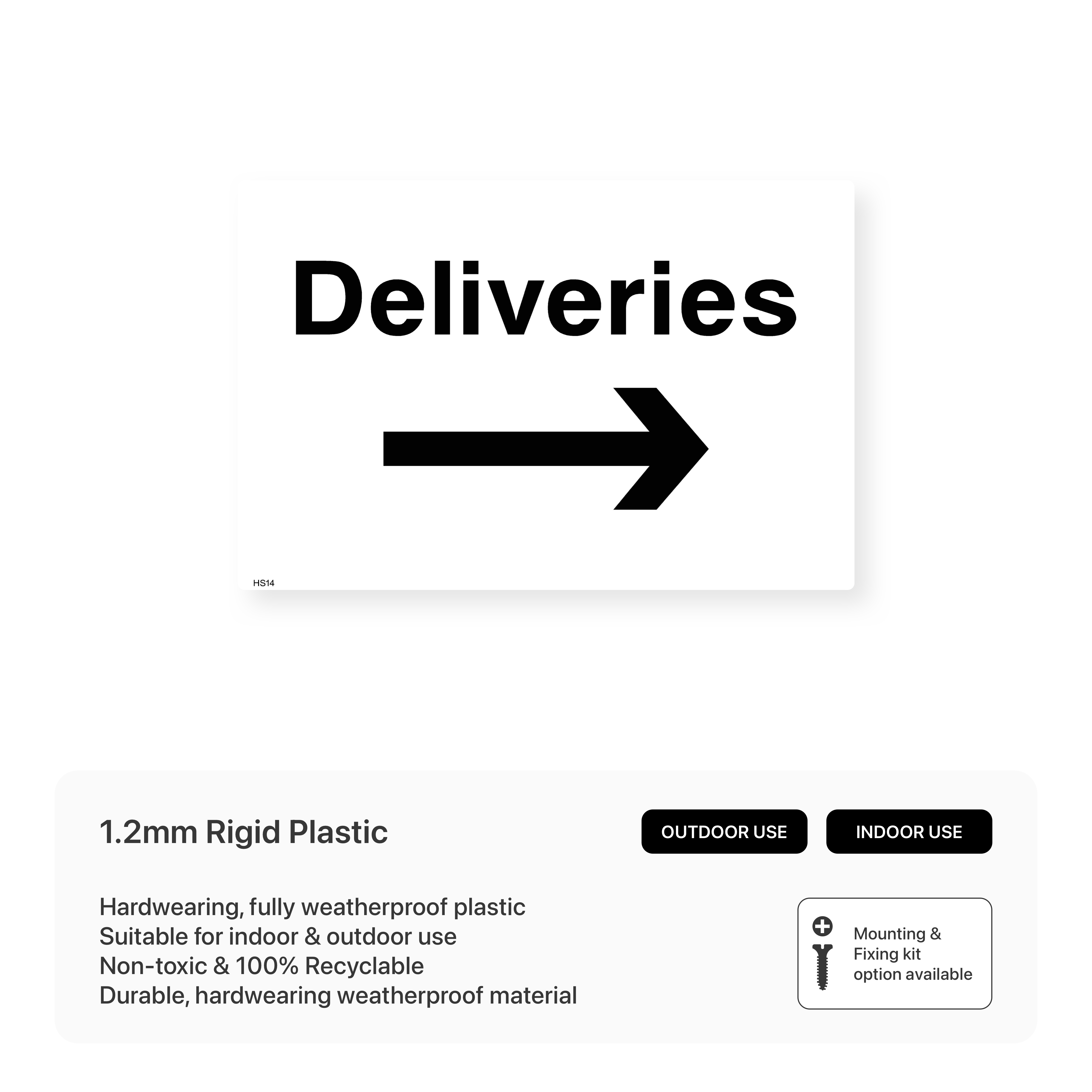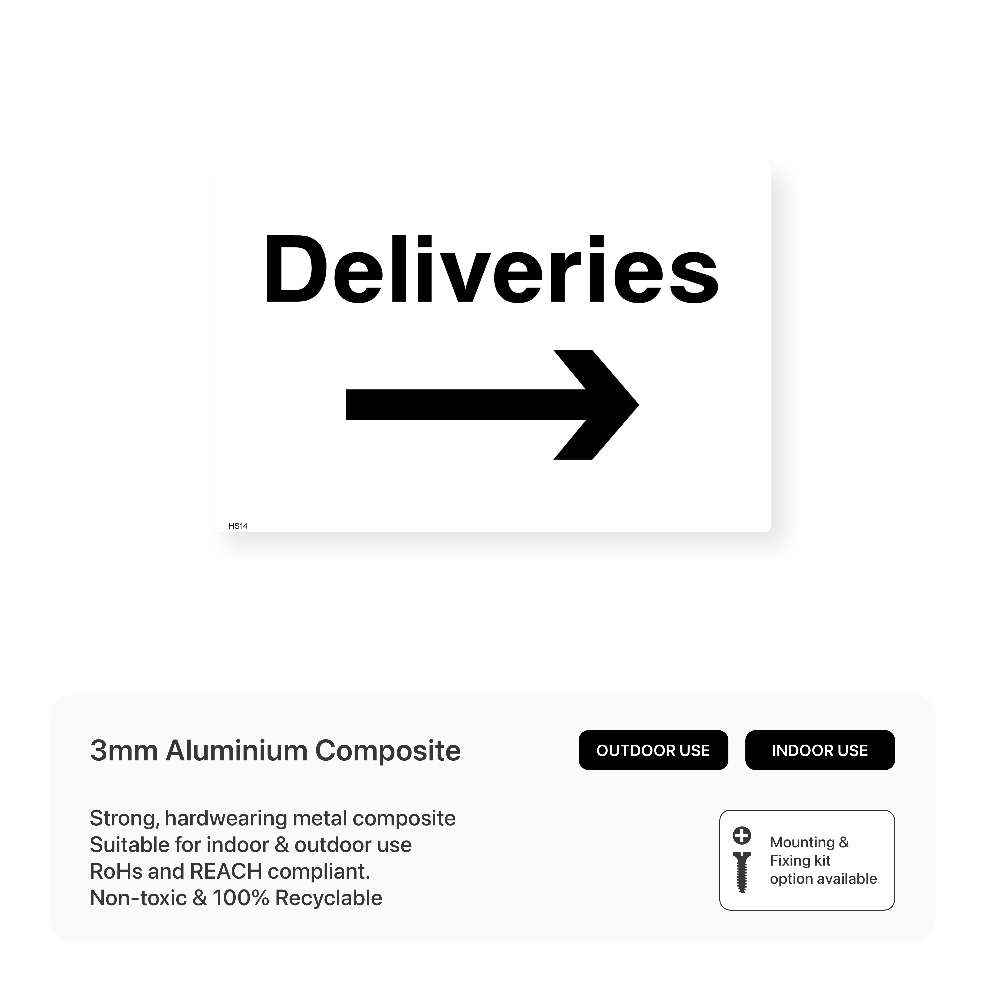 Direct deliveries to the correct location with our "Deliveries - Right" sign. This directional sign clearly indicates the way for delivery vehicles, ensuring efficient operations and minimizing disruptions.