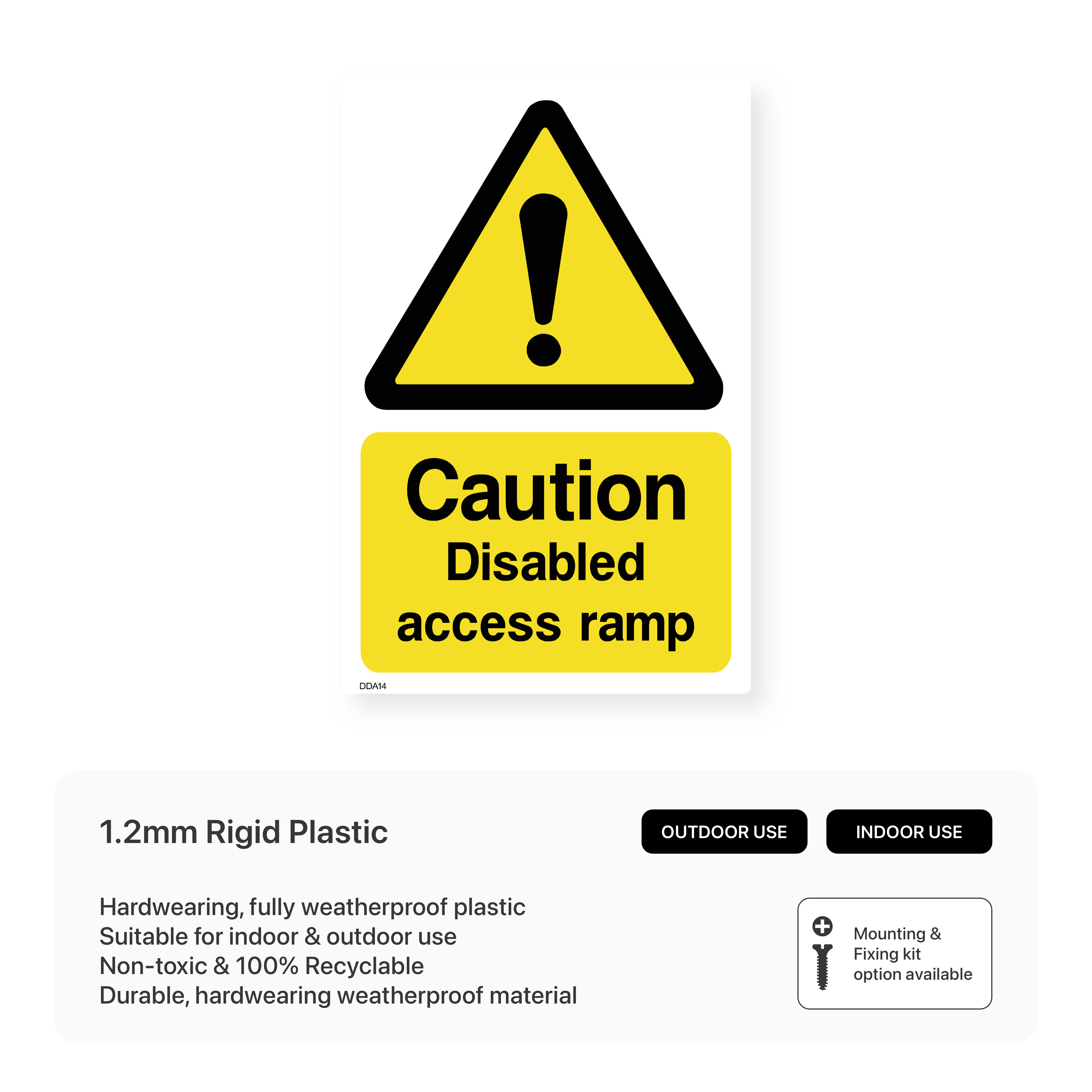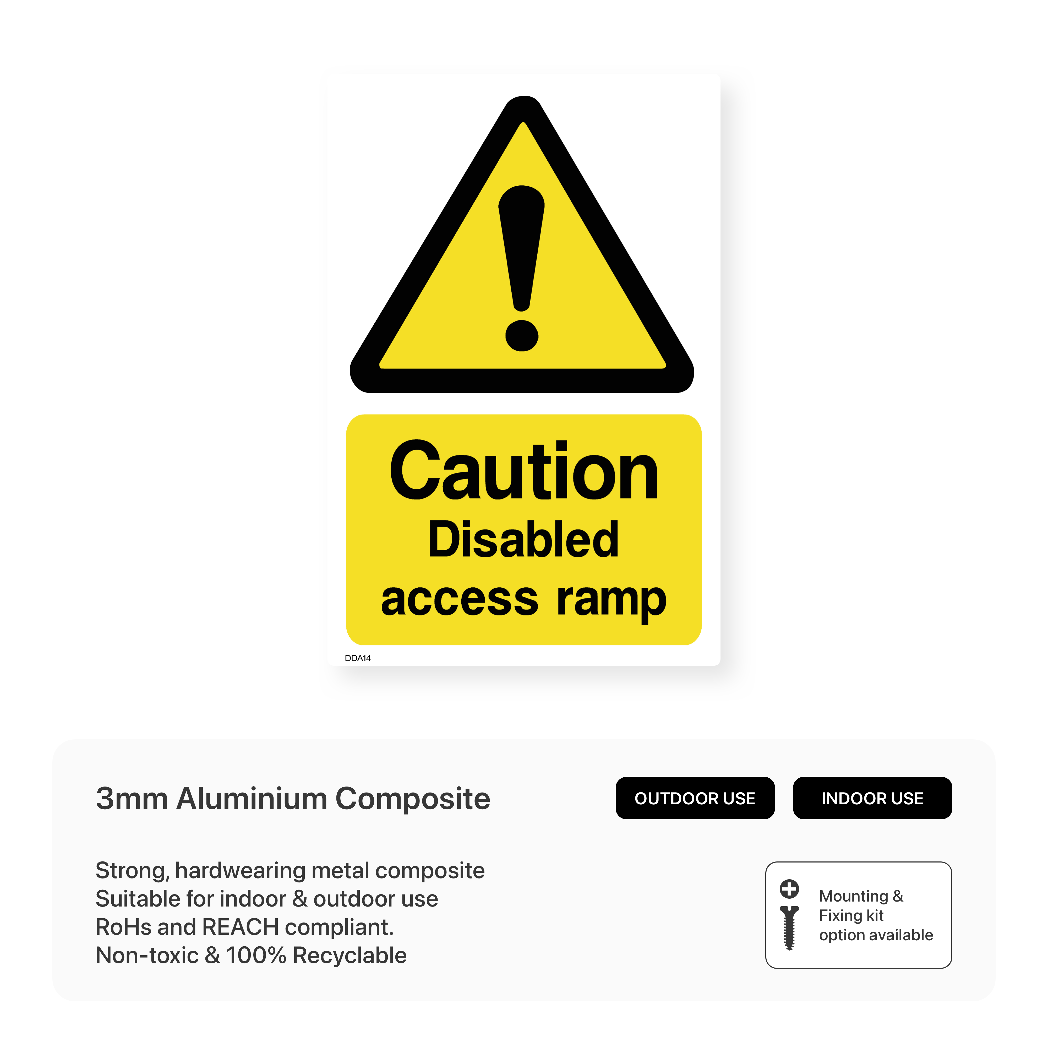Promote accessibility and safety with our "Caution - Disabled access ramp" sign. This sign alerts individuals to the presence of a disabled access ramp, ensuring smooth navigation for individuals with disabilities and preventing accidents.