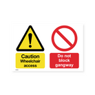 Maintain clear access to wheelchair ramps with our "Caution - Wheelchair access ramp - Do not block gangway" sign. This sign reminds individuals not to obstruct the ramp or the surrounding area, ensuring safe and easy access for wheelchair users.