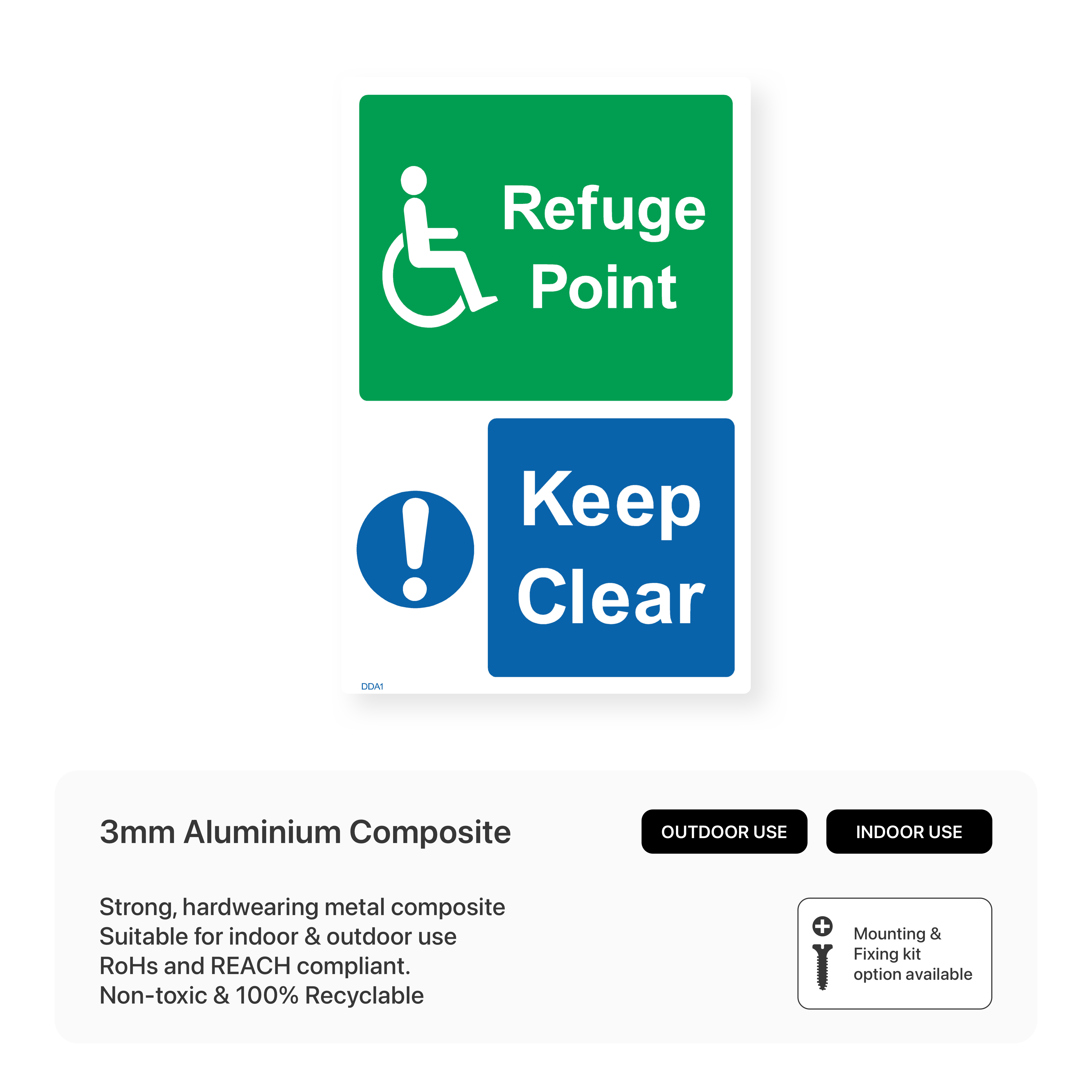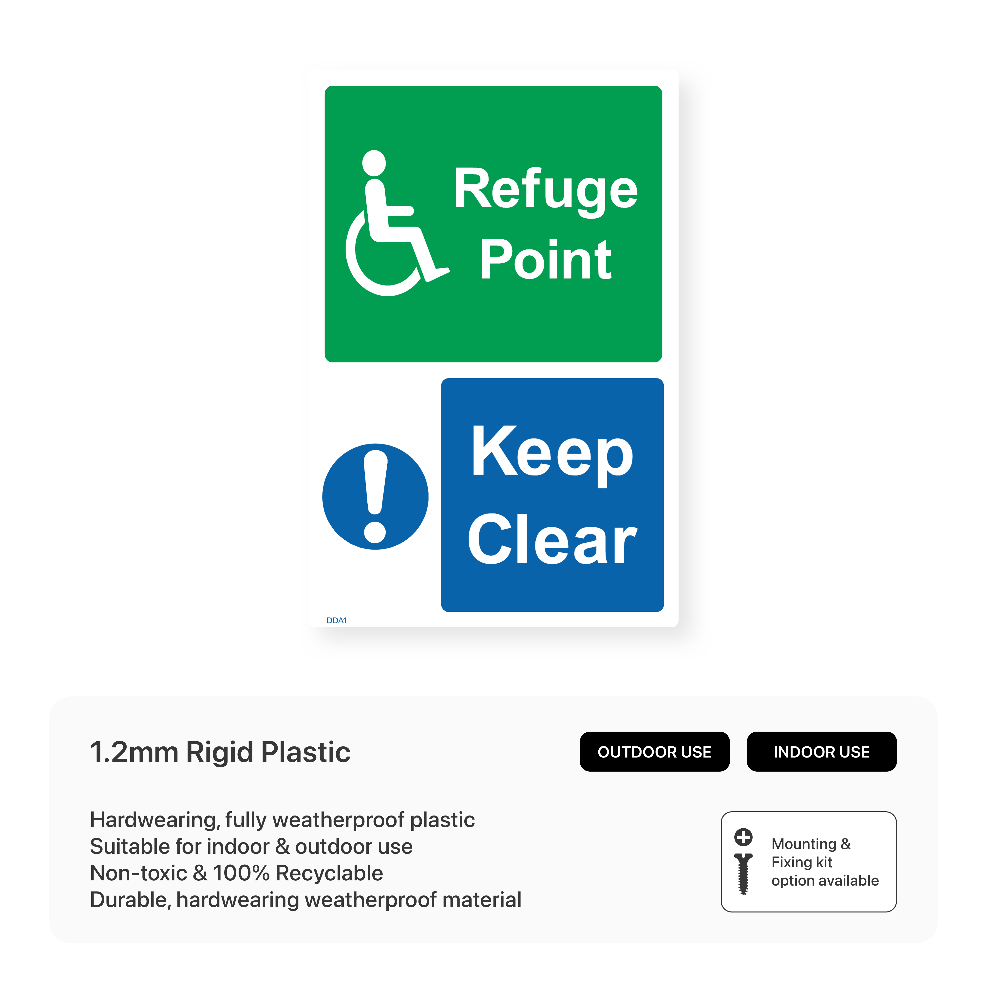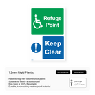 Ensure safe evacuation for everyone with our "Refuge Point - Keep clear" sign. Clearly mark designated refuge areas and maintain clear access for individuals seeking safety during emergencies.