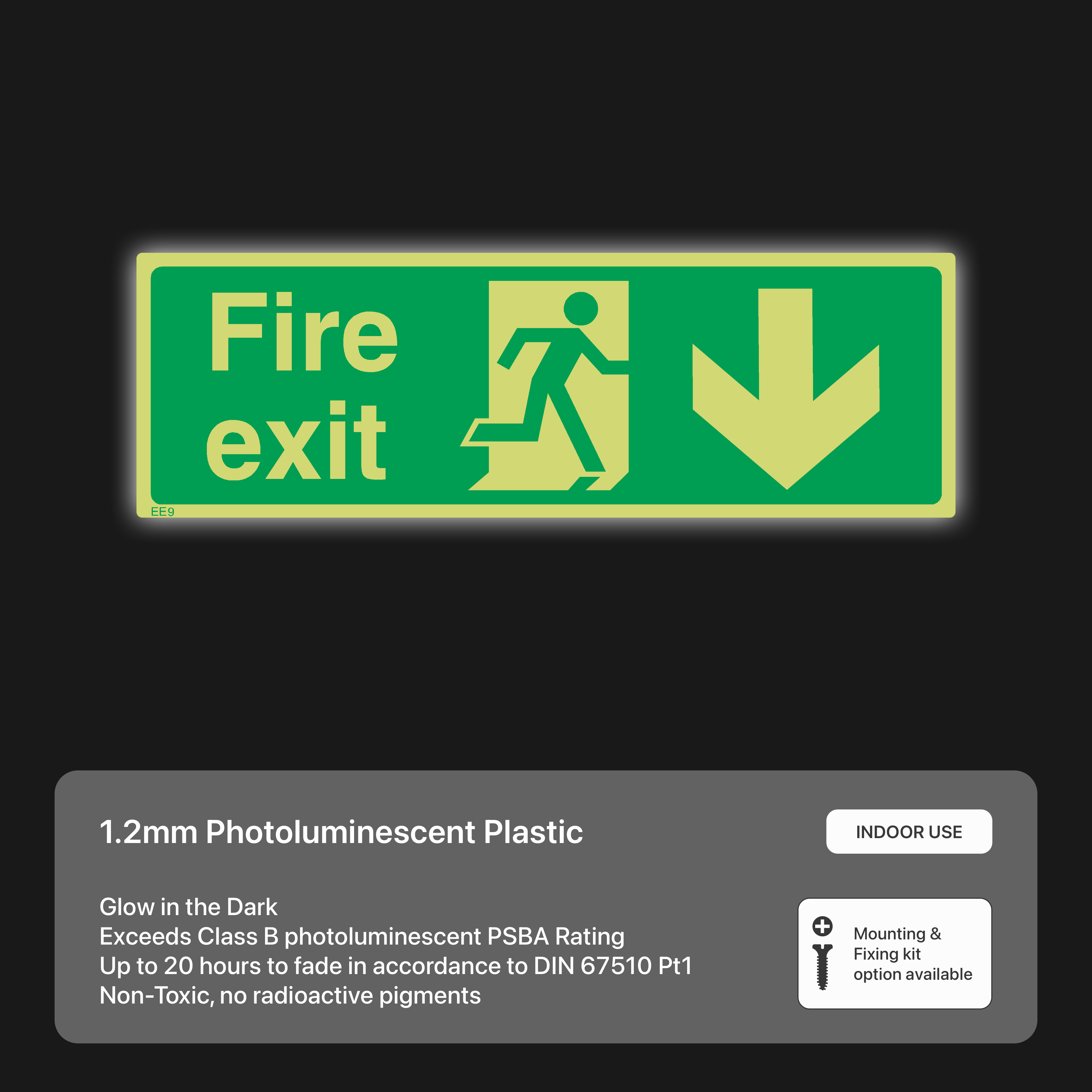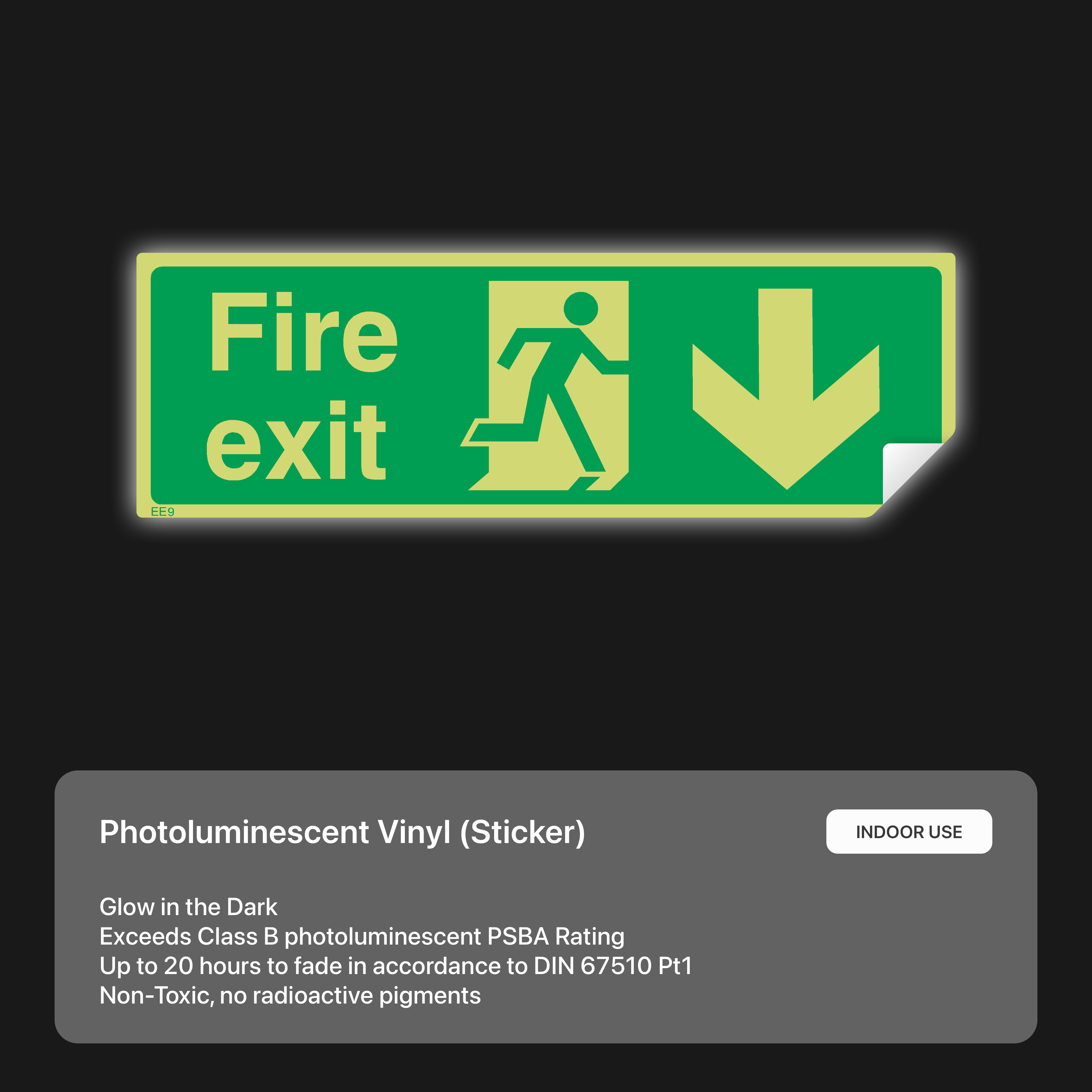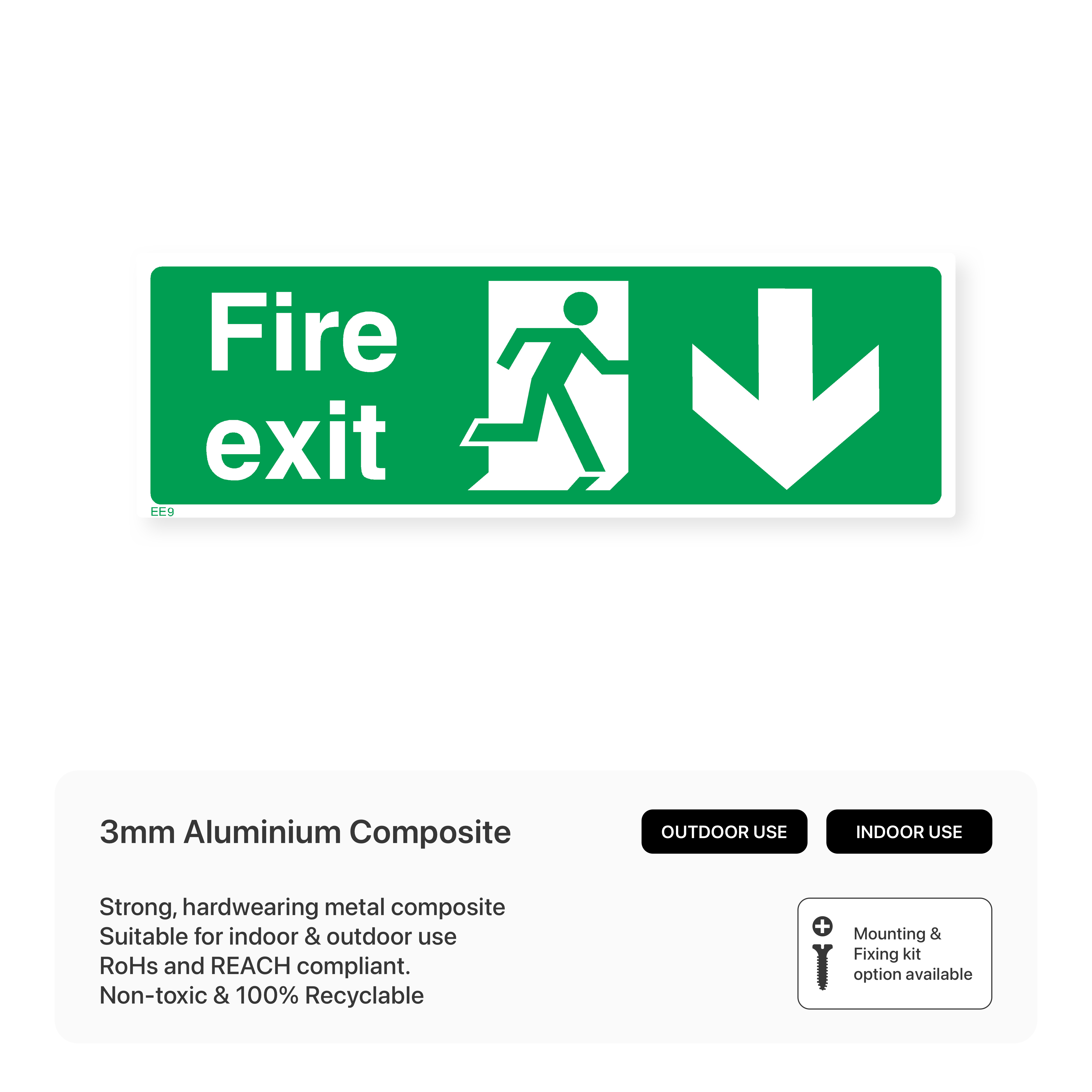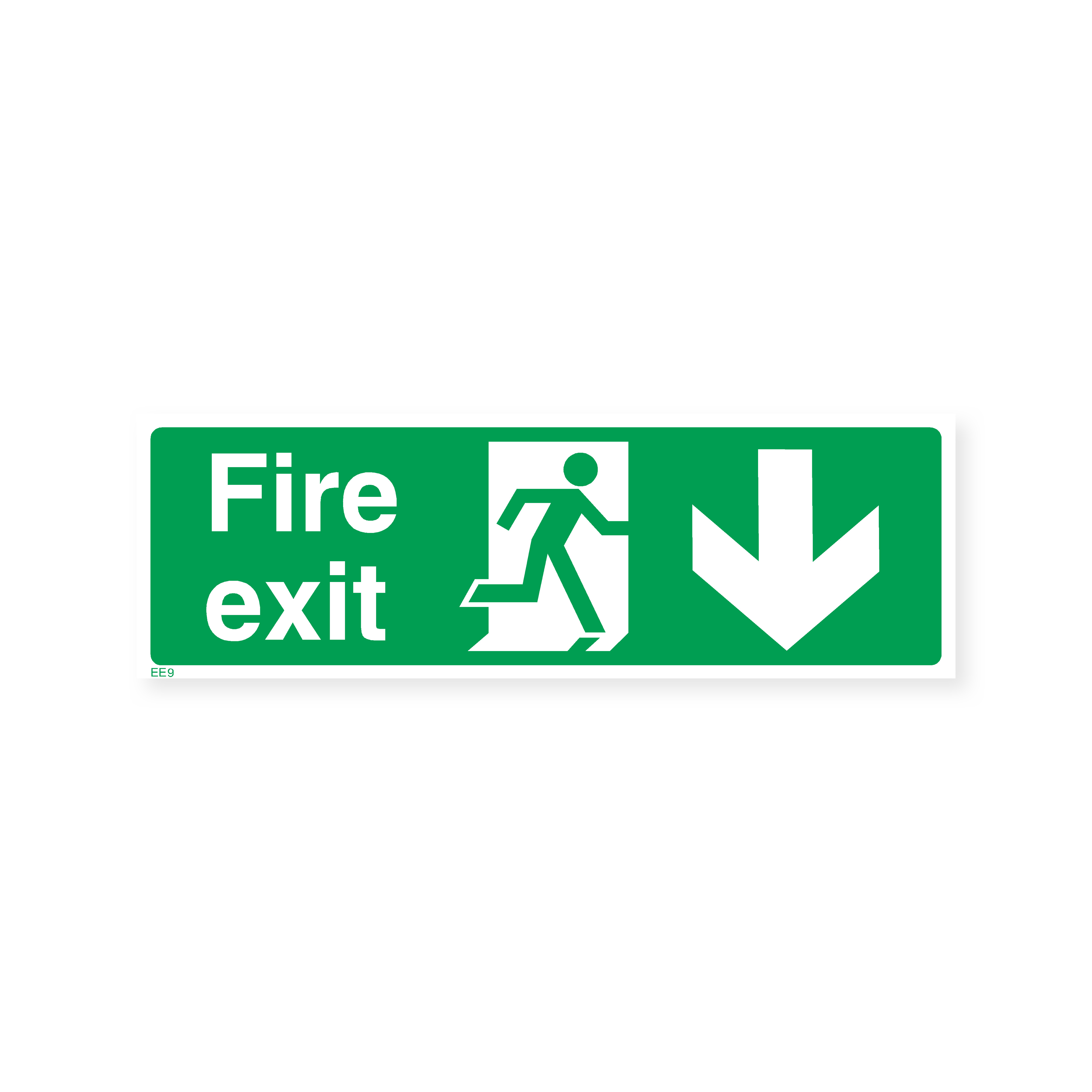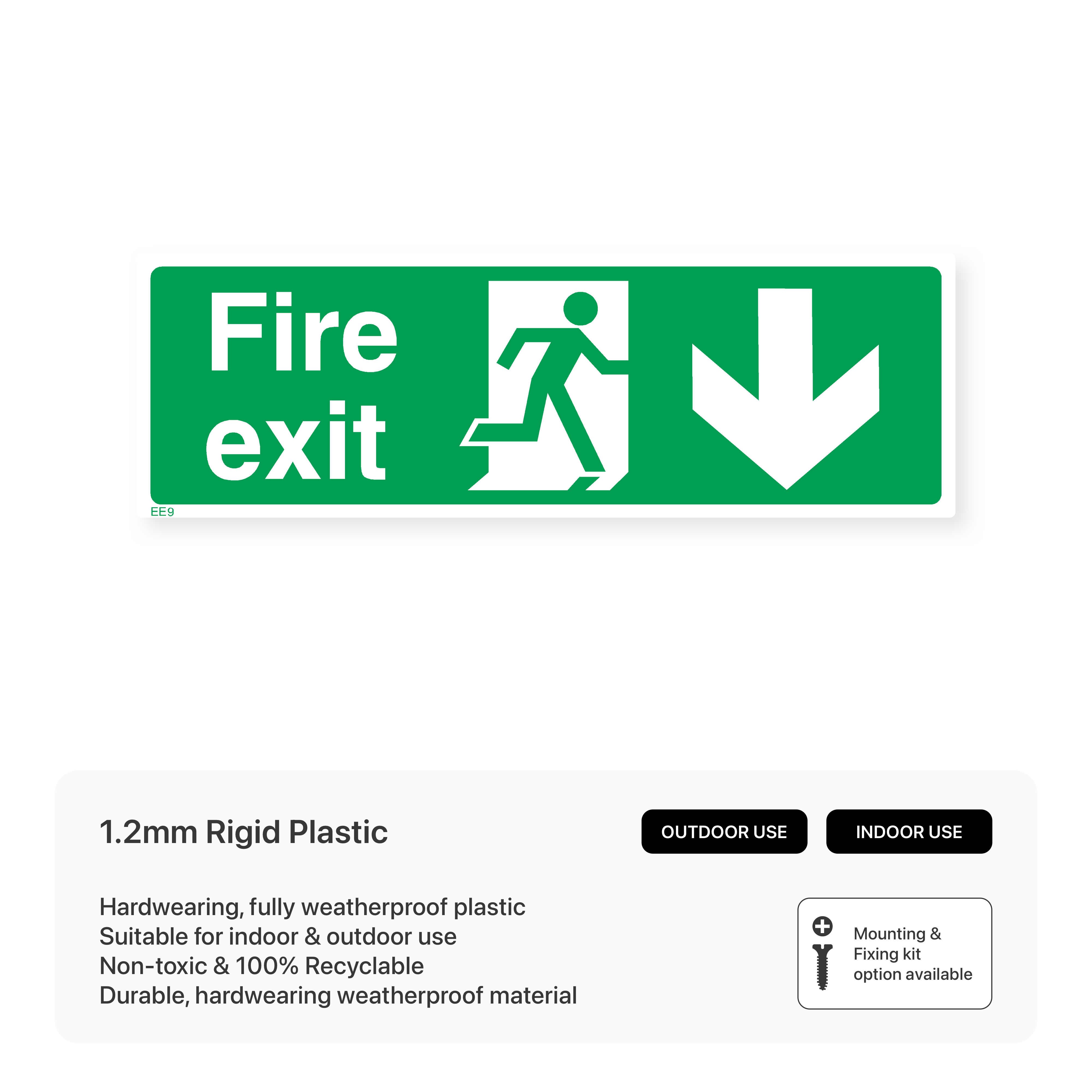 Clearly mark fire exit routes with our "Fire Exit - Down arrow" sign. This directional sign ensures quick and efficient evacuation during emergencies, guiding individuals towards safety.
