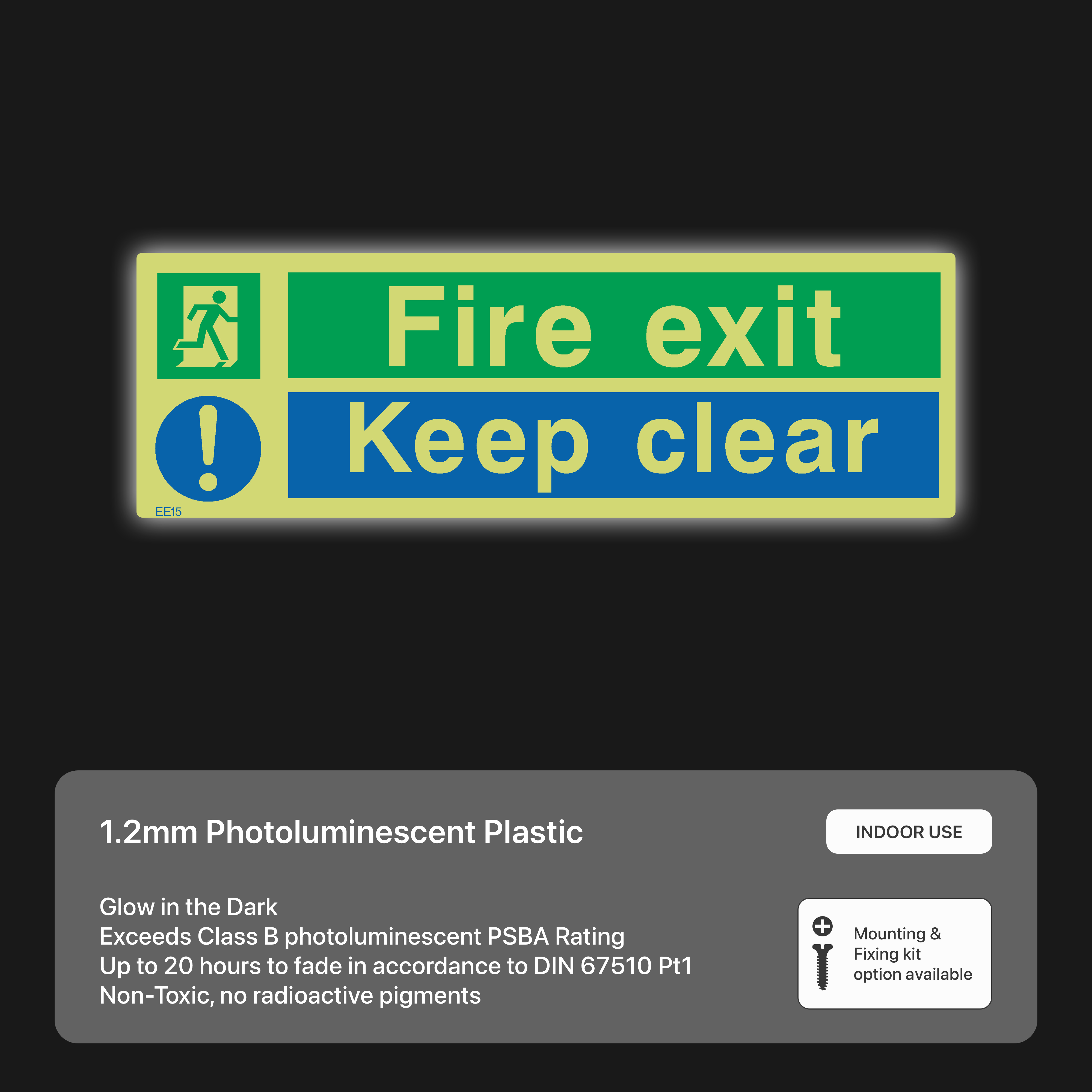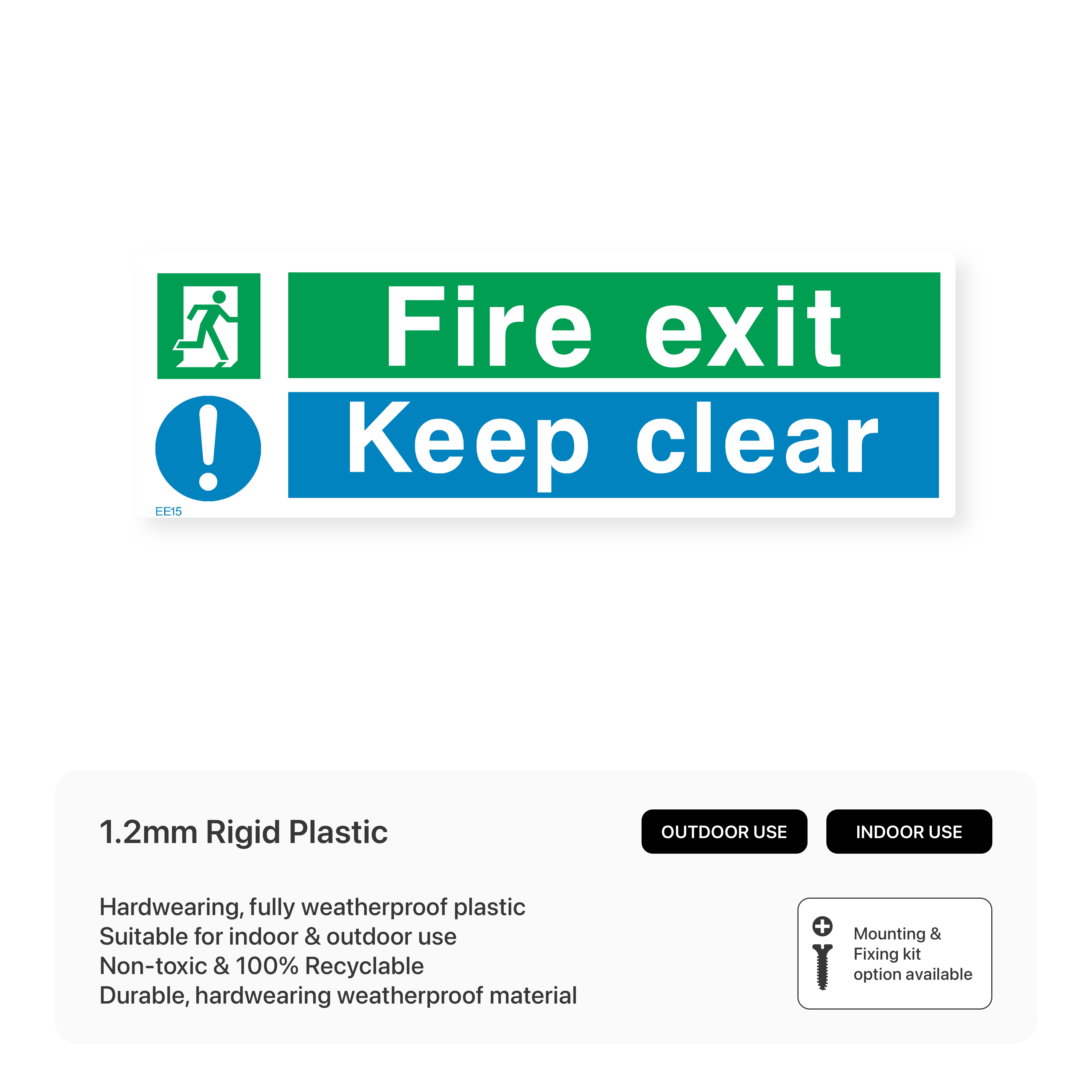 Ensure clear access to fire exits with our "Fire exit - Keep clear" sign. This sign reminds individuals to keep the fire exit path unobstructed, ensuring a safe and efficient evacuation during emergencies.