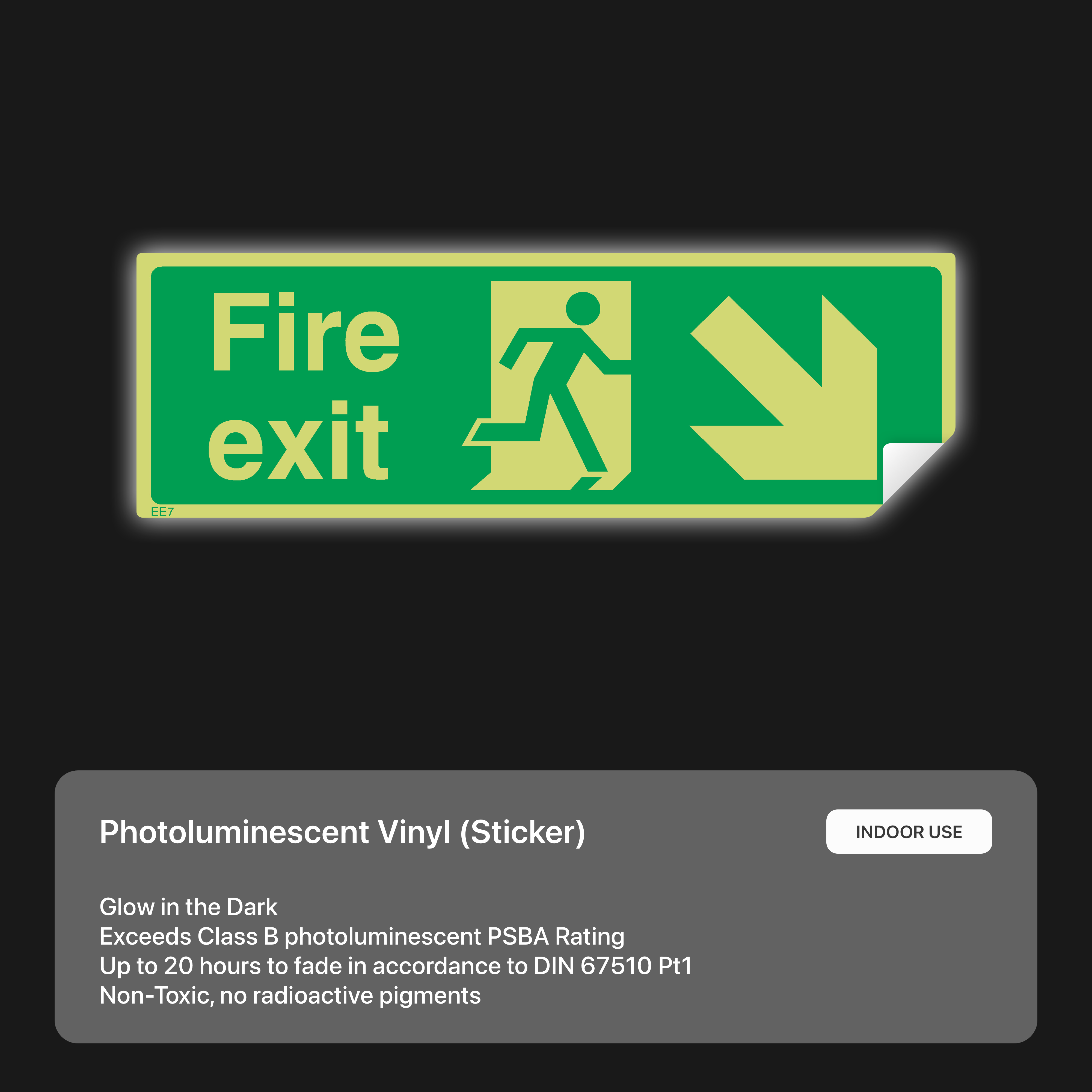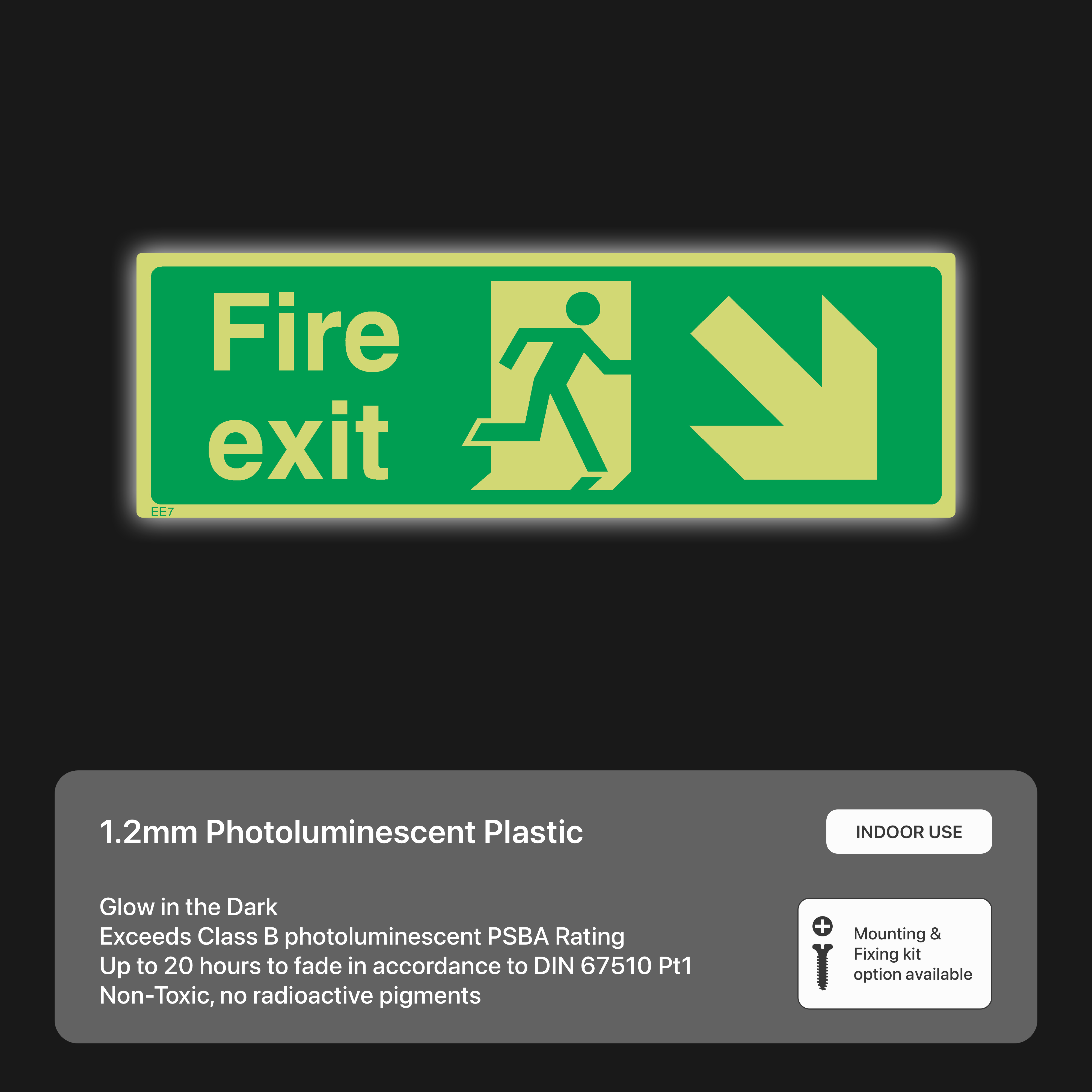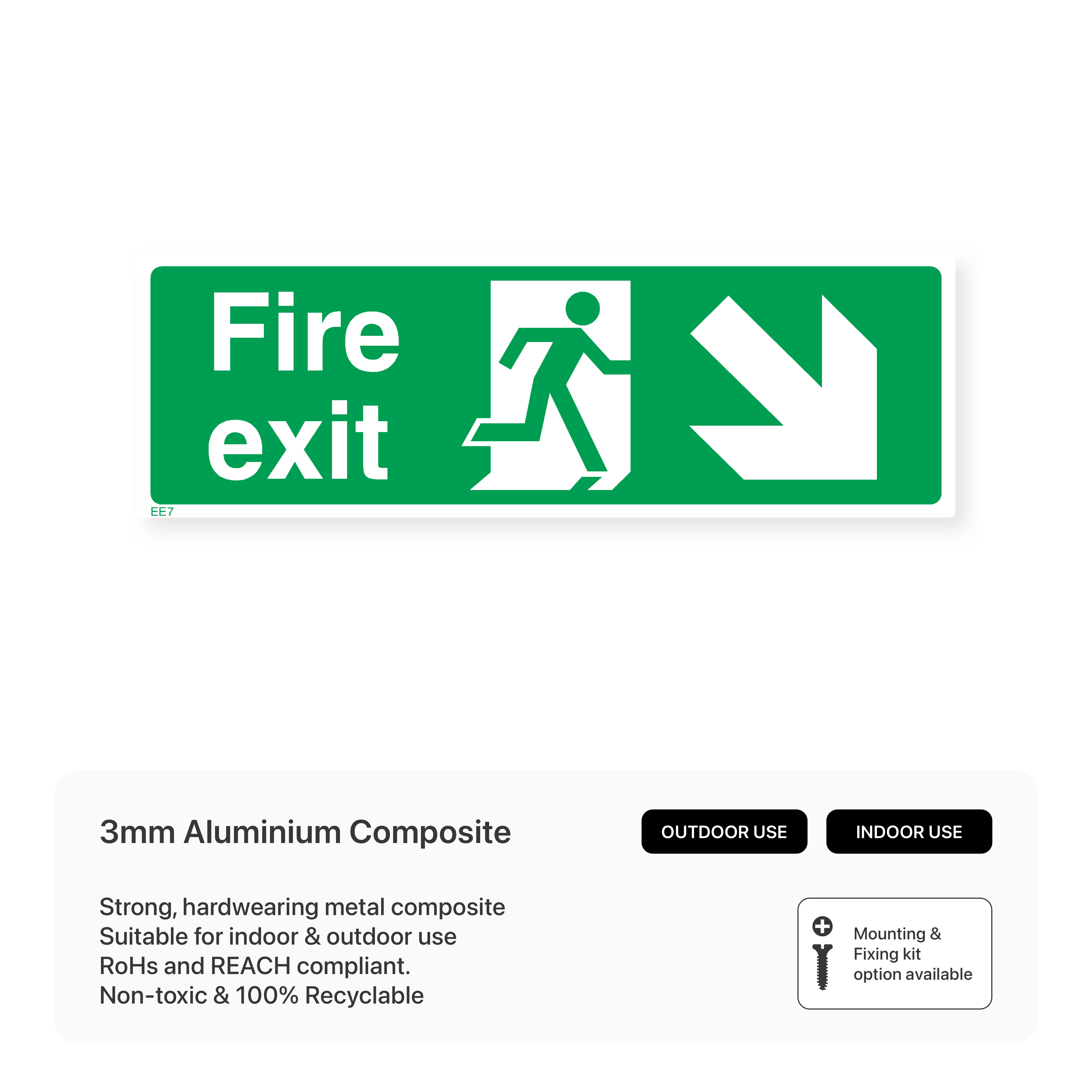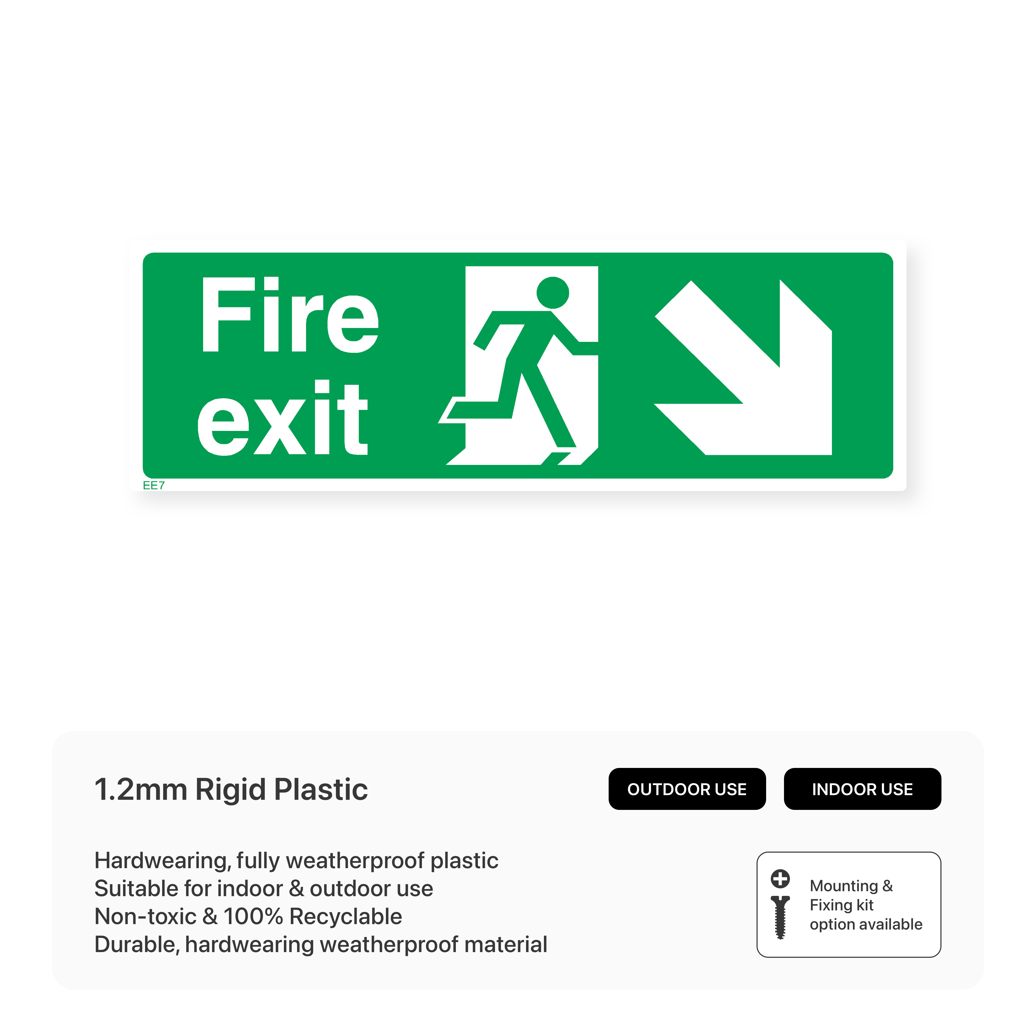 Clearly mark fire exit routes with our "Fire Exit - Right down arrow" sign. This directional sign ensures quick and efficient evacuation during emergencies, guiding individuals towards safety.