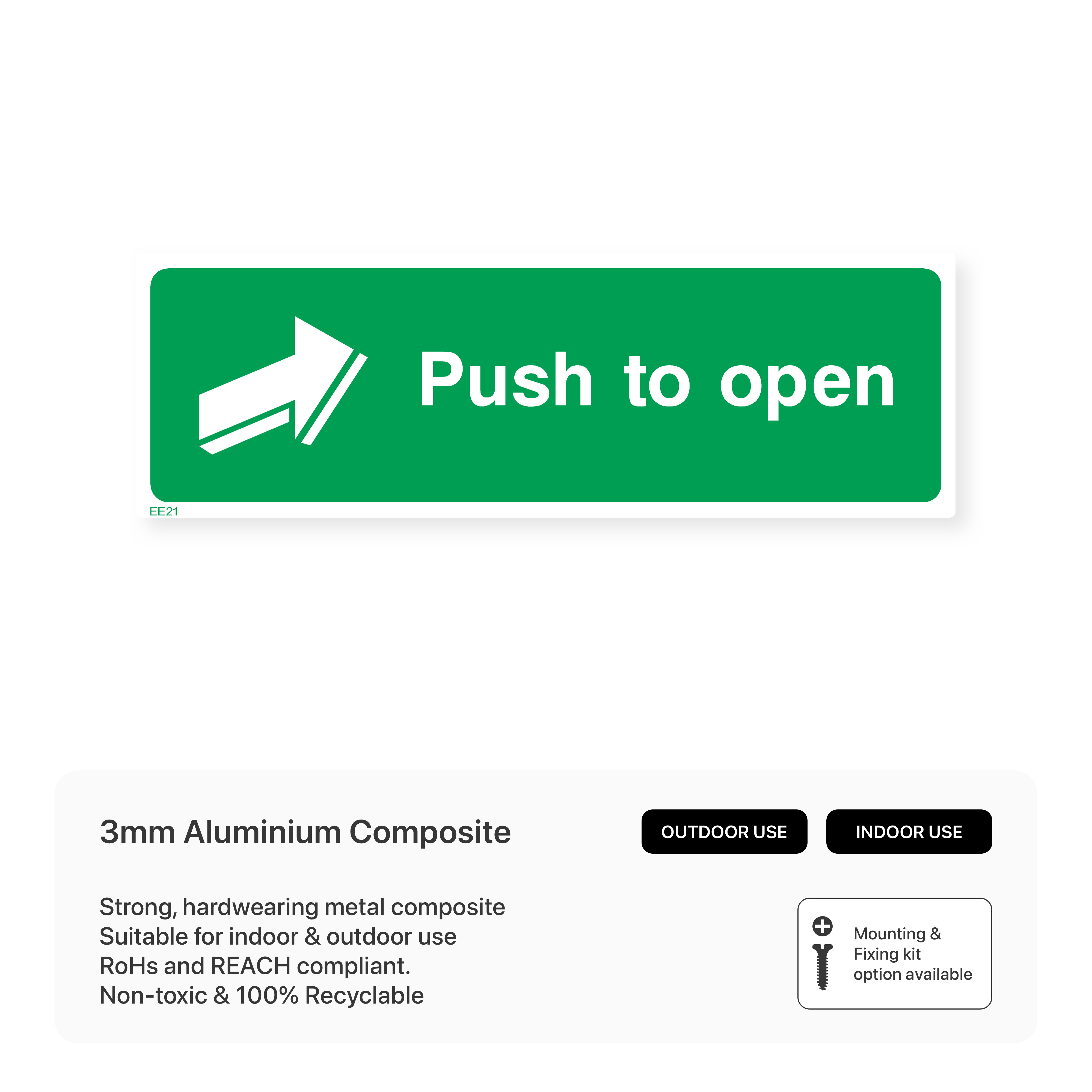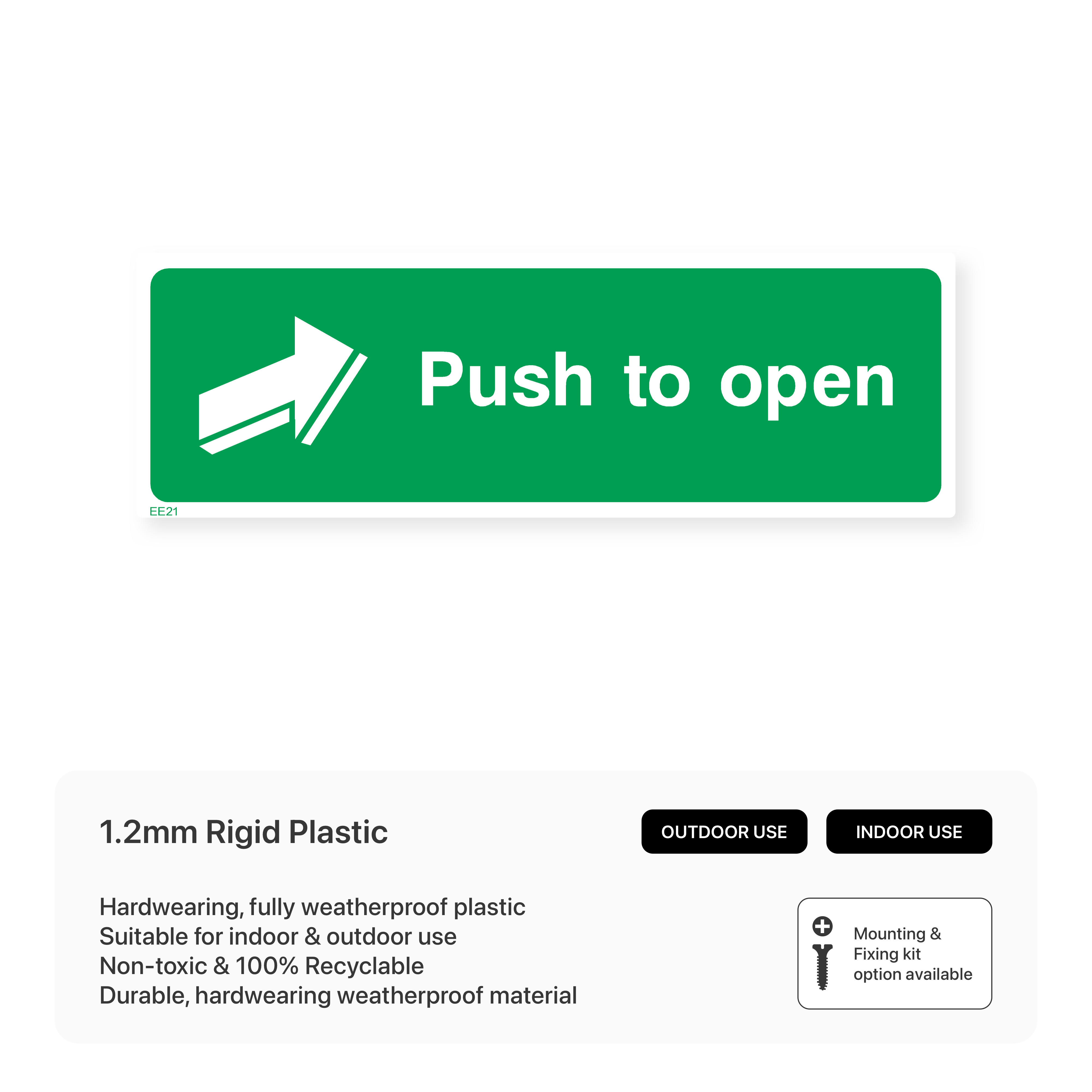 Clearly mark doors with our "Push to open" sign. This sign provides clear instructions on how to open the door, ensuring ease of use and preventing accidents.