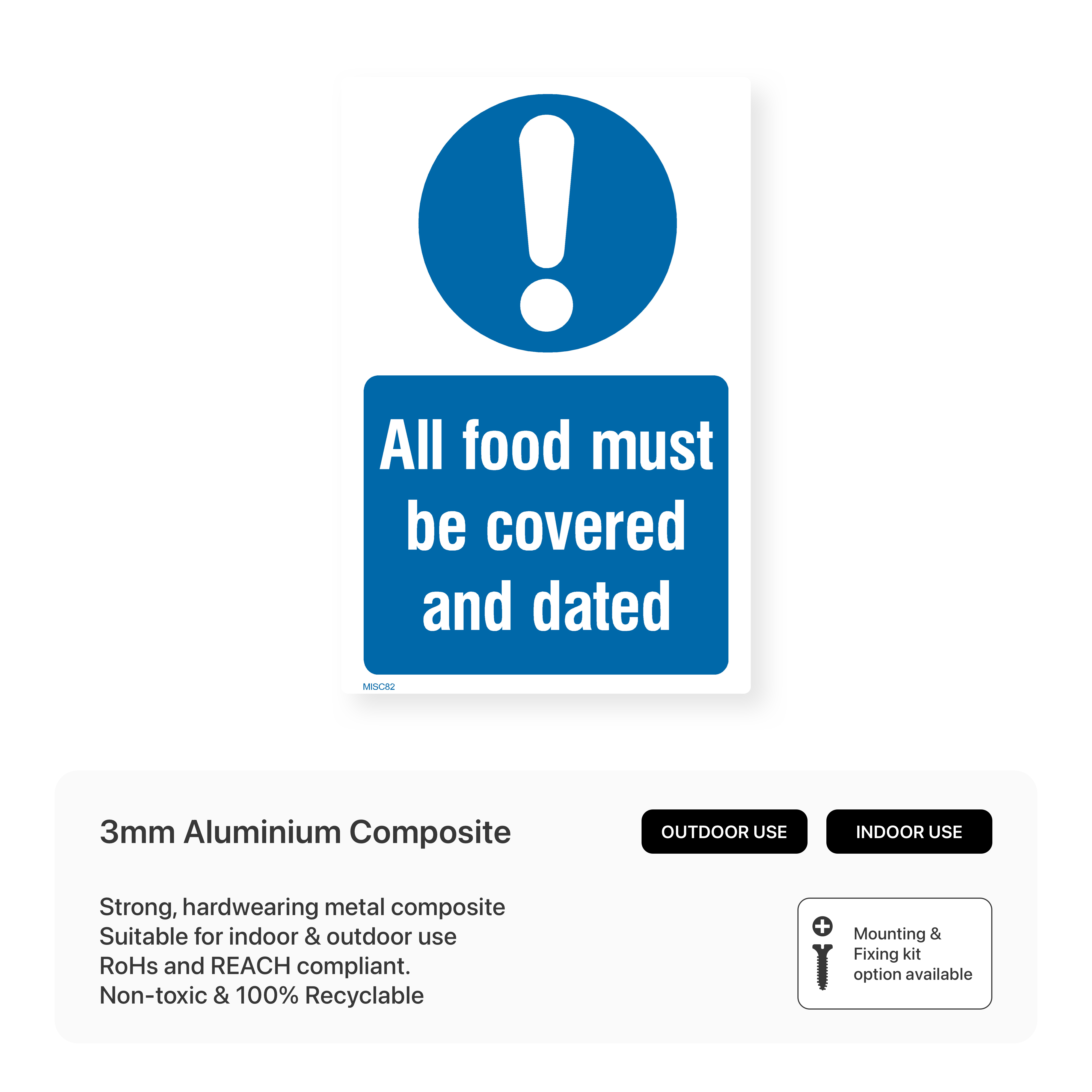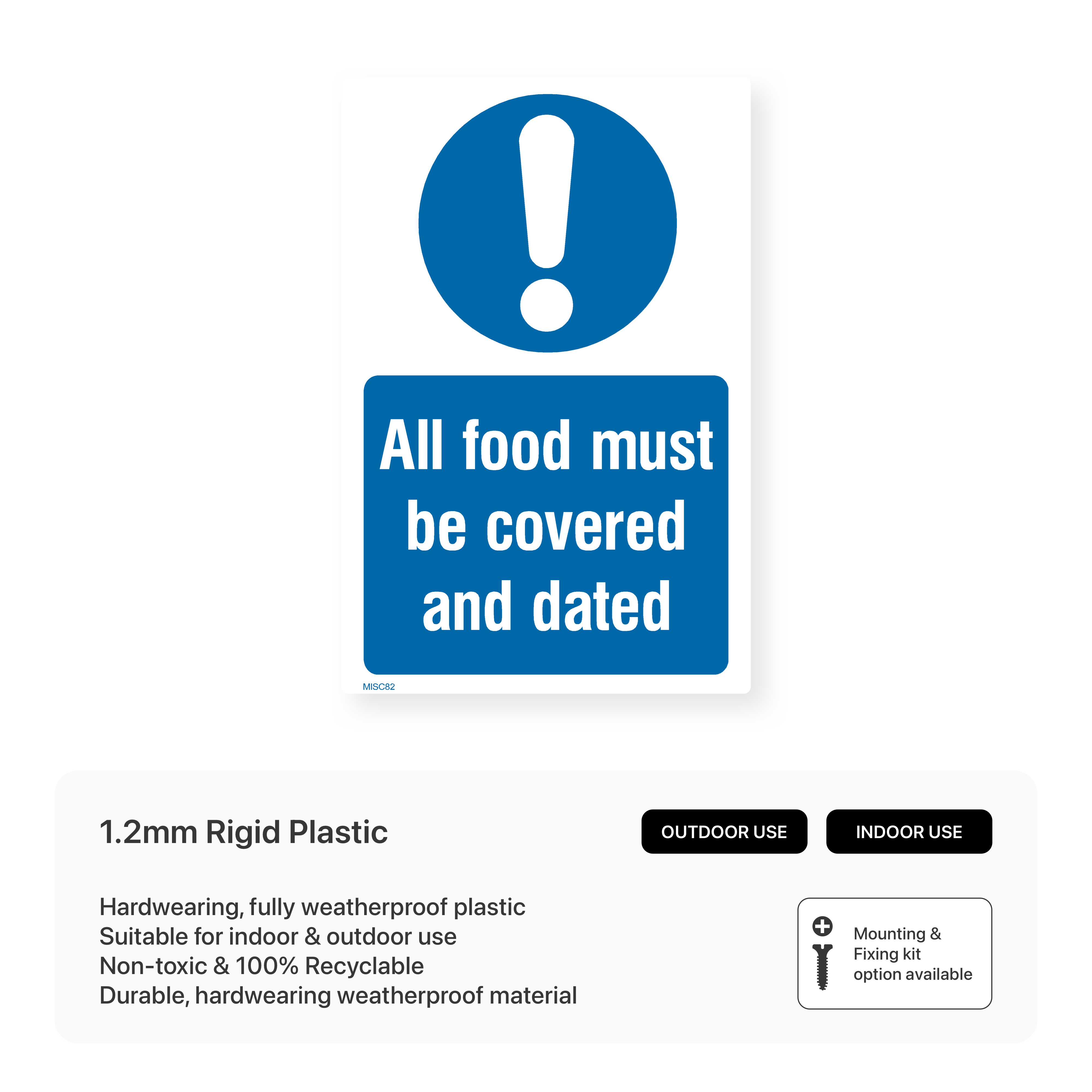 Promote food safety and hygiene in your kitchen or food preparation area with our "All Food Must Be Covered" signs. Ensure proper storage and prevent contamination.