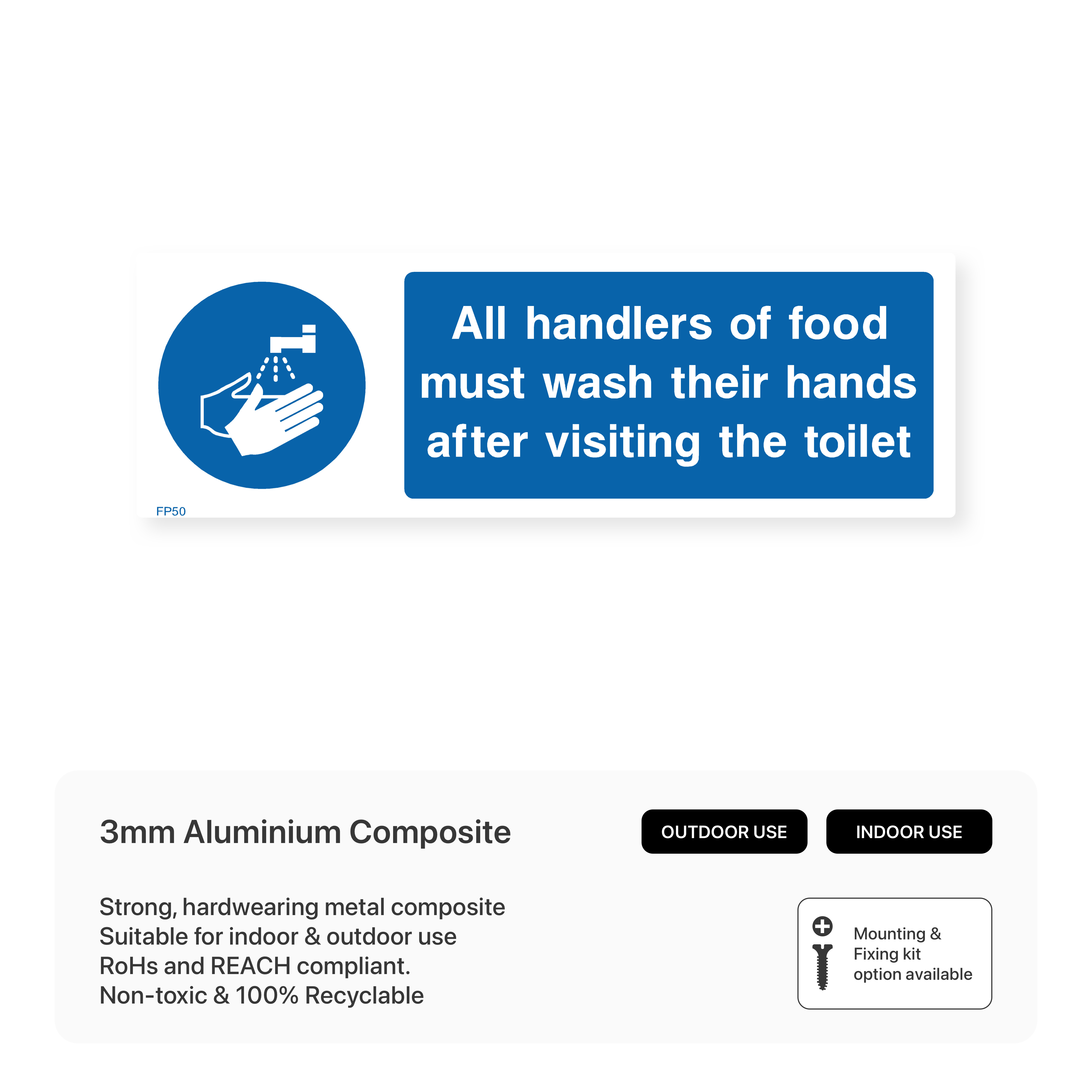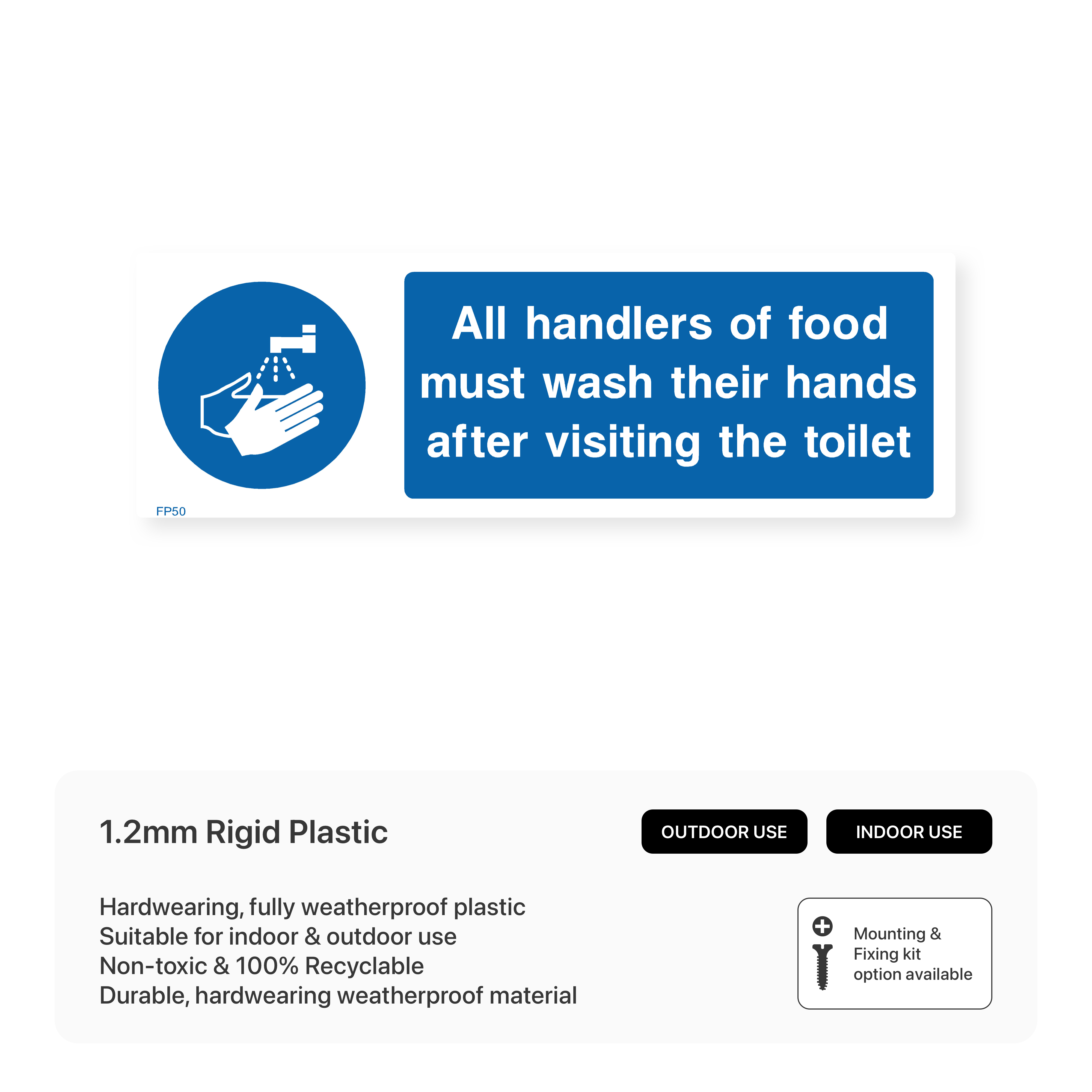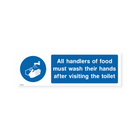 Ensure proper hygiene and food safety with our "All handlers of food must wash their hands after visiting the toilet" sign. This sign clearly communicates the importance of hand washing after using the restroom, preventing the spread of germs and contamination.