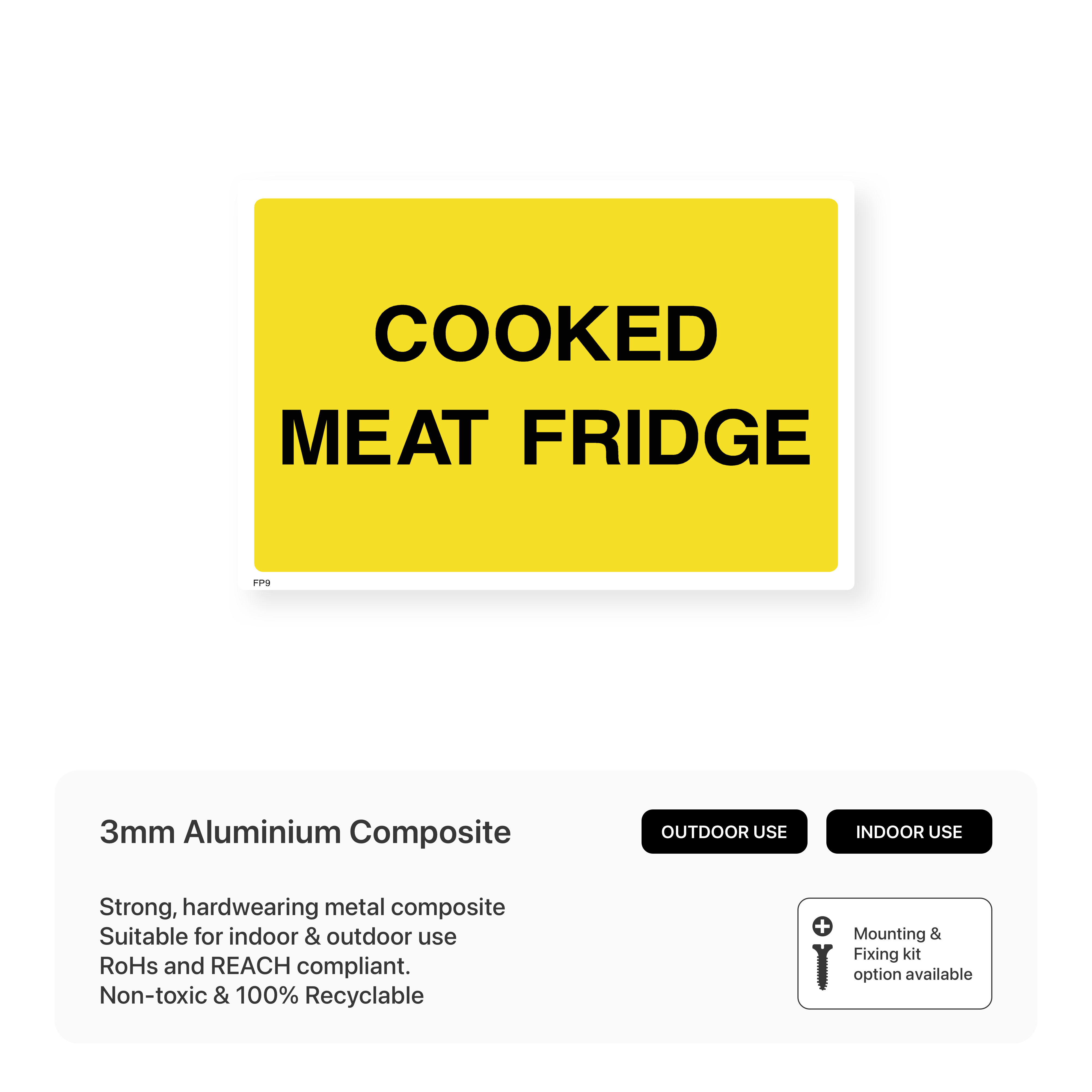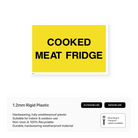 Easily identify designated storage for cooked meats with our "Cooked meat fridge" sign. This sign helps maintain organization and prevents cross-contamination in your food preparation area.