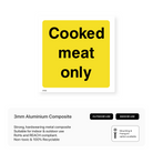 Designate specific areas for cooked meat handling with our "Cooked meats only" sign. This sign helps prevent cross-contamination and ensures that cooked meats are stored and prepared separately from raw ingredients.