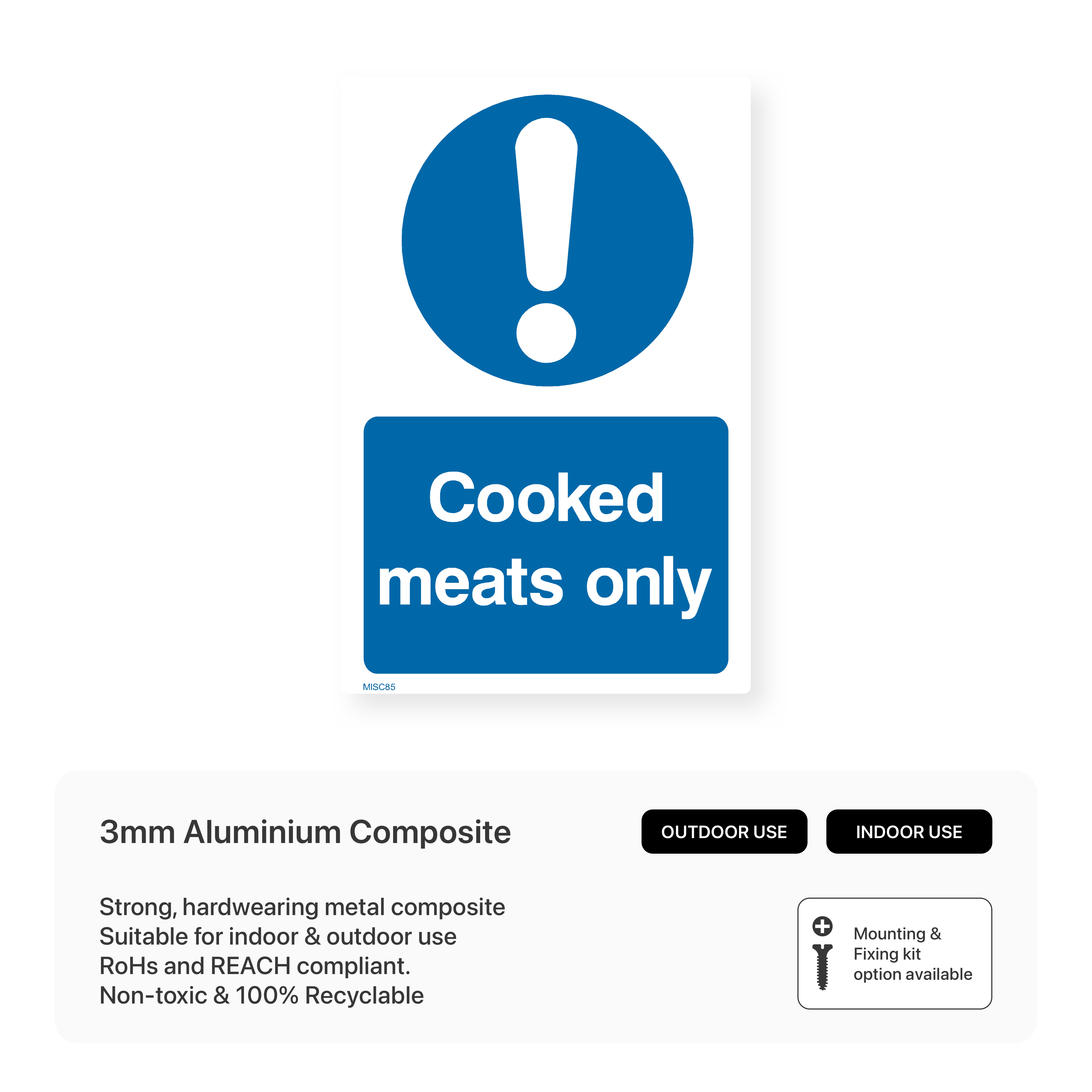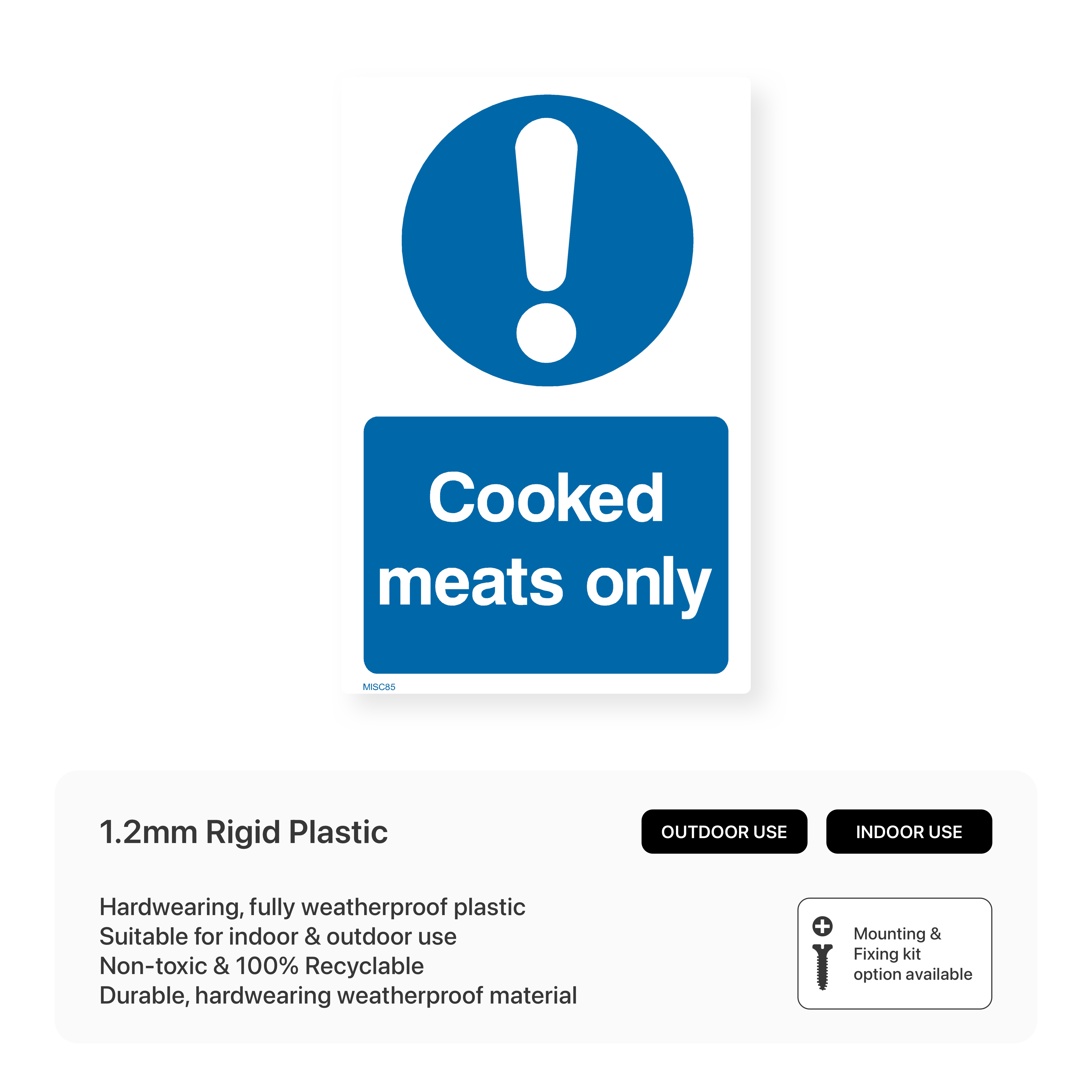 Clearly designate areas for cooked meat storage with our "Cooked Meats Only" signs. Prevent cross-contamination and ensure food safety in your kitchen or food preparation area.