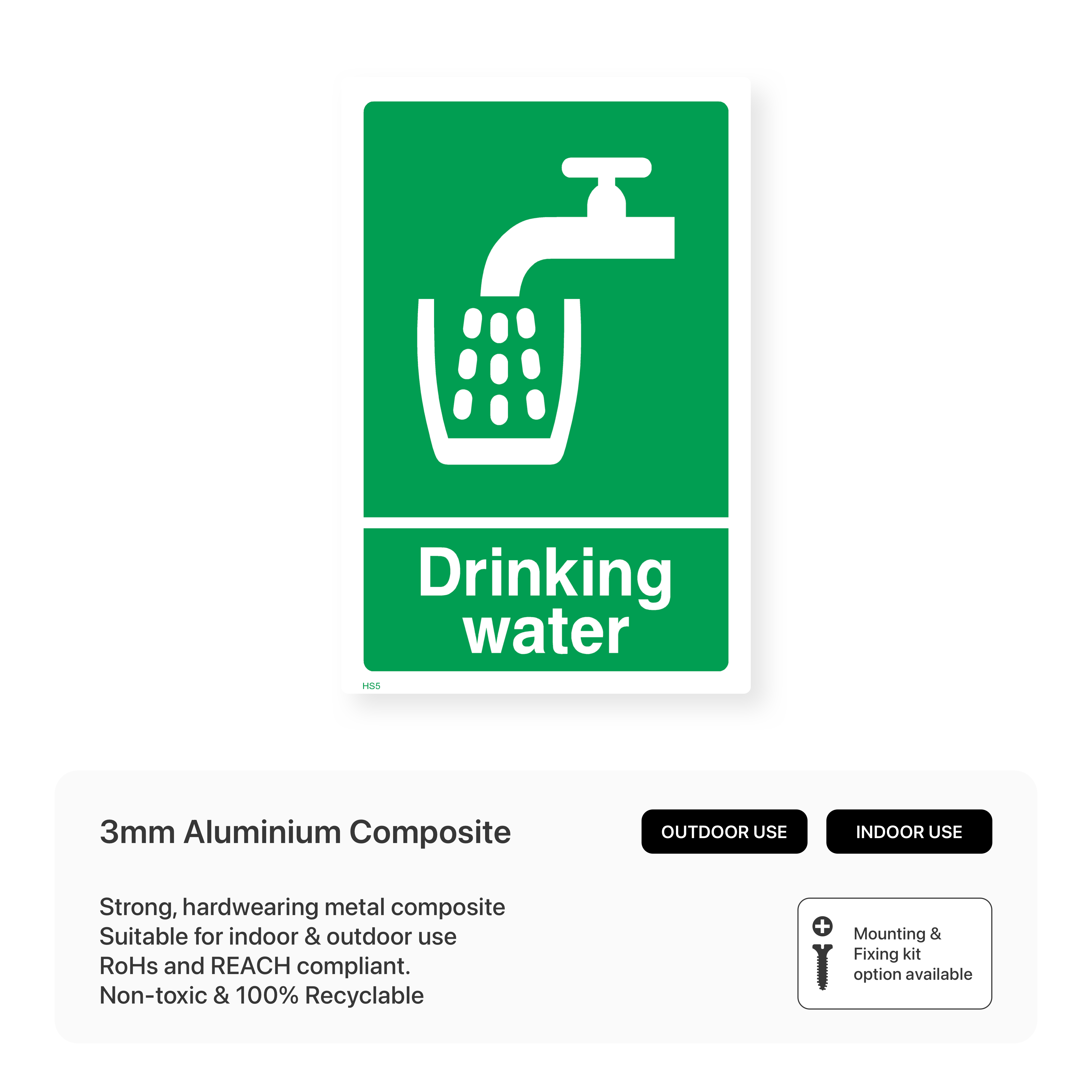 Clearly mark the location of drinking water sources with our "Drinking water" sign. This sign helps guests easily find safe and clean drinking water, promoting hydration and well-being during their stay.