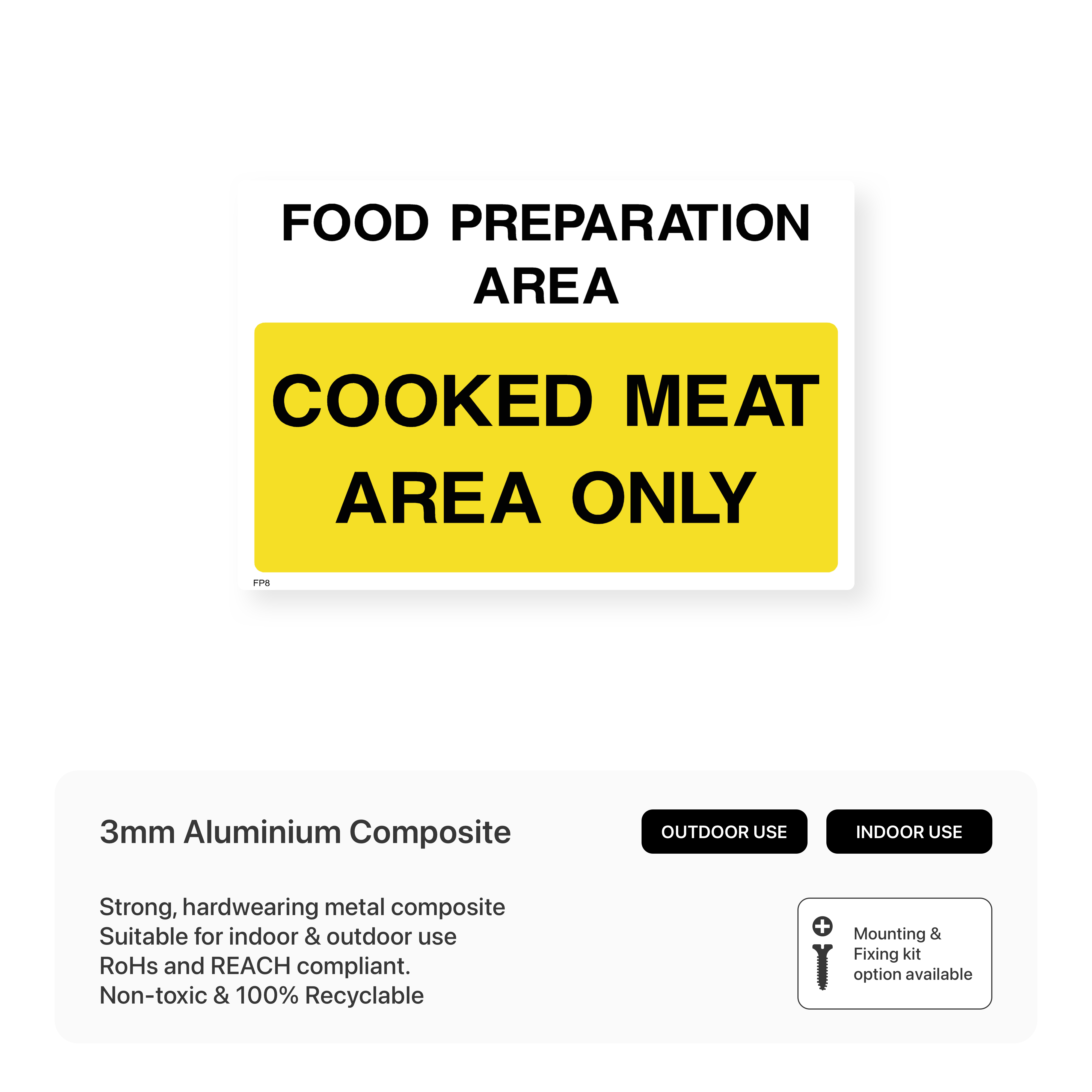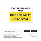 Promote hygiene and prevent cross-contamination with our "Cooked meat area only" sign. Clearly designate areas for handling cooked meat to ensure food safety and maintain high standards in your food preparation area.