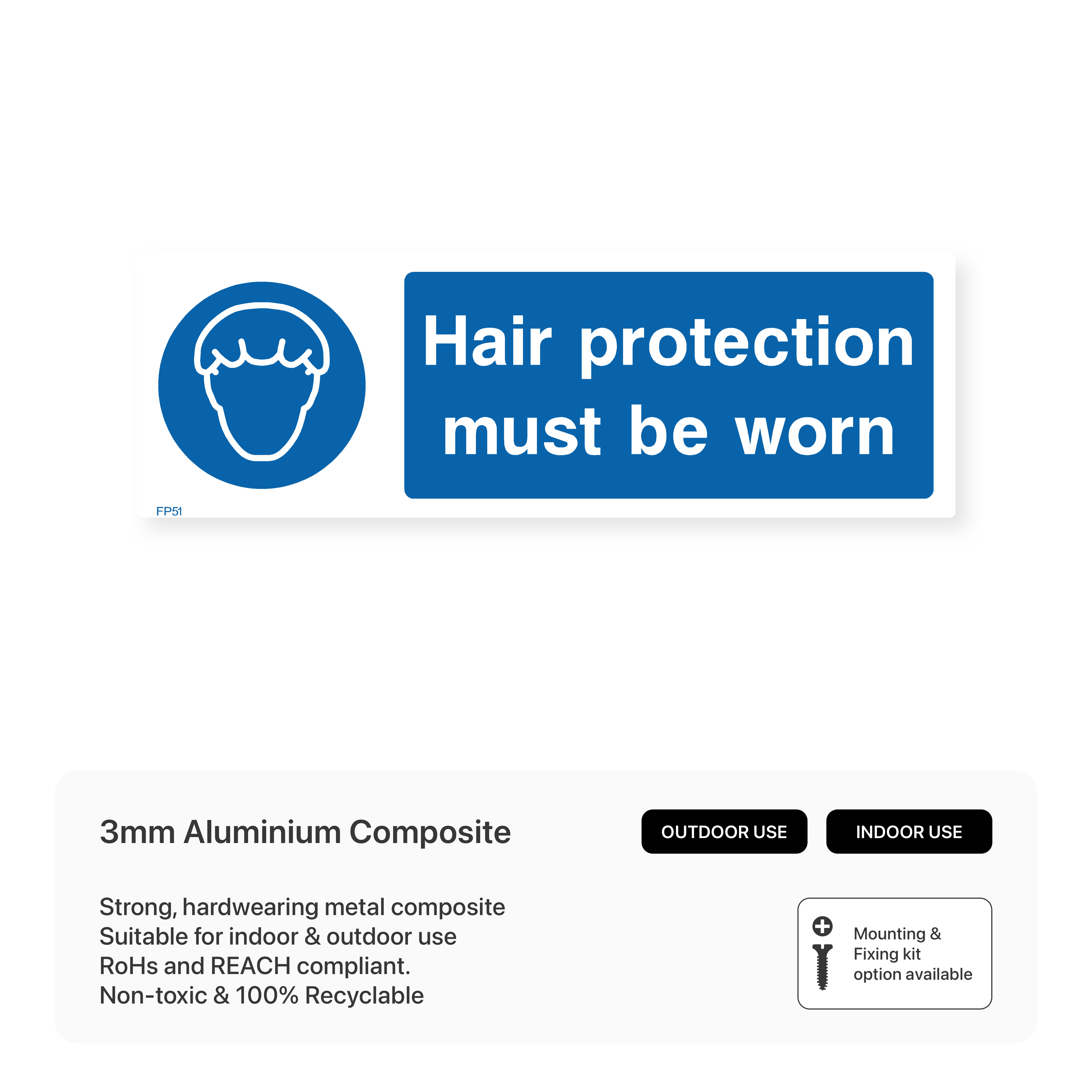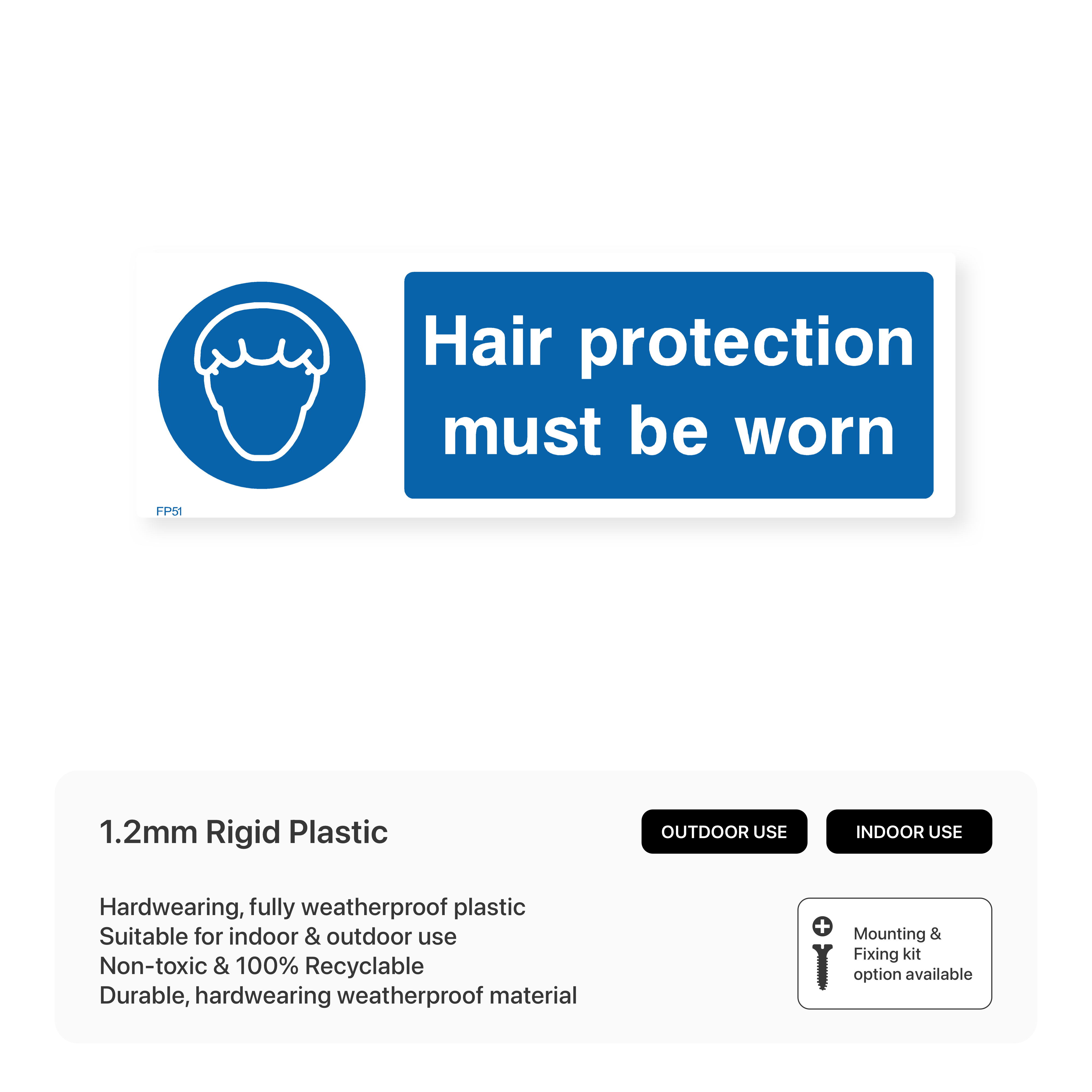 Maintain hygiene standards in food preparation areas with our "Hair protection must be worn" sign. This sign clearly communicates the requirement for hairnets or other hair coverings to prevent contamination and ensure food safety.