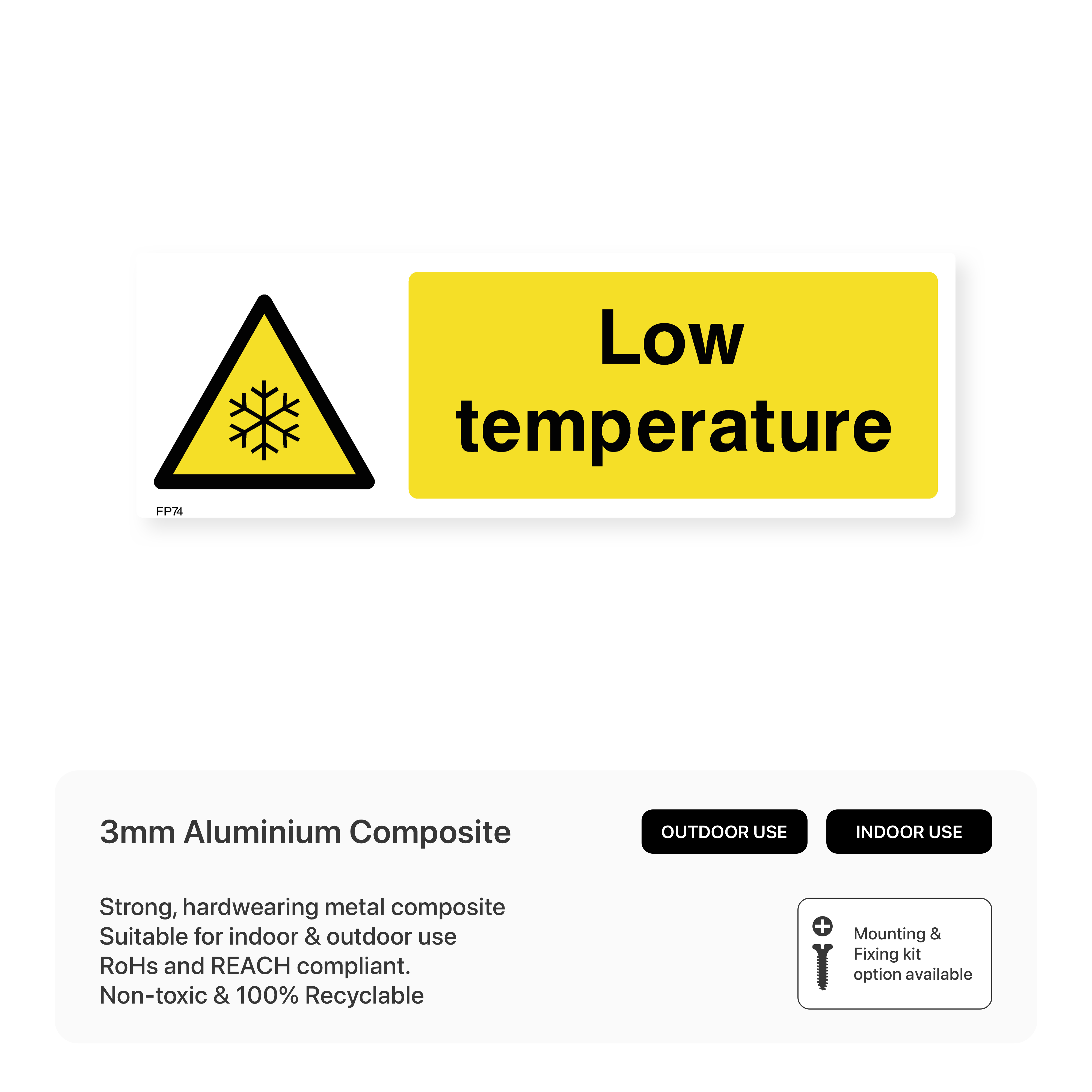 Clearly mark areas with low temperatures with our "Low temperature" sign. This sign helps maintain proper storage conditions for temperature-sensitive products, ensuring their quality and safety.