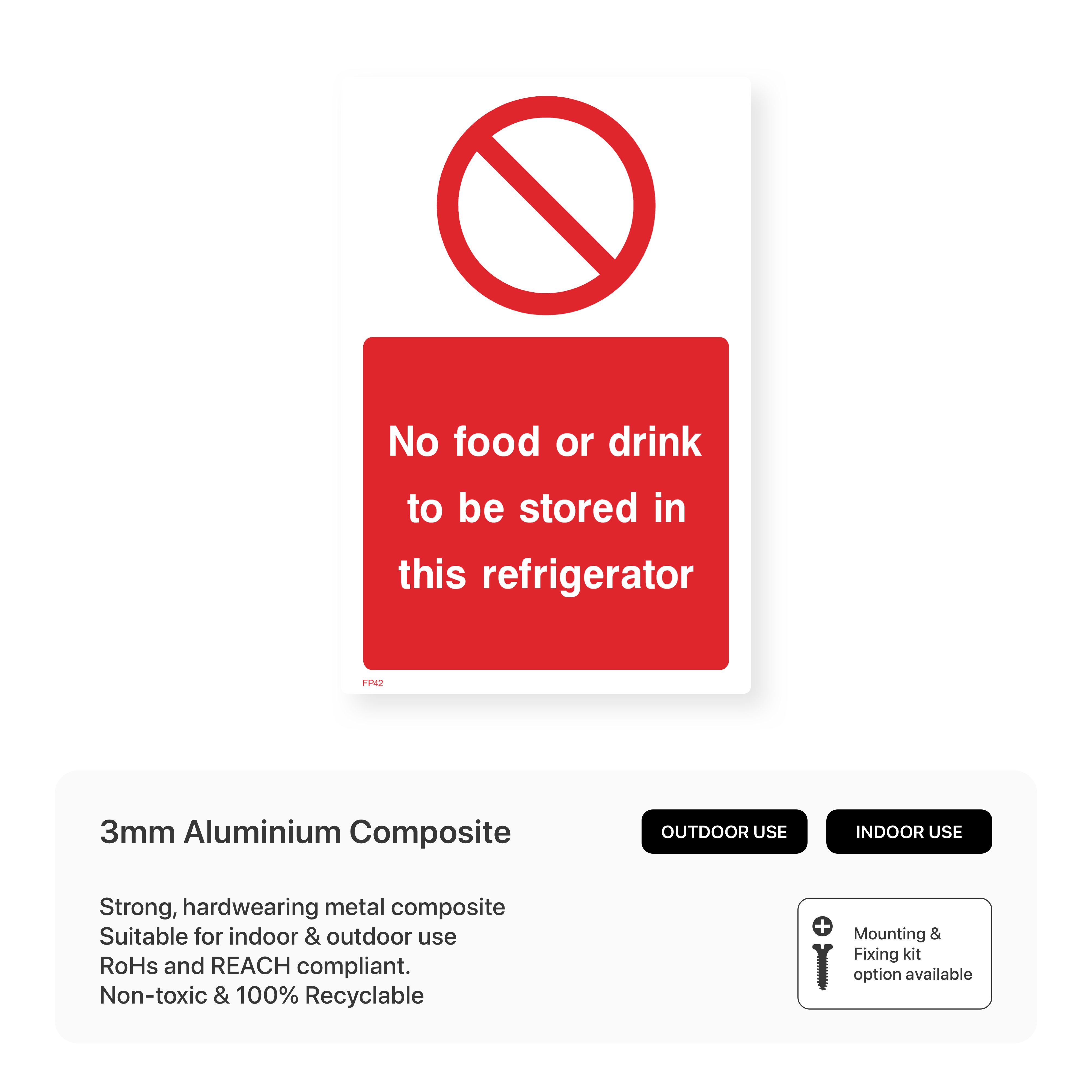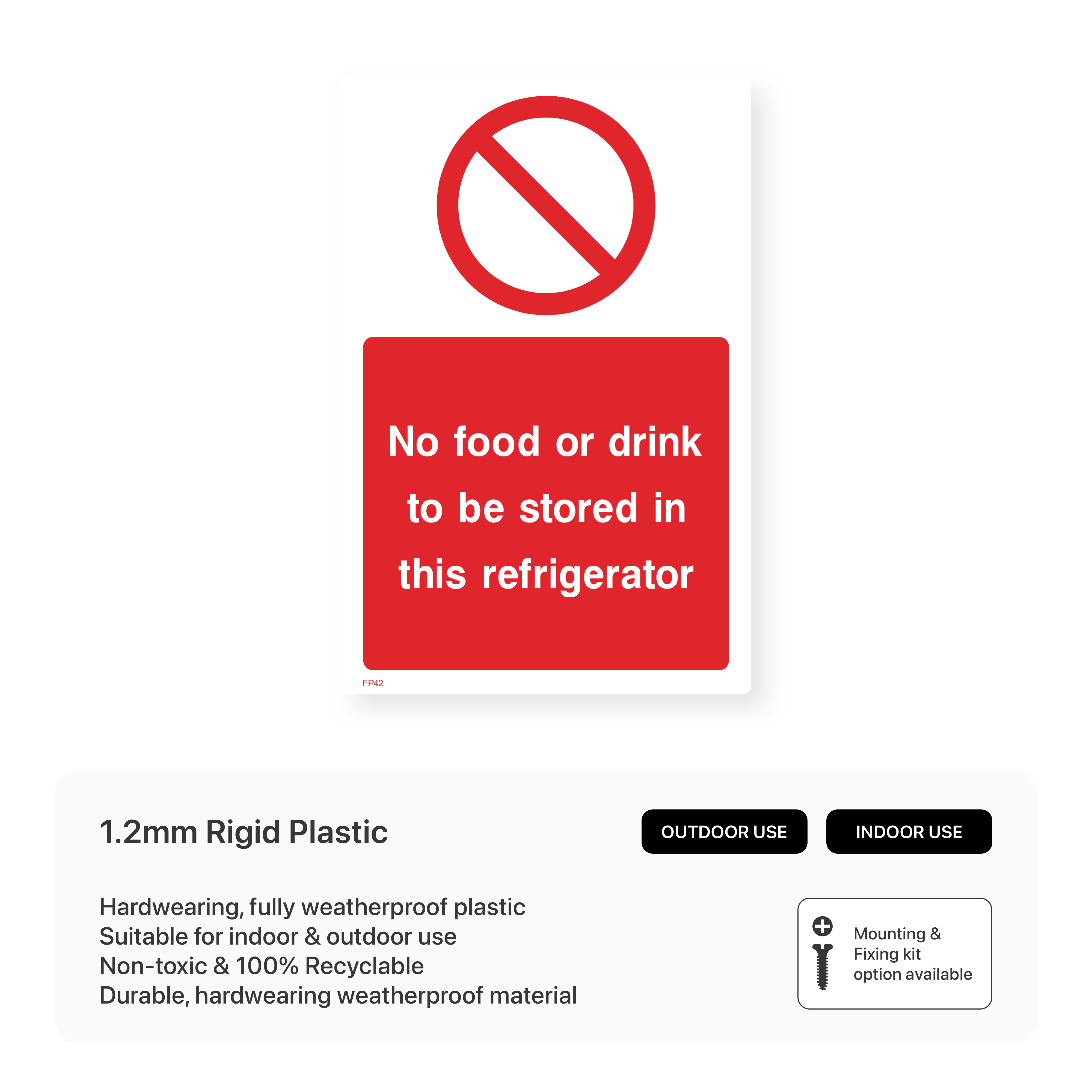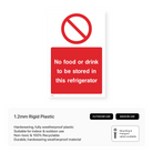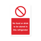 Maintain hygiene and prevent contamination with our "No food or drink to be stored in this refrigerator" sign. This sign clearly indicates that the refrigerator is designated for specific items, ensuring proper storage and preventing spoilage.