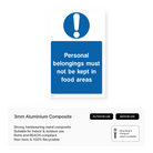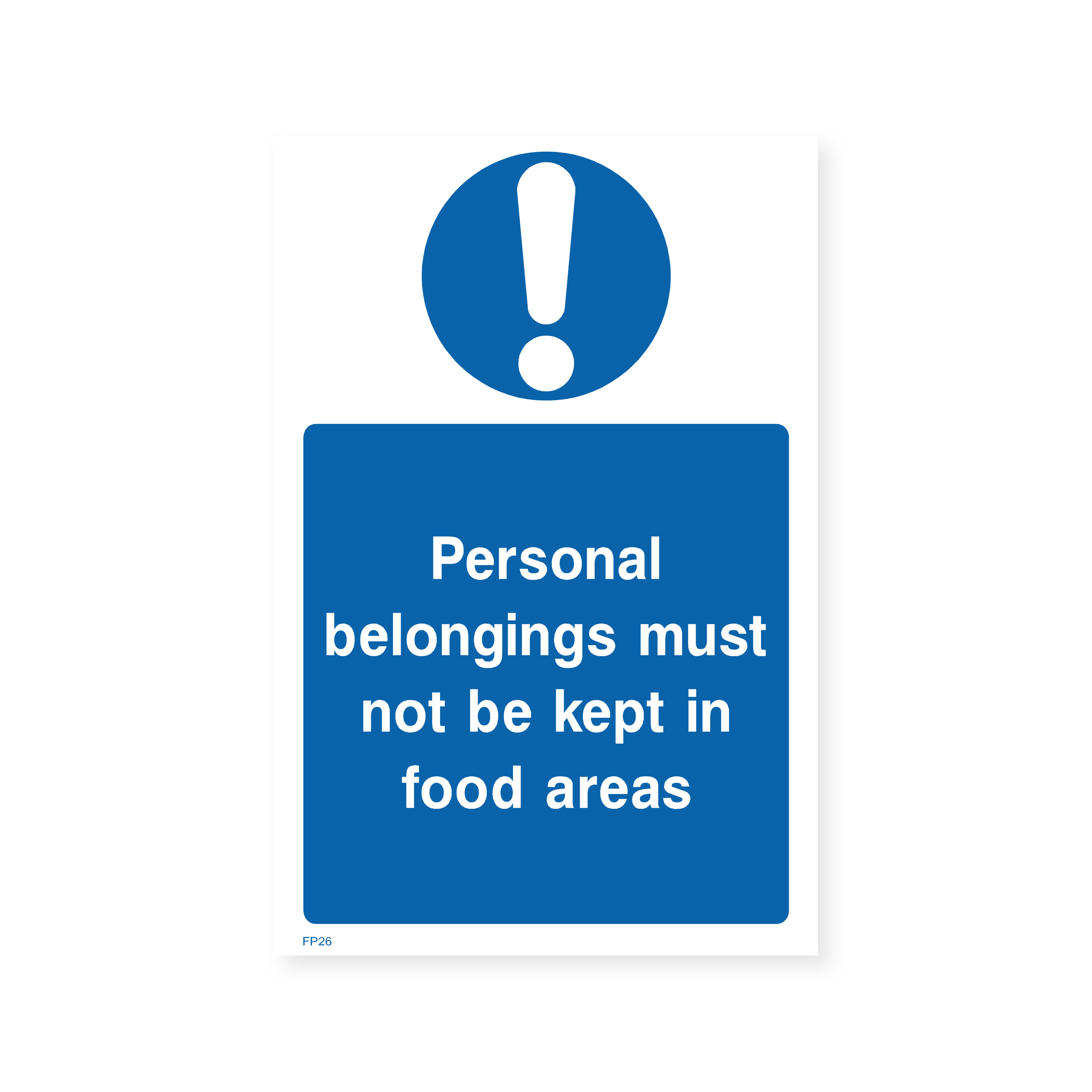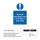 Ensure food safety and hygiene with our "Personal belongings must not be kept in food areas" sign. This sign clearly prohibits personal items in food preparation and storage areas, preventing contamination and maintaining high standards of cleanliness.