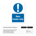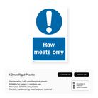 Clearly designate areas for raw meat storage with our "Raw Meats Only" signs. Prevent cross-contamination and ensure food safety in your kitchen or food preparation area.