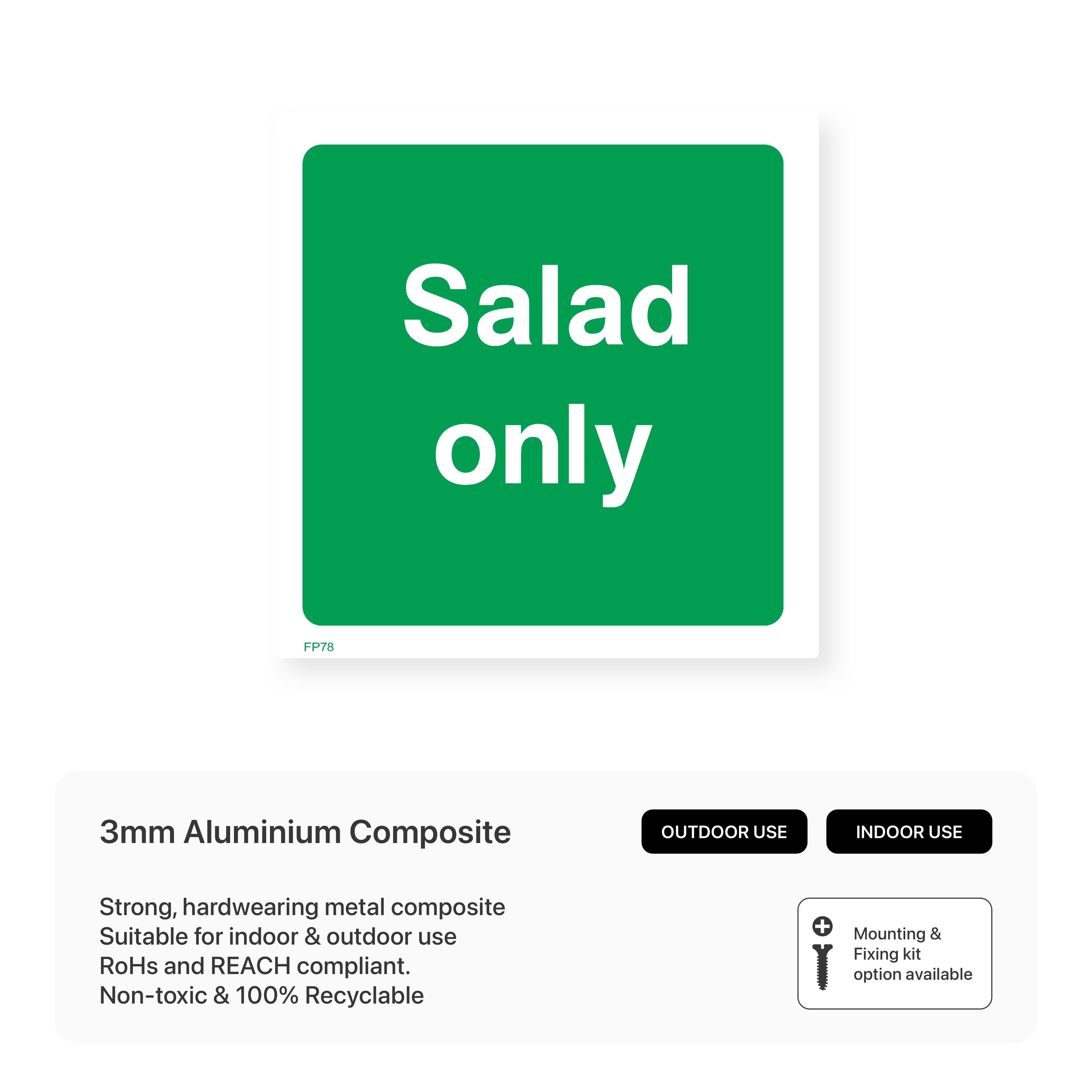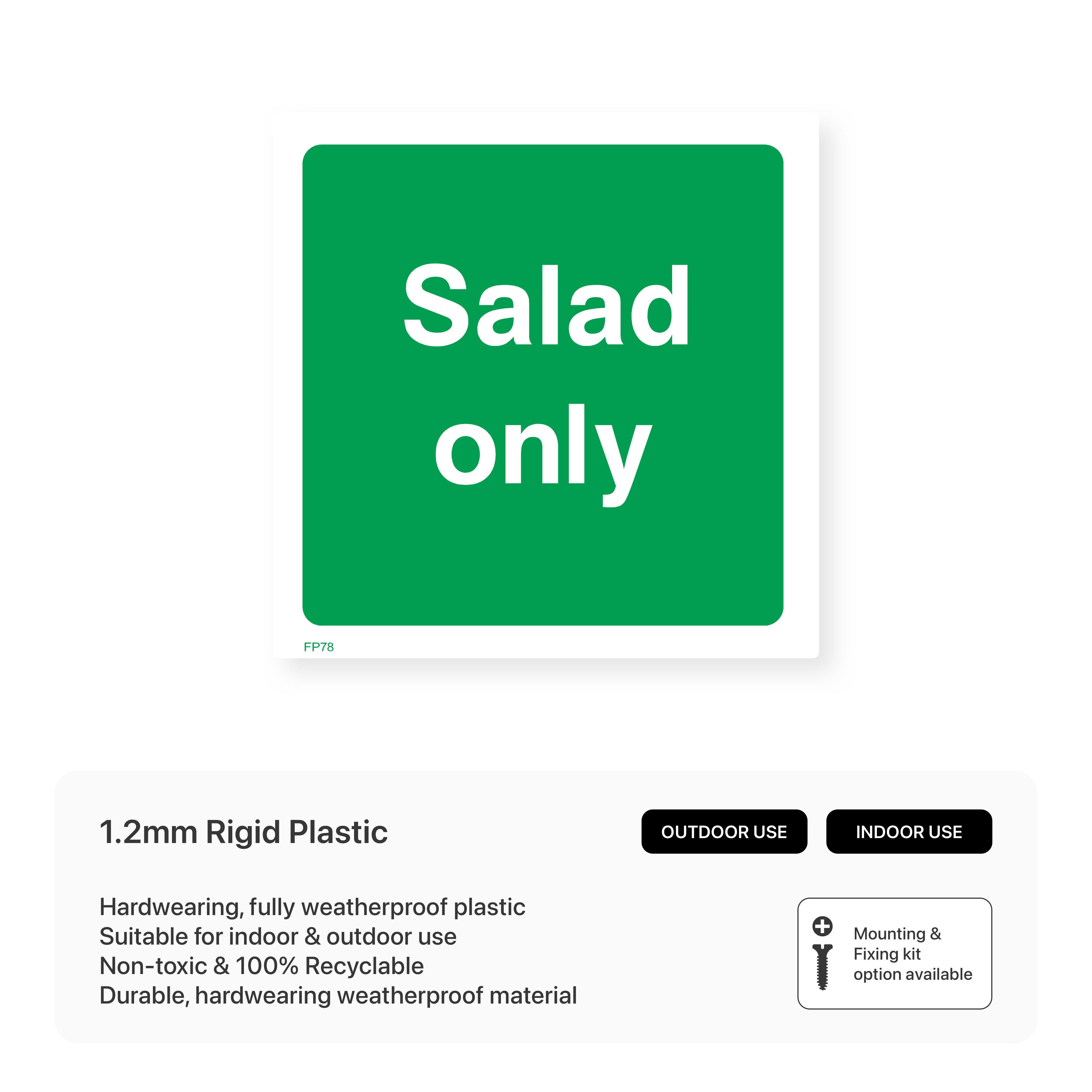 Designate specific areas for salad preparation with our "Salad only" sign. This sign helps prevent cross-contamination and ensures that salads are prepared in a hygienic environment.
