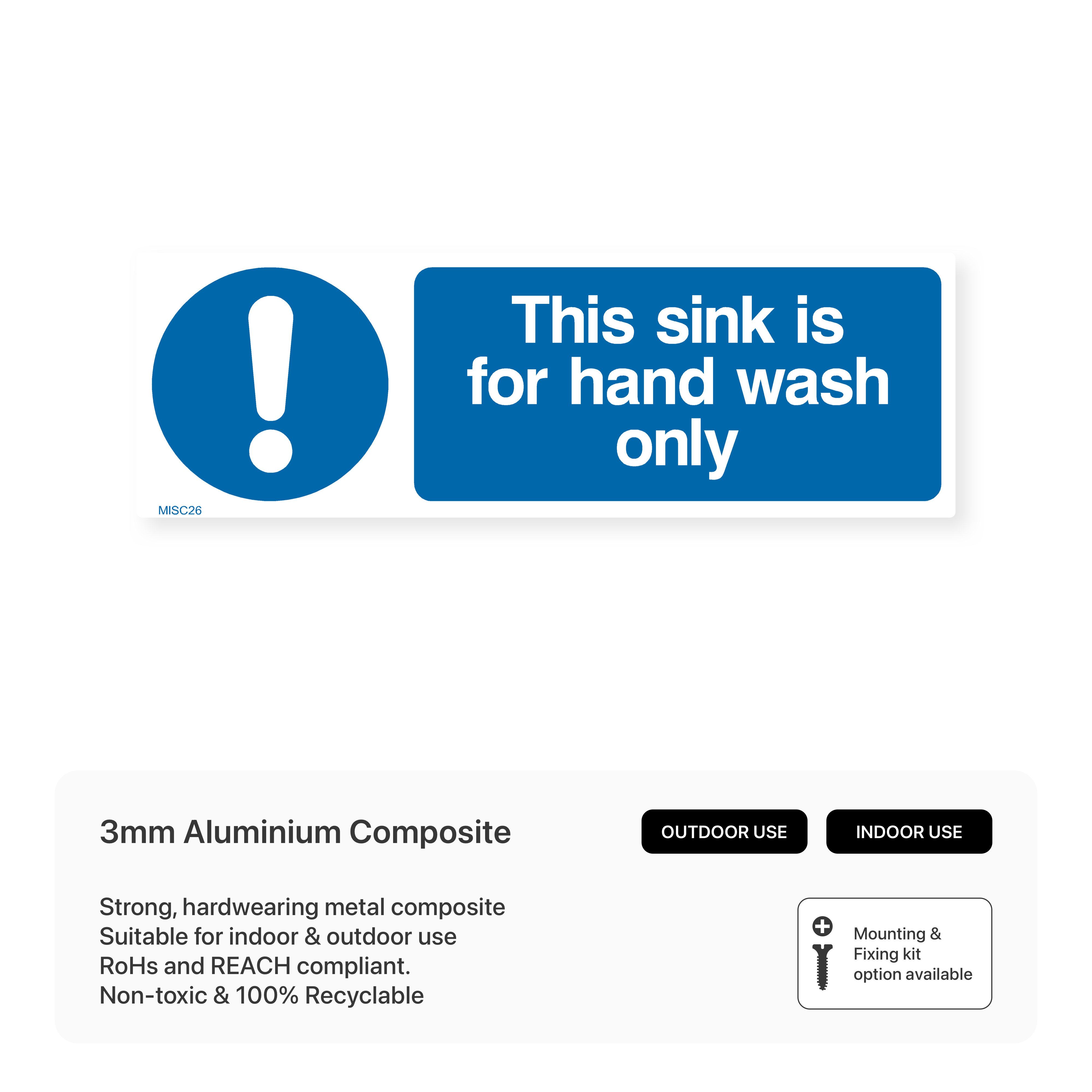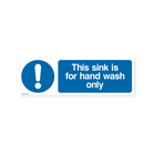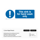 Clearly indicate sinks designated for hand washing only with our durable and visible signs. Maintain hygiene standards in your workplace or food preparation area.