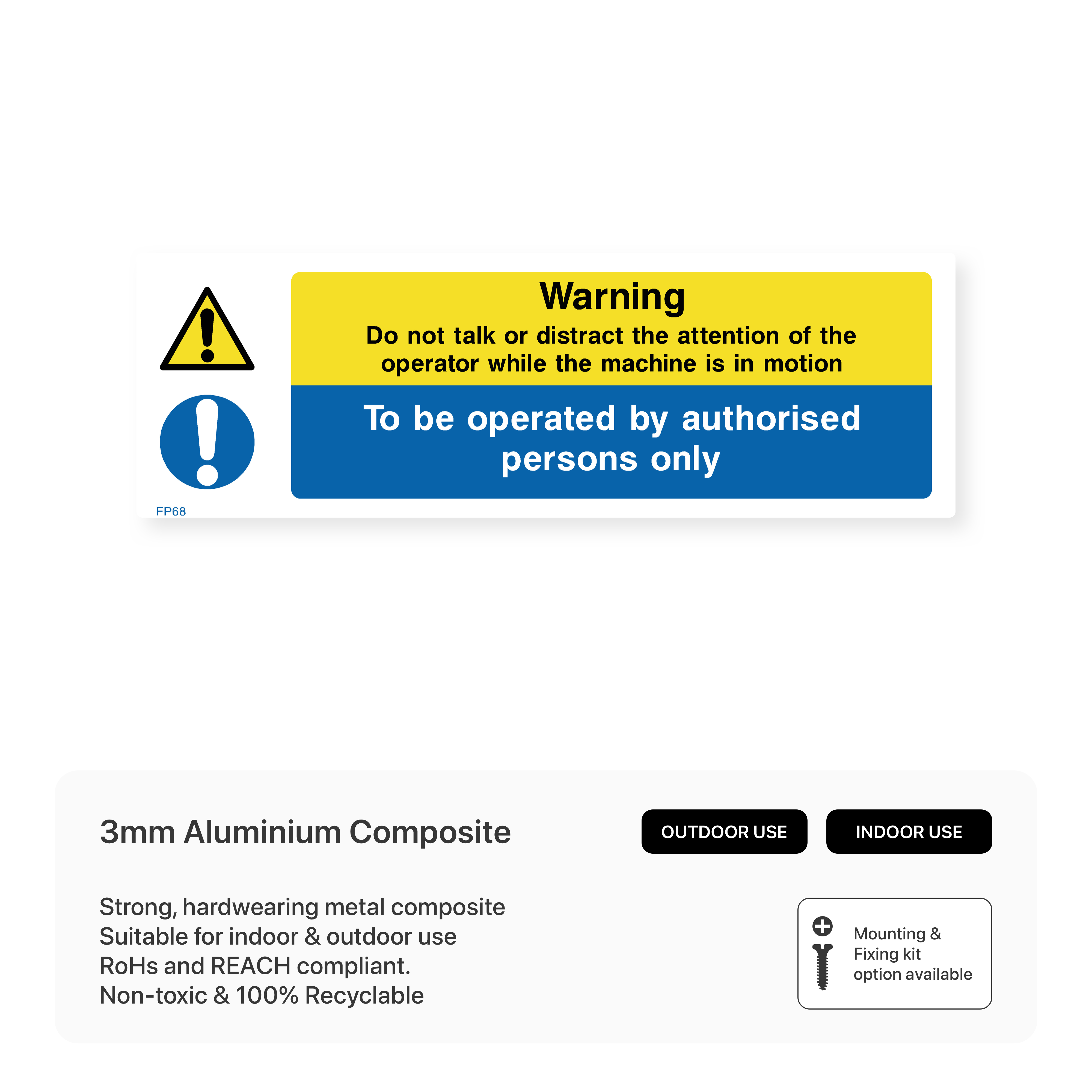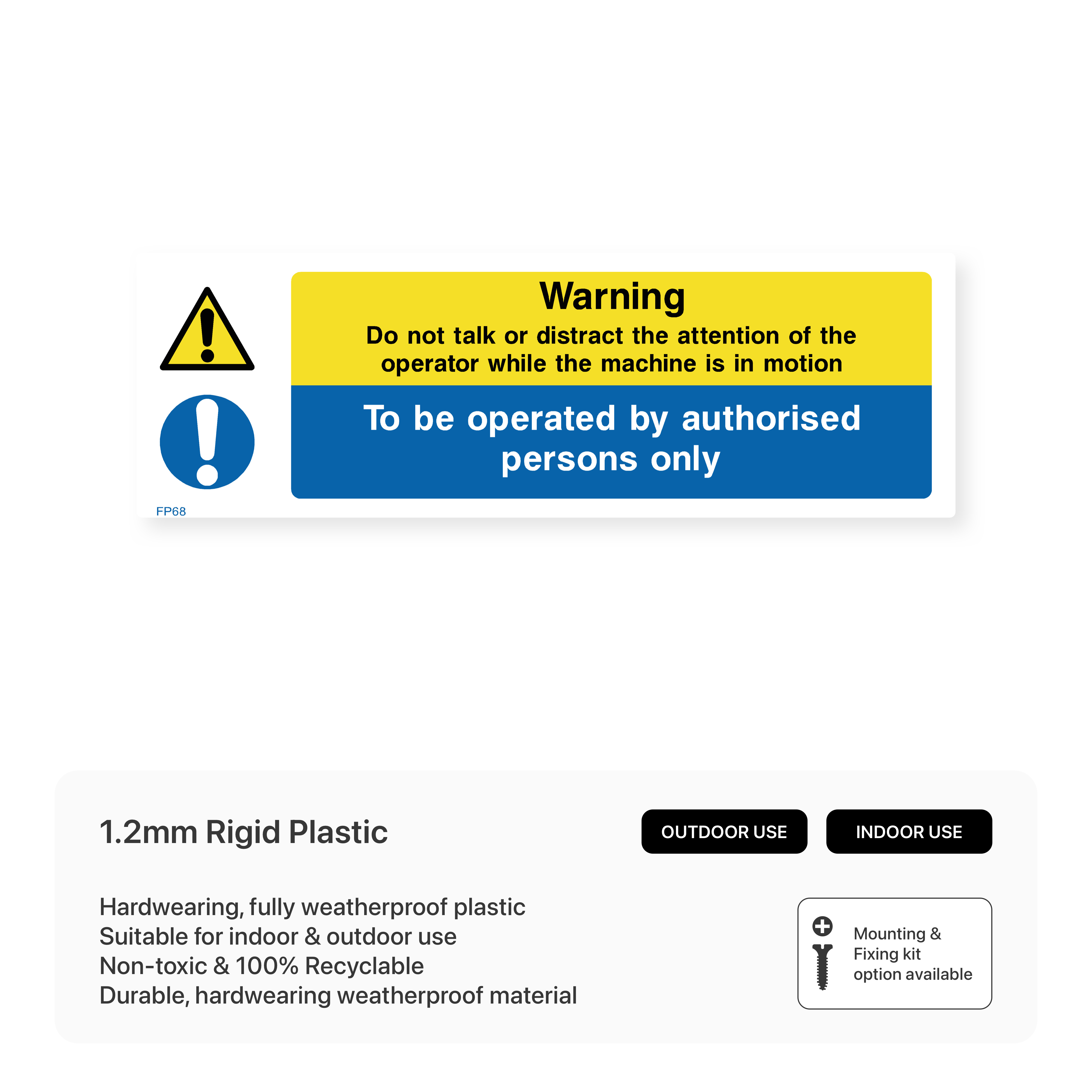 Prevent accidents and ensure safe machine operation with our "Warning - Do not talk or distract the attention of the operator while the machine is in motion" sign. This sign promotes a focused and safe working environment.