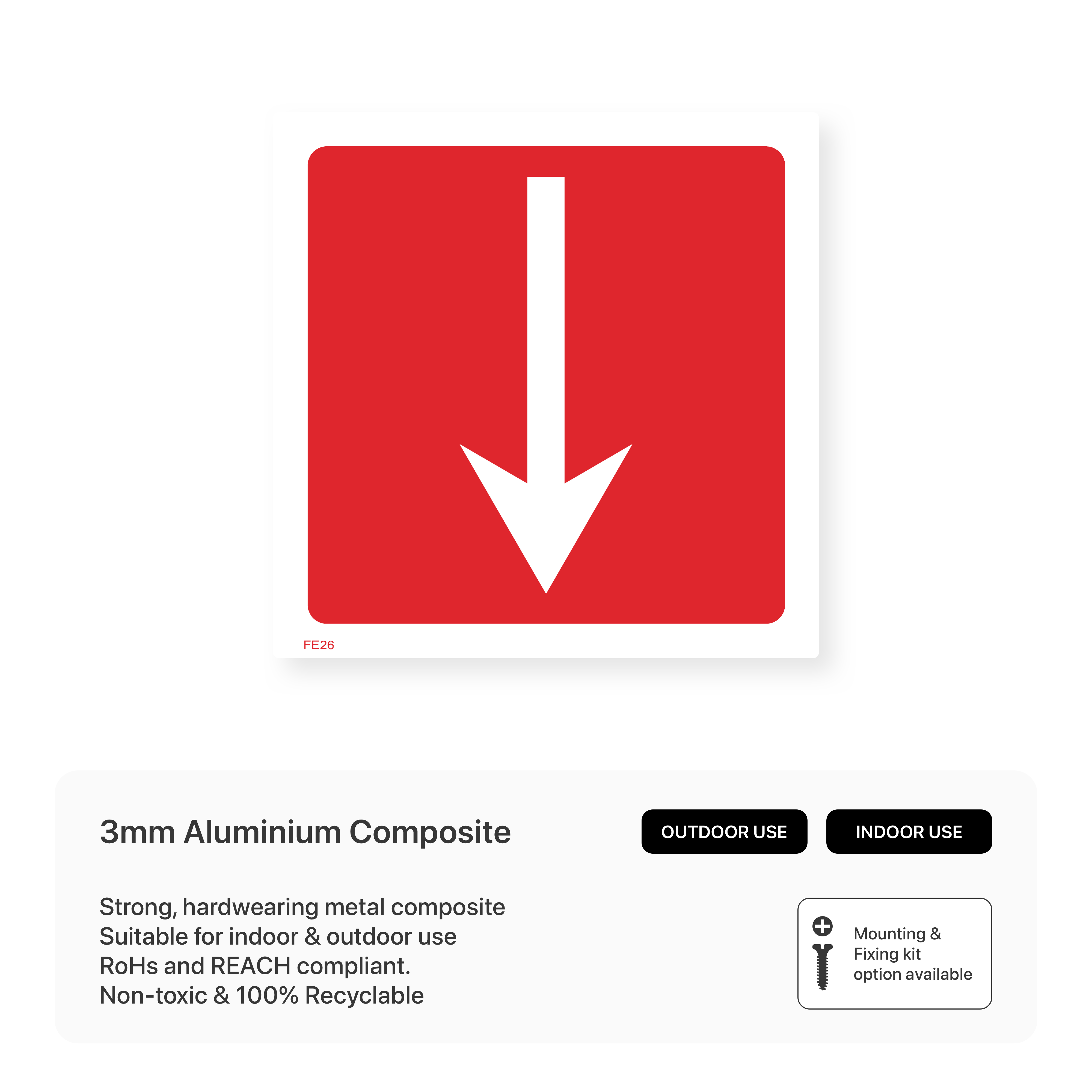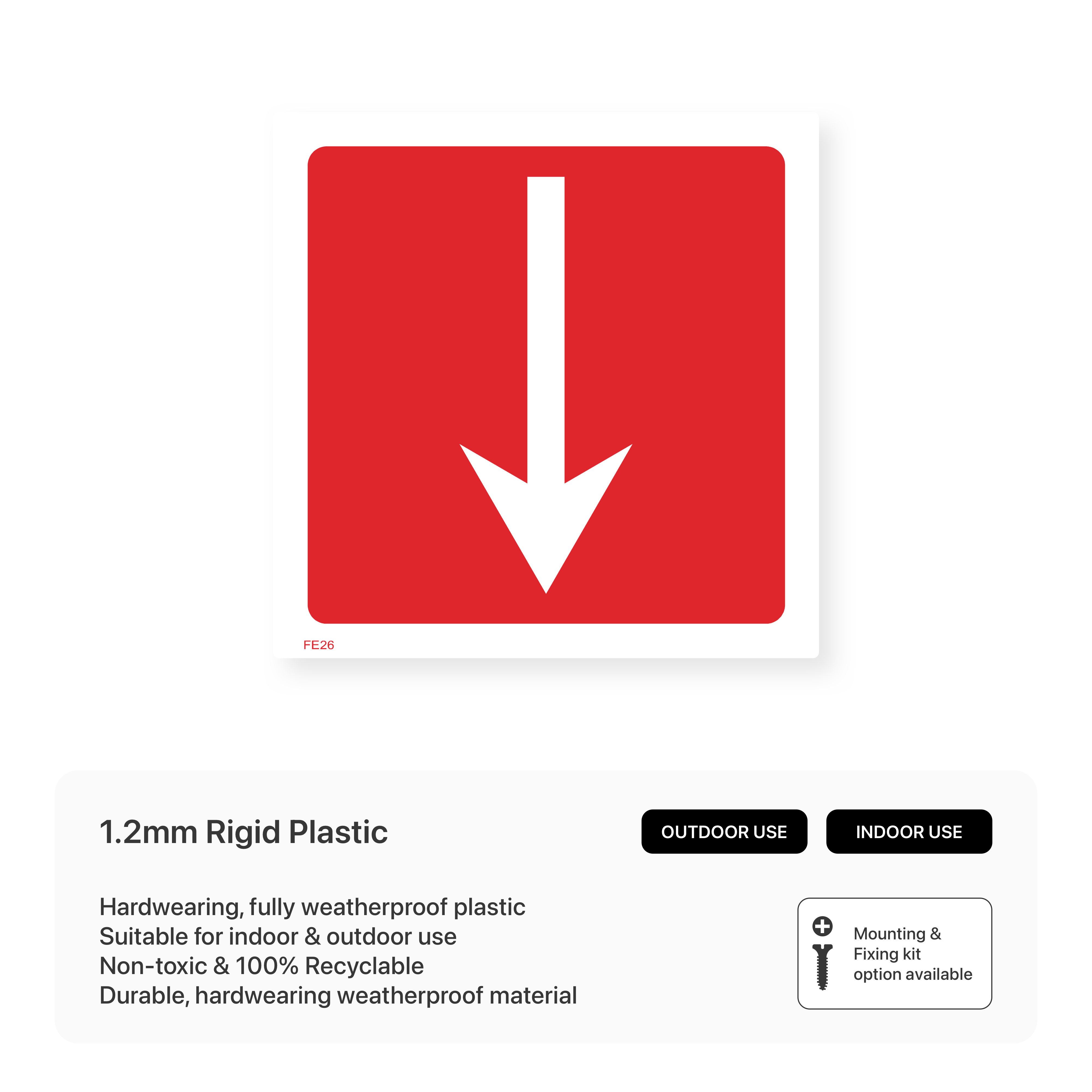Guide individuals with our "Arrow down" sign. This red directional arrow clearly indicates the path to follow downwards, such as stairs, ensuring easy navigation during emergencies.
