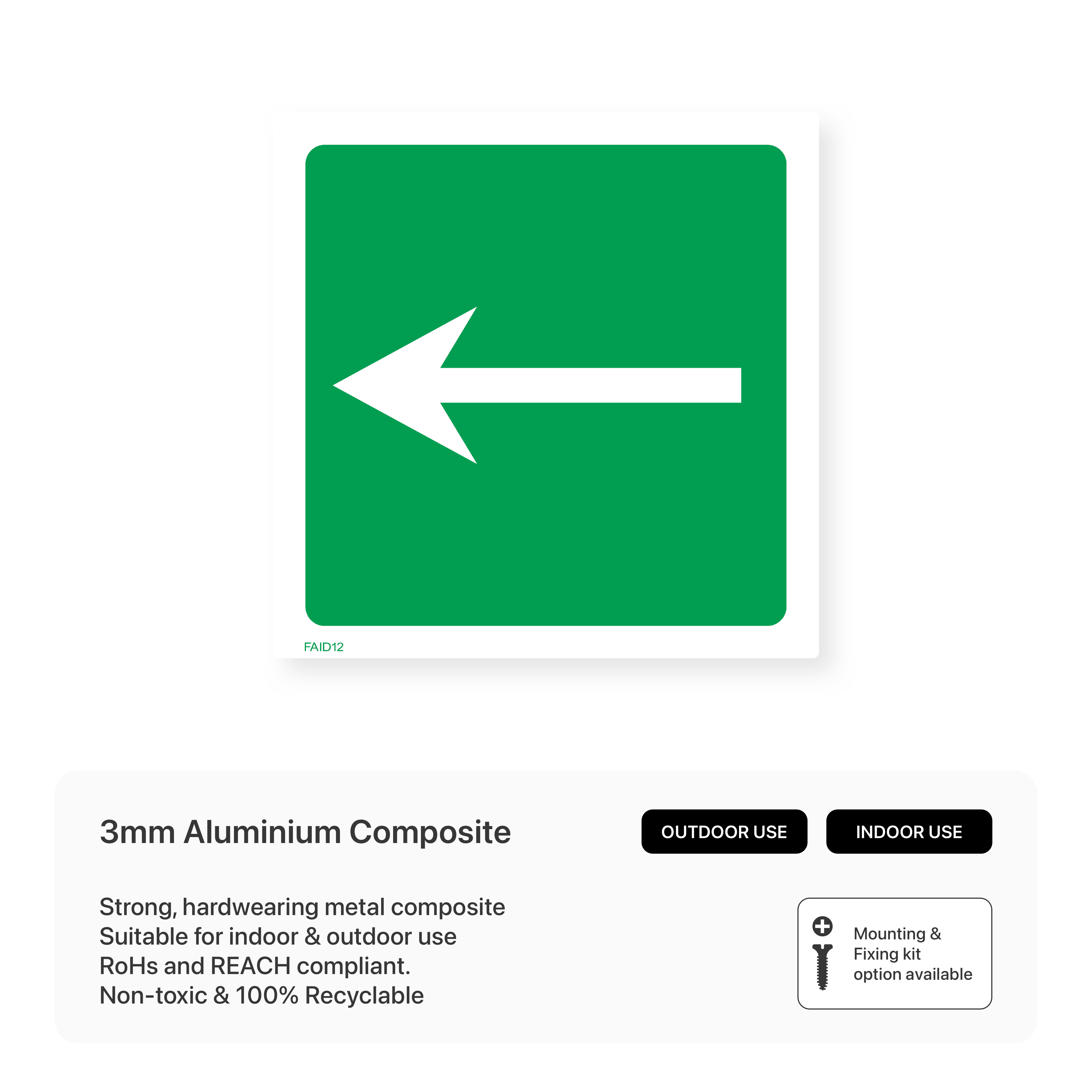 Guide individuals with our "Arrow Left - Green" sign. This directional sign clearly indicates the path to follow to the left, ensuring easy navigation and preventing confusion in complex environments.