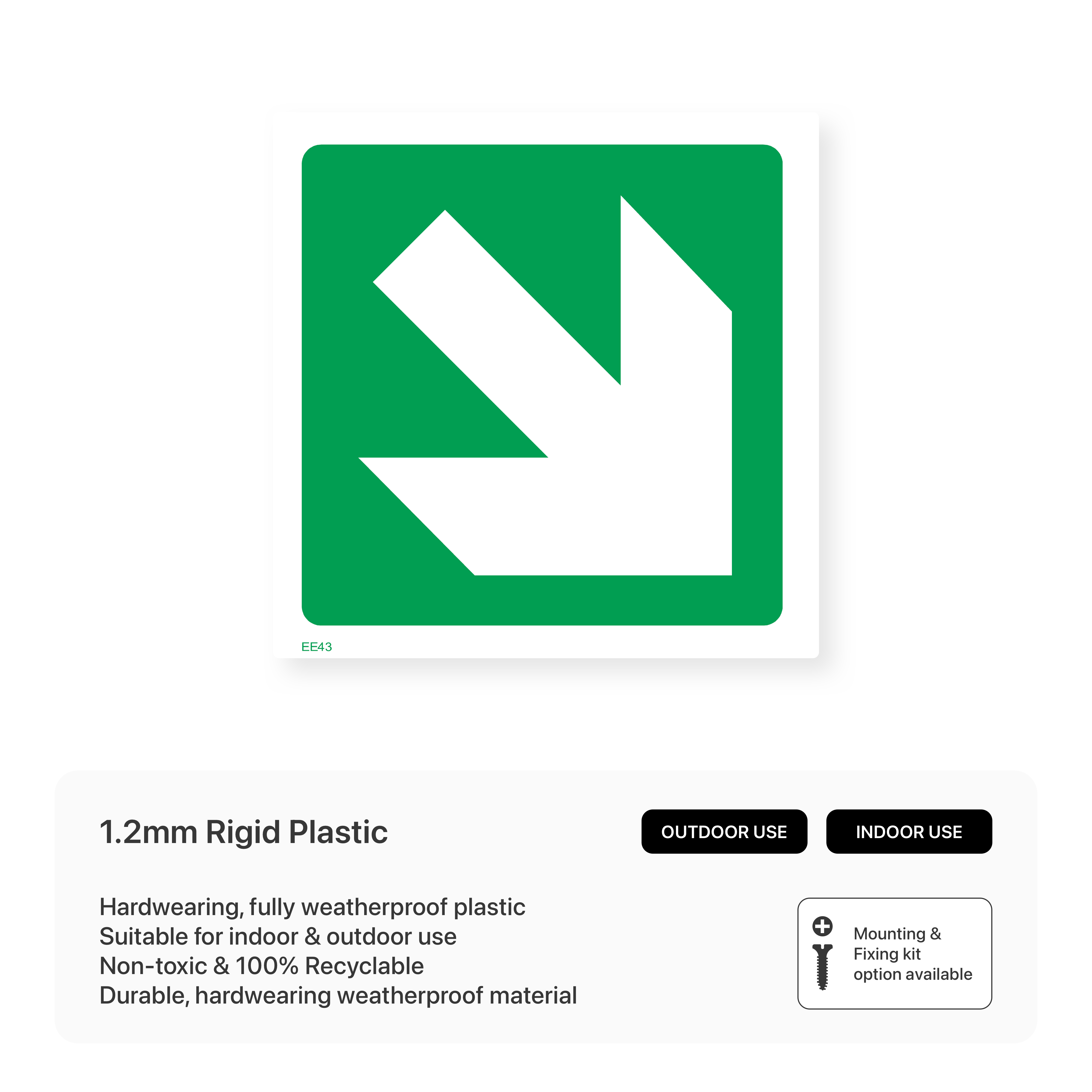 Guide individuals with our "Green arrow - Right down" sign. This directional sign clearly indicates the path to follow, ensuring easy navigation and preventing confusion in complex environments.