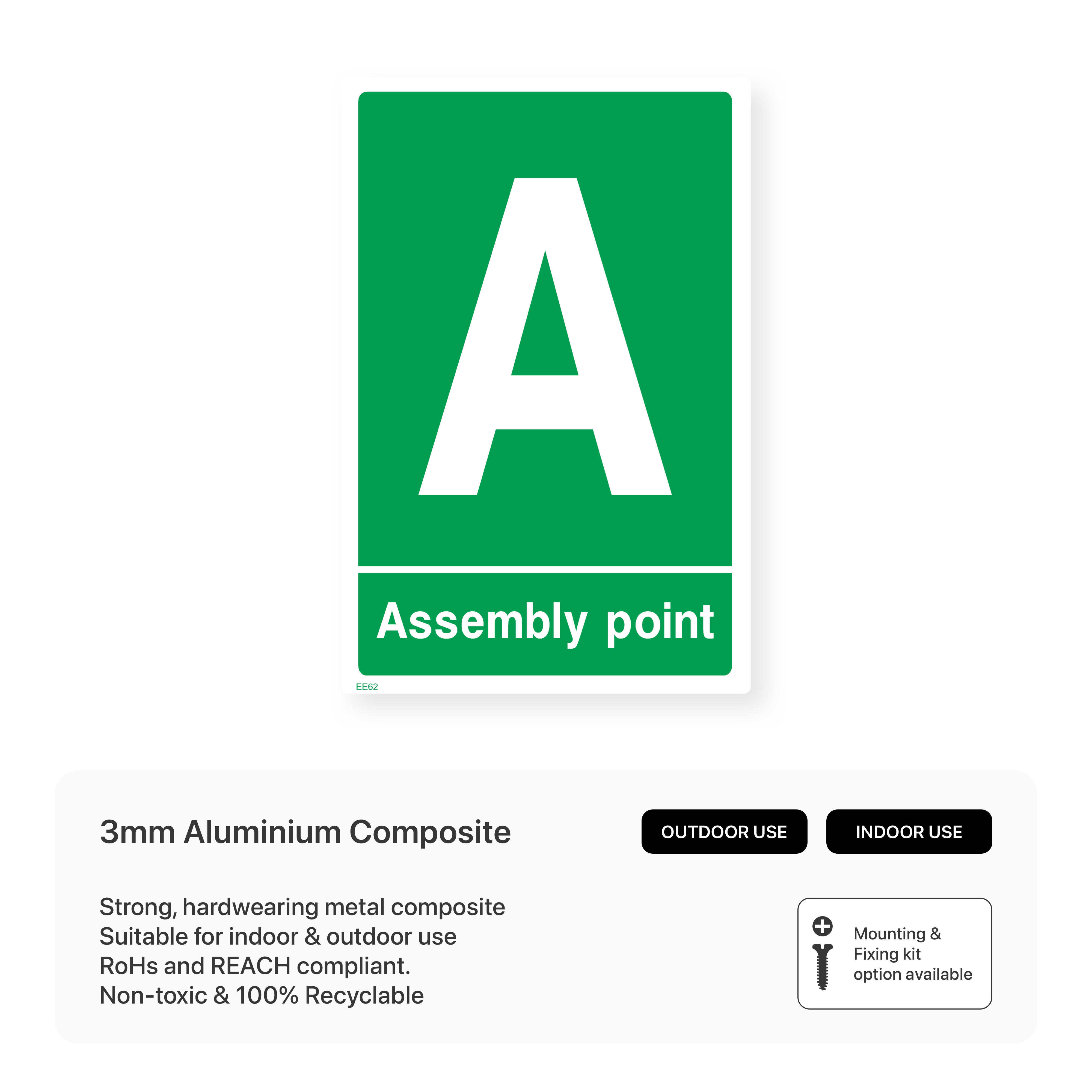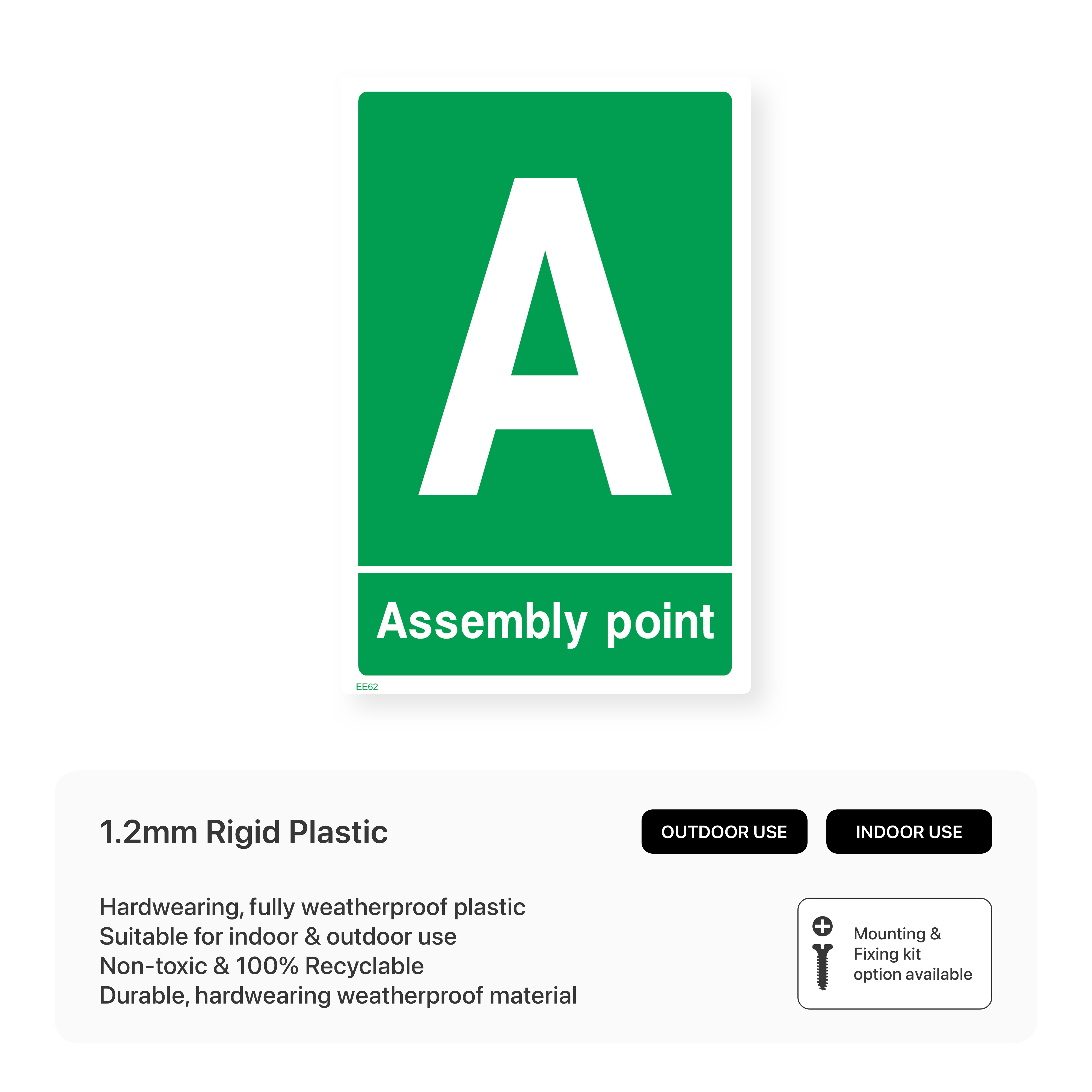 Clearly mark the designated assembly point A with our "Assembly Point A" sign. This sign helps individuals quickly gather at the correct safe location during emergencies or evacuations, ensuring their safety and facilitating an organized response.