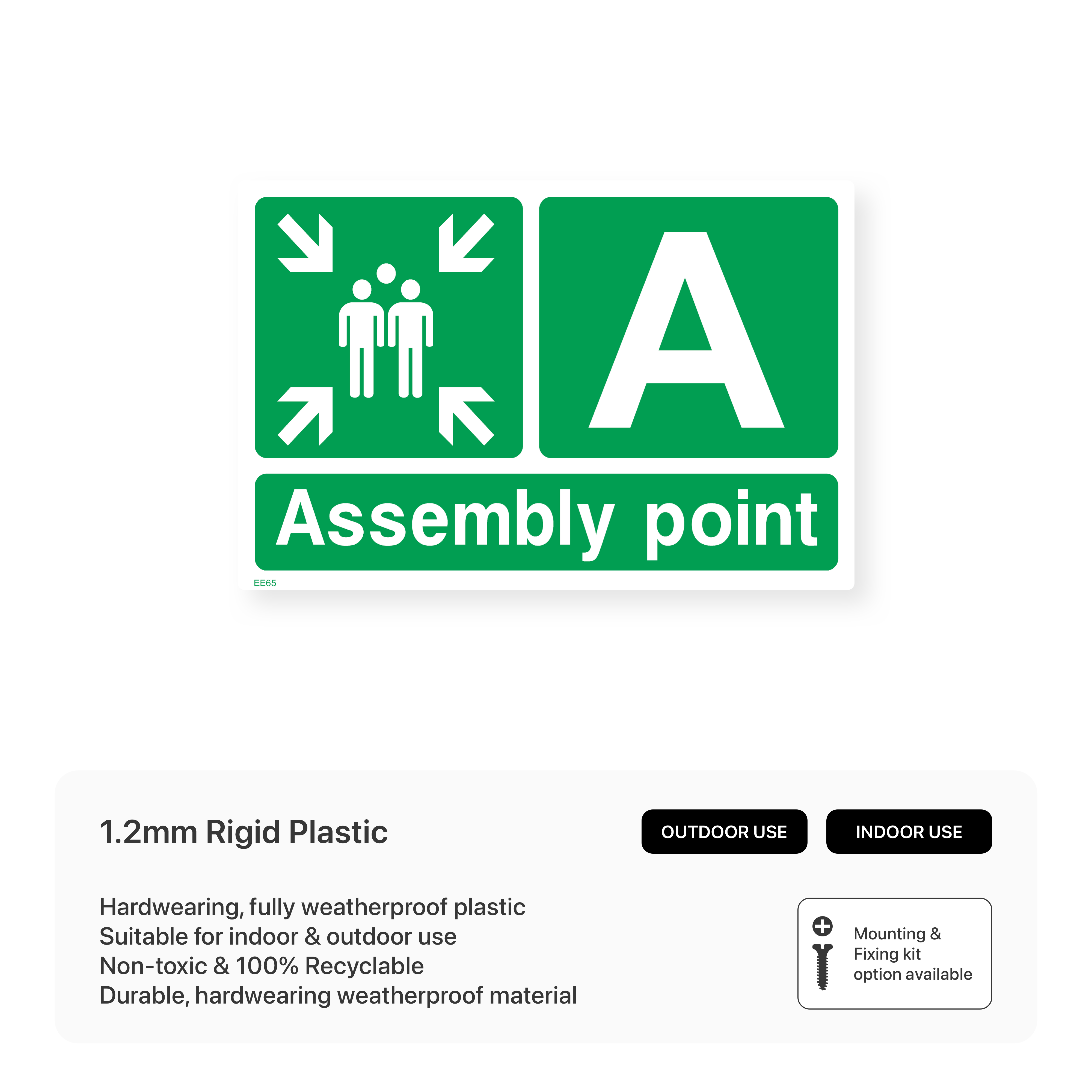 Clearly mark the designated assembly point A with our "Assembly Point A" sign. This sign helps individuals quickly gather at the correct safe location during emergencies or evacuations, ensuring their safety and facilitating an organized response.